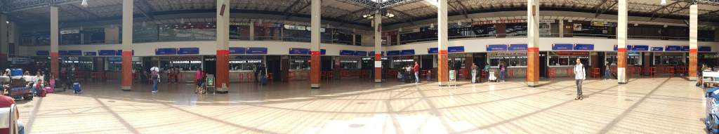 Puh, 1 kg Kaffee, ½ kg Kakao und 1 kg Reis zum Trocknen des Fotoapparats machen sich gewichtstechnisch doch ganz schön bemerkbar. Im großen Busterminal von Bogotá schnappe ich mir deshalb gleich einen Gepäck-Trolley und ergehe mich in großen Hallen mit unendlich vielen Ticketschaltern aller kleinen und großen Busgesellschaften.