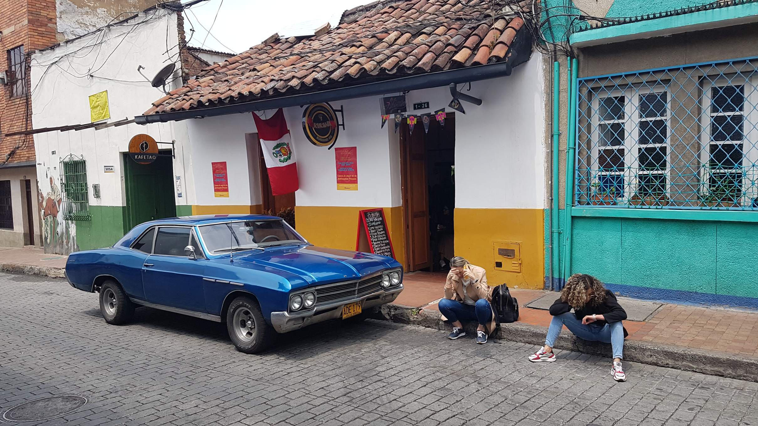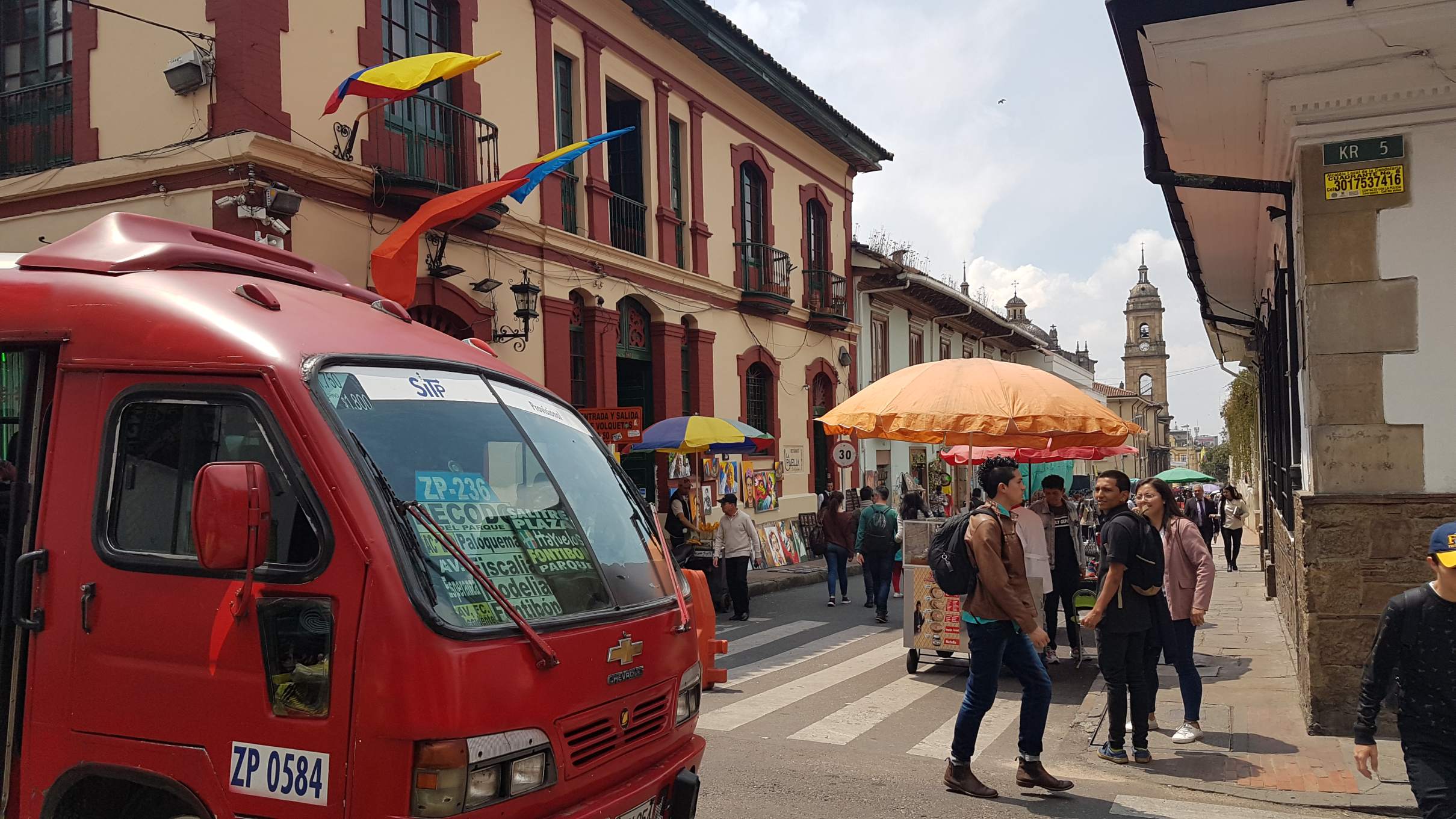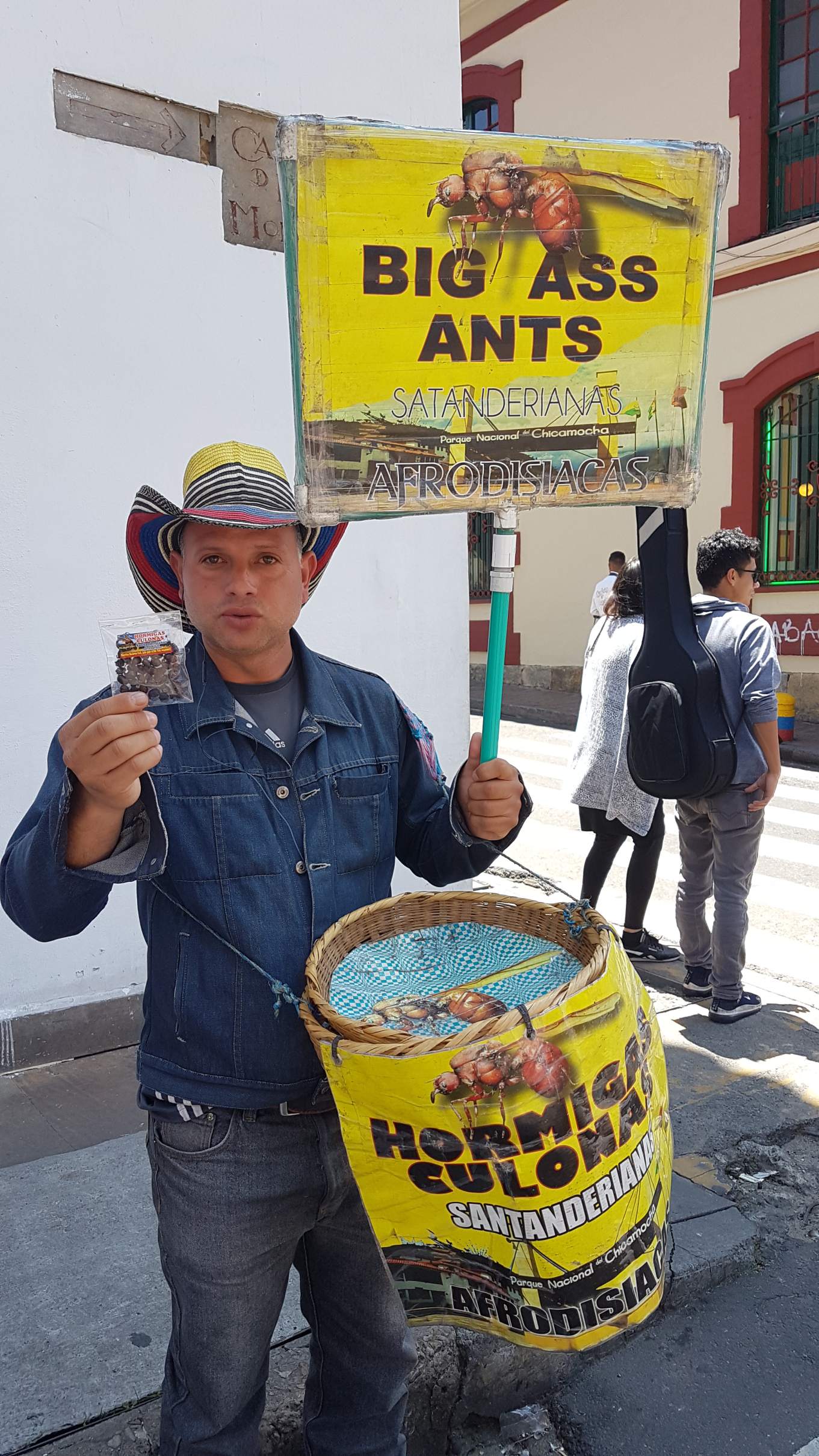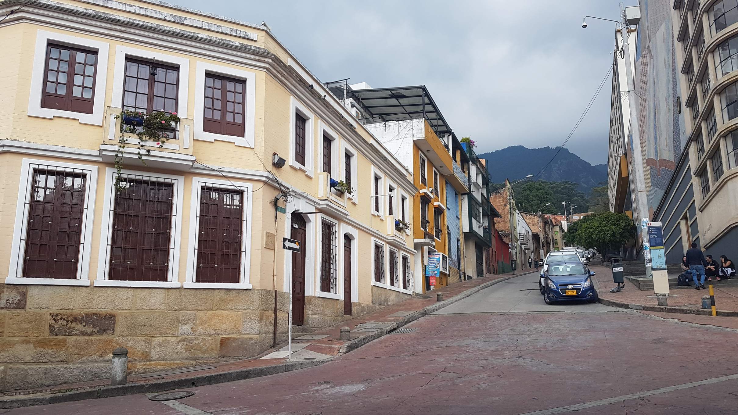 Ich starte zu meinem ersten Orientierungs- und Erkundungsgang. Das alte Herz Bogotás liegt gleich ums Eck: die Plazoleta del Chorro de Quevedo. Manche behaupten, hier wäre Bogotá gegründet worden. Egal wie, dieser Platz in La Candelaria erwacht auf jeden Fall spätestens am Nachmittag zu Leben. Auf ihm versammeln sich Musiker und Geschichtenerzähler, Akrobaten und Comedians und jede Menge junge Menschen. Es wird den Künstlern gelauscht, viel gelacht und applaudiert, aromatisierte Chicha getrunken, in Gruppen geratscht und philosophiert. Auch die Policía schaut hin und wieder nach dem Rechten.