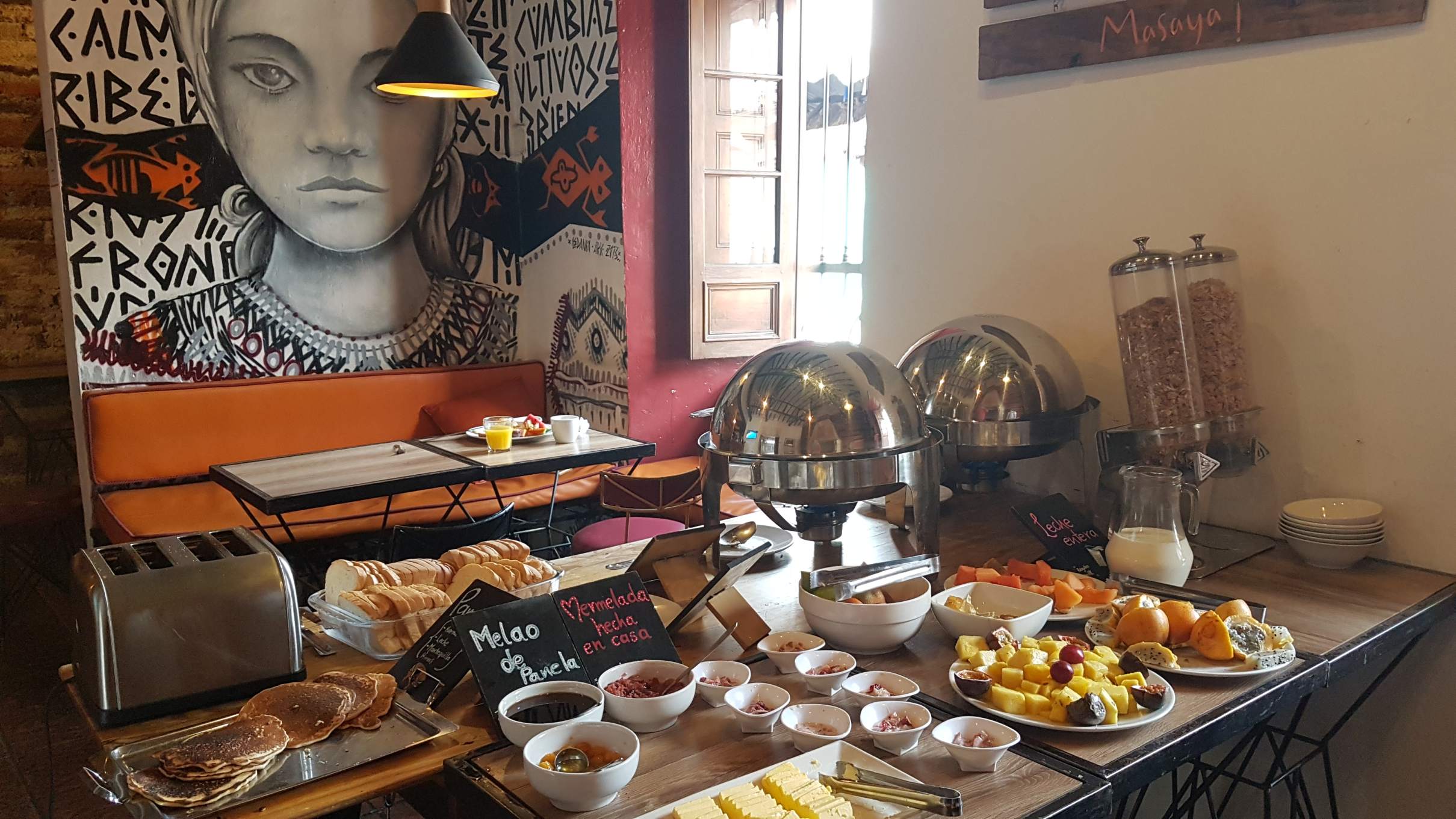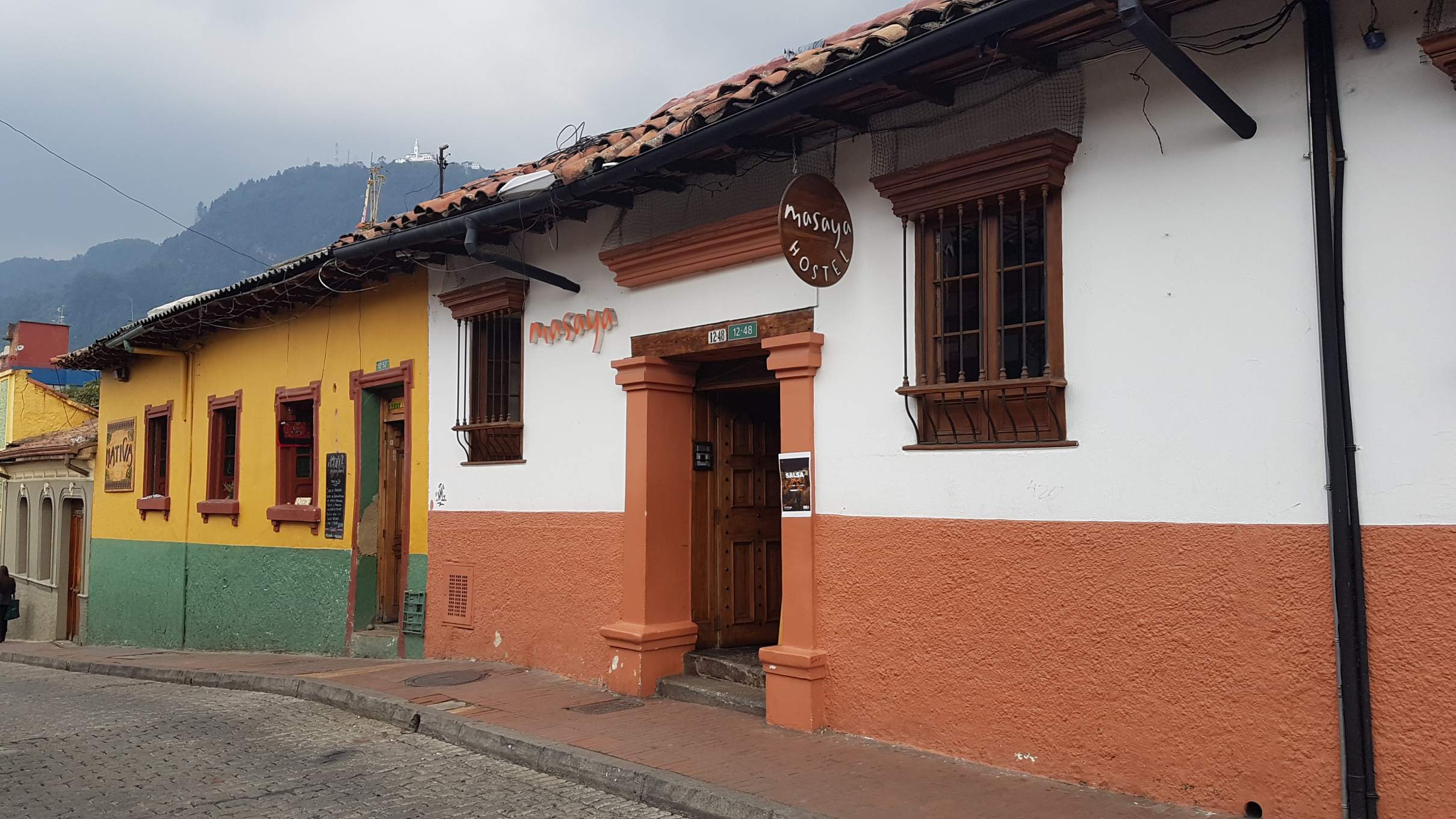 Das ist öffentlicher Nah- und Fernverkehr! Schließlich finde ich auch den Schalter von Sugamuxi, an dem ich gleich mein Ticket nach Yopal für den Sonntag buche. Mit Ticket und aufgefüllten Geldreserven besteige ich das Taxi von Javier, einem jungen, genial sympathischen Taxifahrer, der mich durch die City zu meinem Domizil in der Altstadt von Bogotá bringt: das Hostel Masaya unweit der Plazoleta del Chorro de Quevedo im schönen Stadtteil La Candelaria.