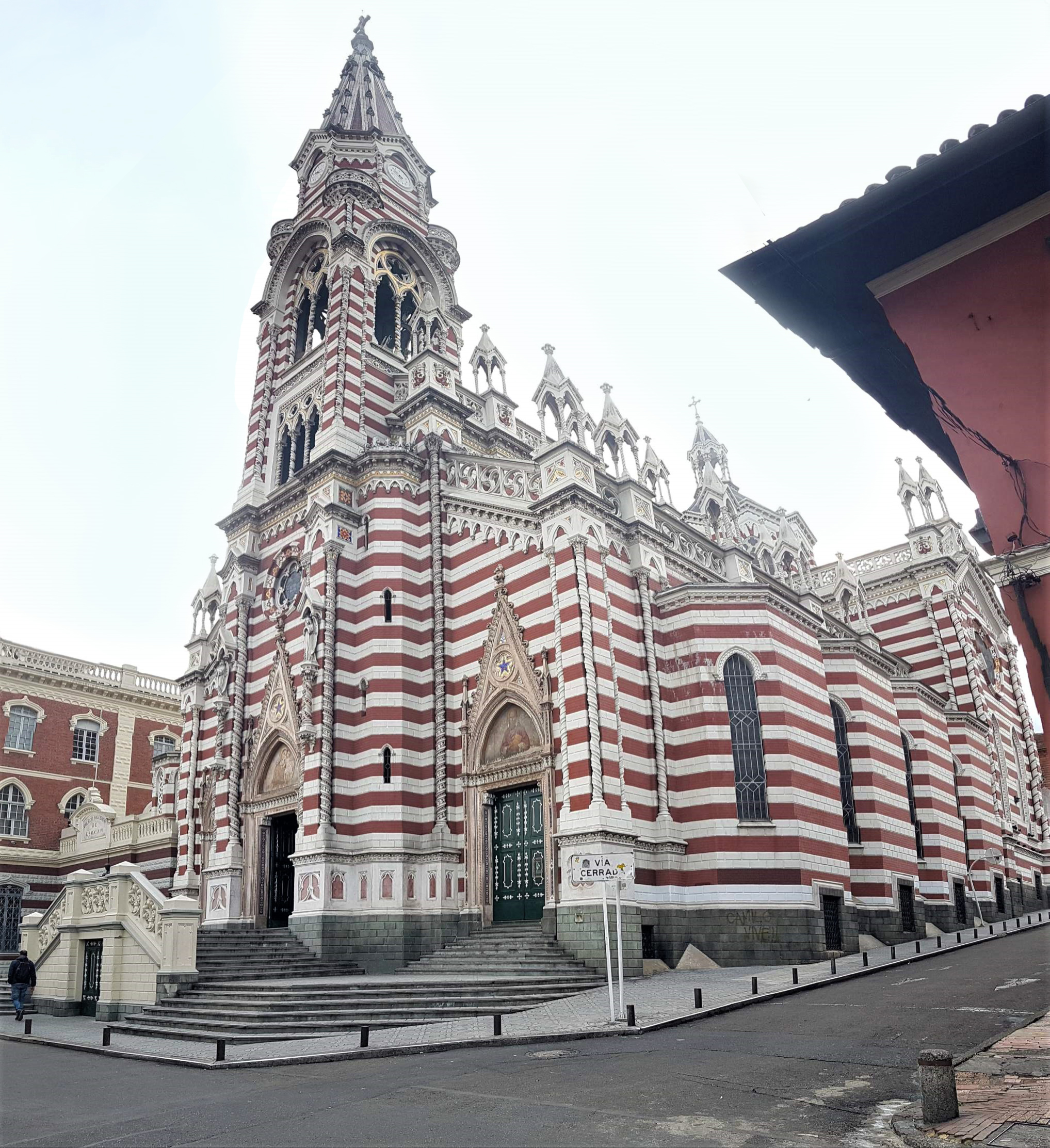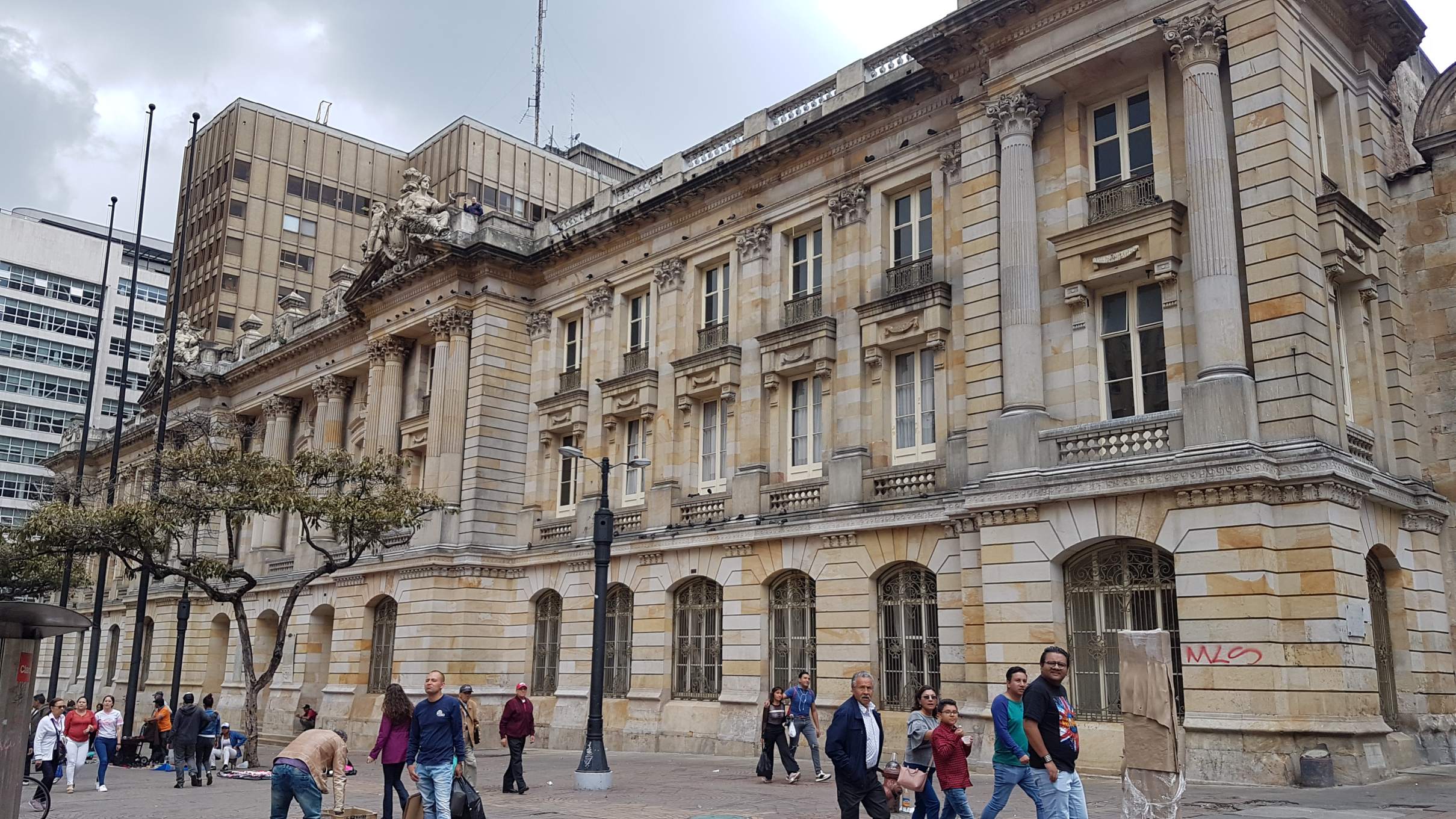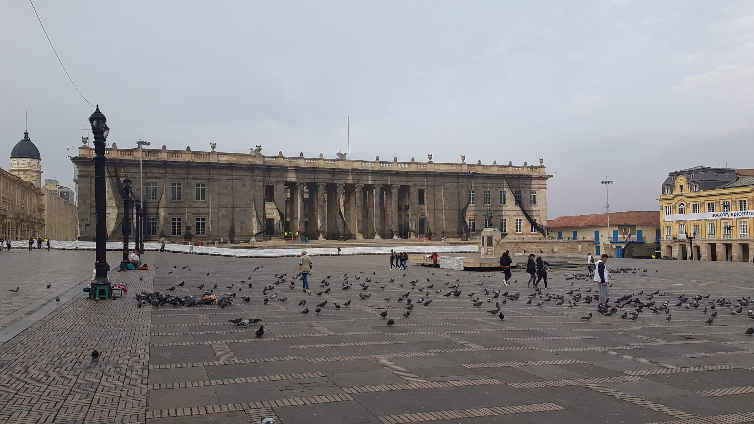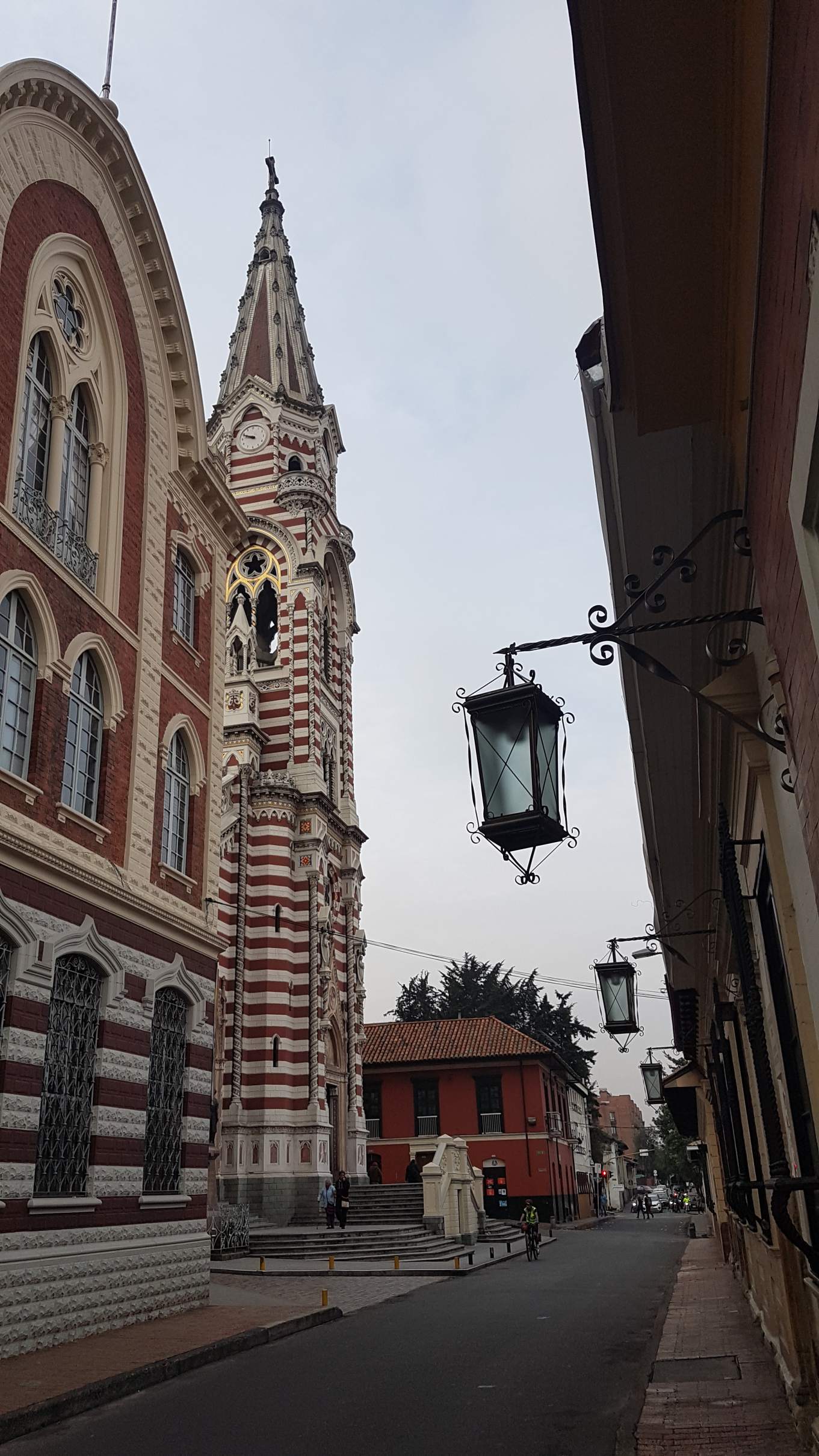 Im großen Bogen komme ich schließlich in belebtere Straßen und an der alten Kirche Nuestra Señora de la Candelaria vorbei zur großen Plaza de Bolívar mit der mächtigen Kathedrale.