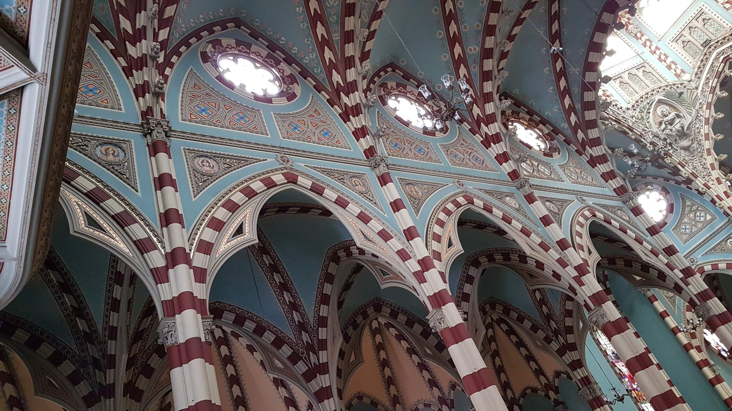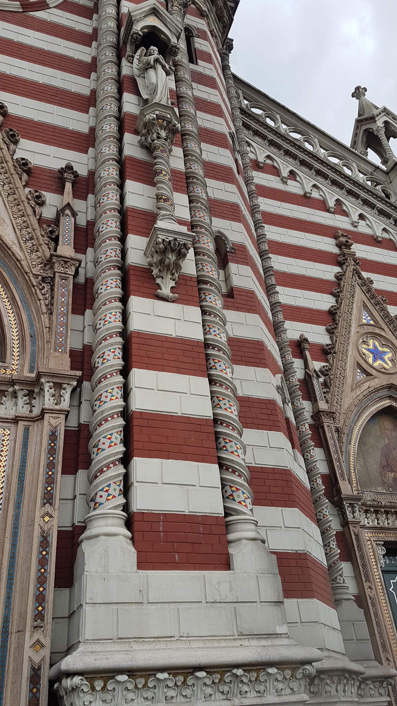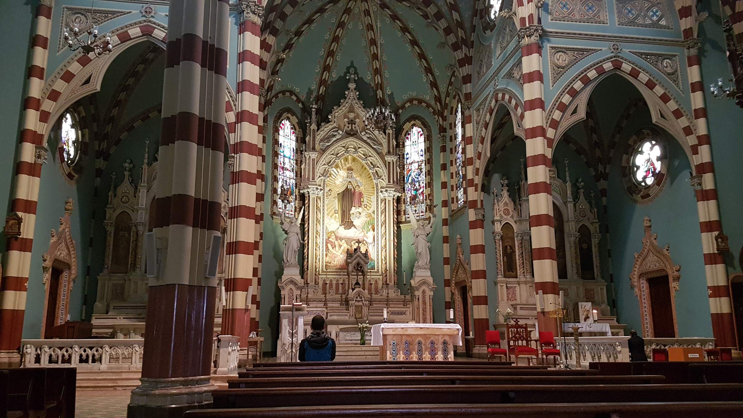 Aber am Samstag schleiche ich schon wieder um 6 Uhr aus dem Dorm und mache mich um kurz vor 7 Uhr erneut auf einen Rundgang durch die noch stillen Gassen. Bei meinem Spaziergang entdecke ich etwas abseits die wunderschöne Kirche Nuestra Señora del Carmen des Ordens der Salesianer Don Boscos . Ich habe Glück und das Portal ist offen. Selten habe ich einen so erfrischend einladenden Kirchenbau ohne Prunk und Protz, dafür mit vielen schönen Details, besonderen Motiven, Mosaiken und Intarsien, gesehen.