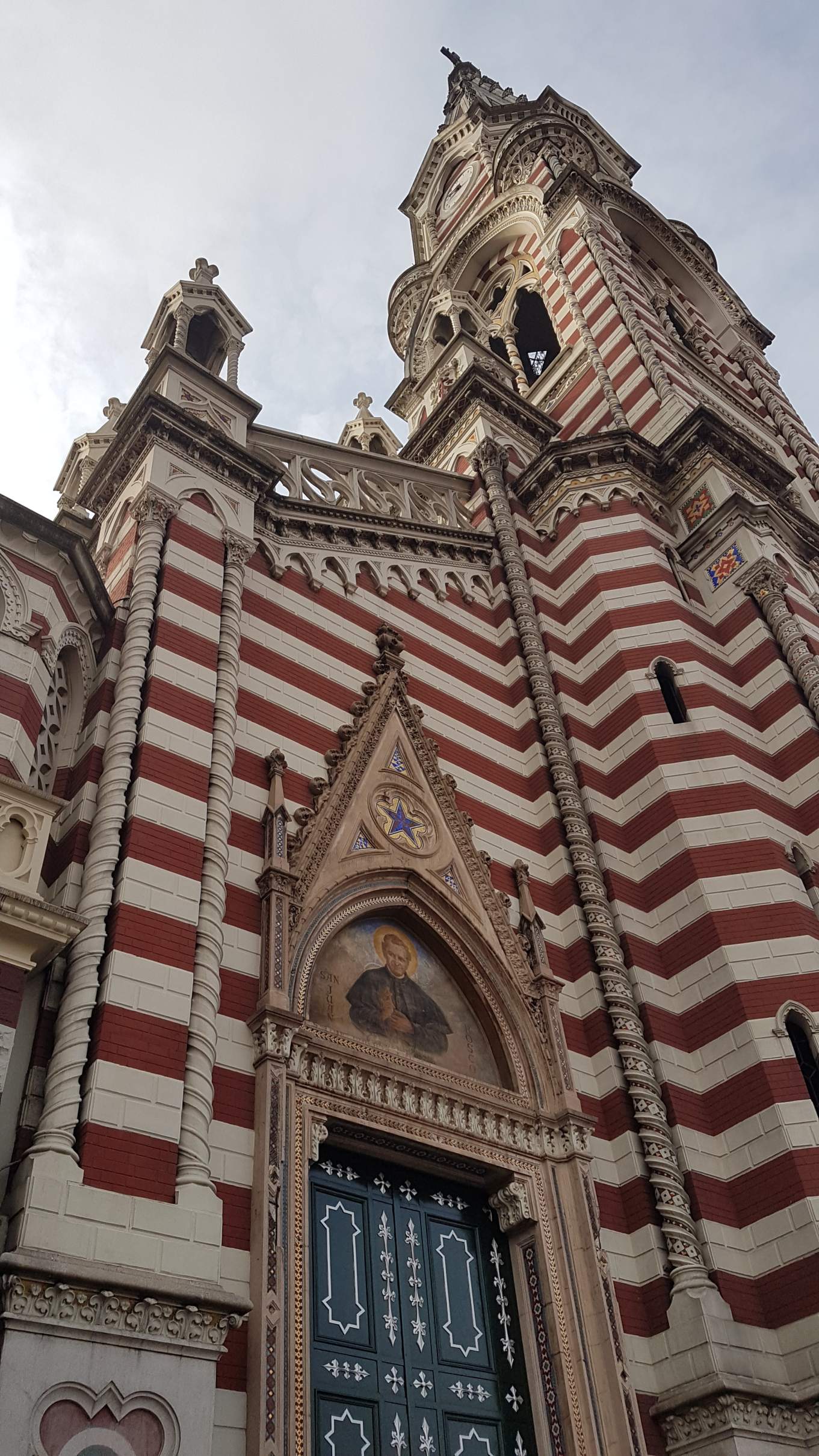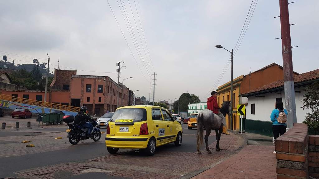Bescheidener steht die die Ägyptische Kirche da und auch das gibt es in der 8-Millionen-Metropole Bogotá: Hauptstraßenverkehr auf 2 oder 4 Beinen, auf 2 oder 4 Rädern: