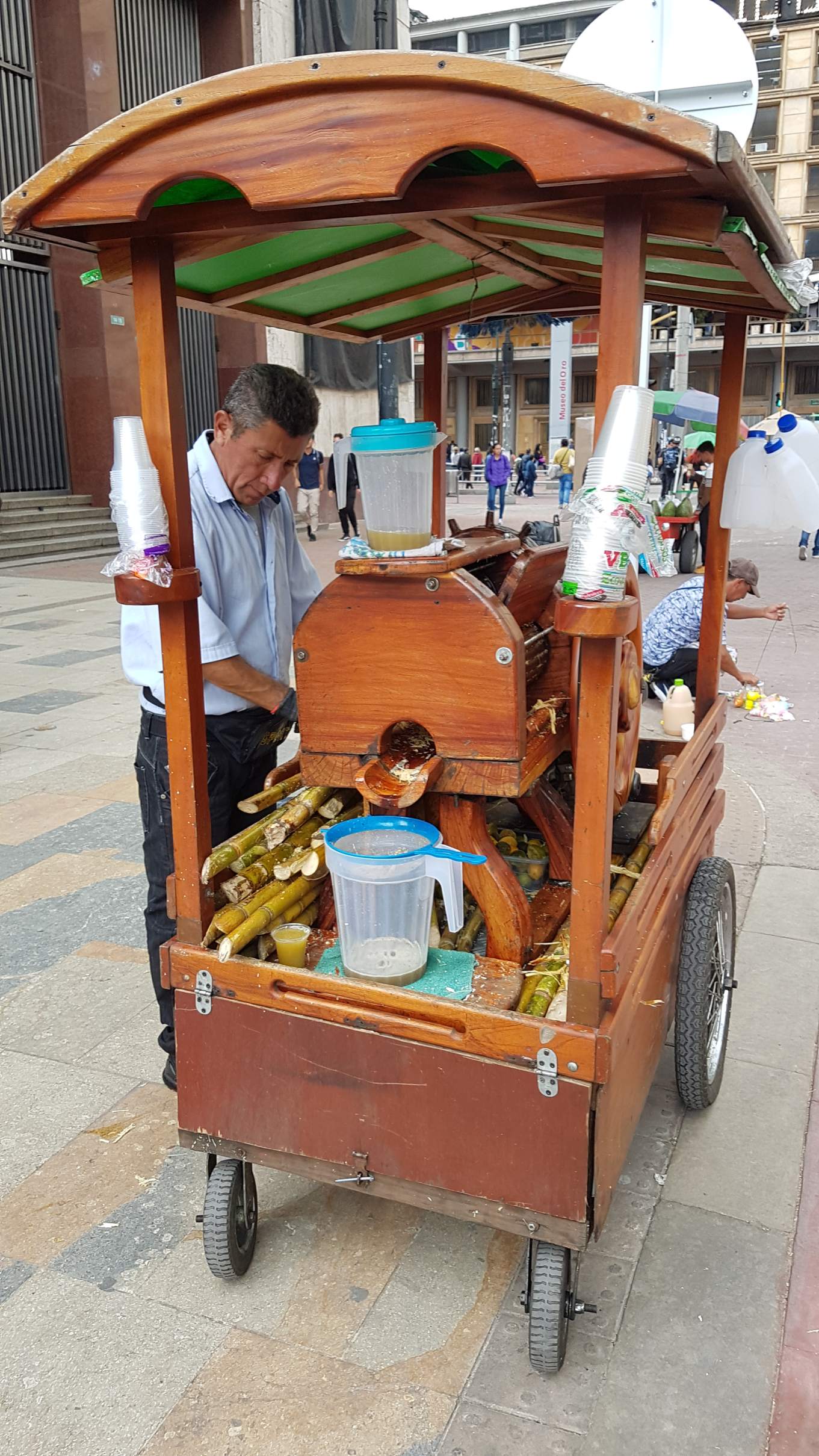 An den Ständen der Indios trete ich in intensive Verhandlungen für die ersten Souvenirs, die nicht wie Kaffee und Kakao gleich mein Aufgabegepäck um Kilos in die Höhe schnellen lassen. Nicht mein Gepäck aber mein Körpergewicht belaste ich mit Arepas con mucho, mucho queso, Obleas con arequipe (Waffeln mit Karamellsauce) und frisch gepresstem Zuckerrohr mit Limette.