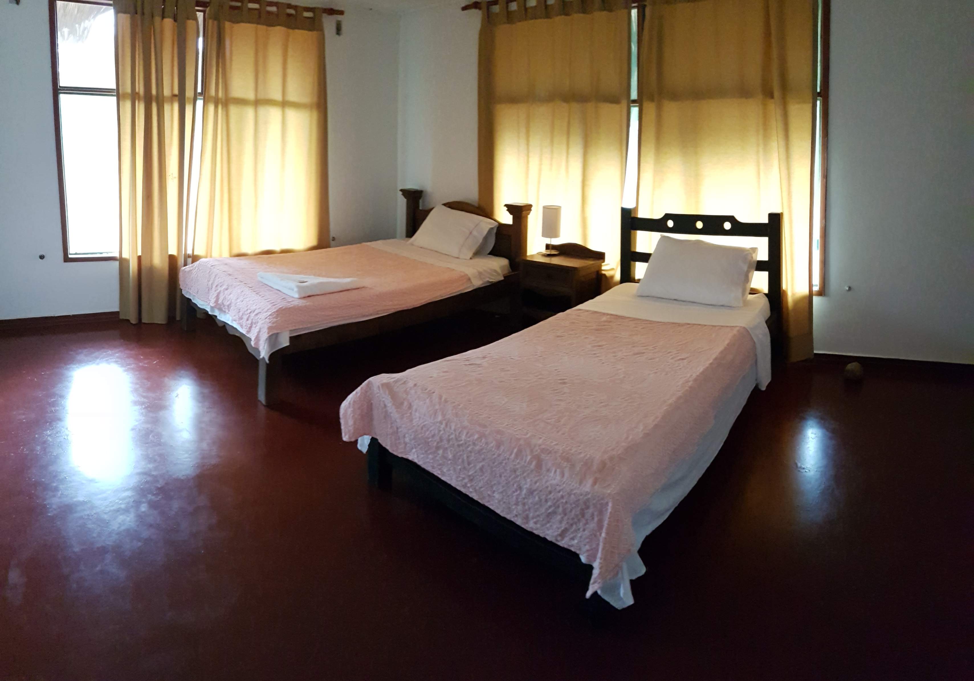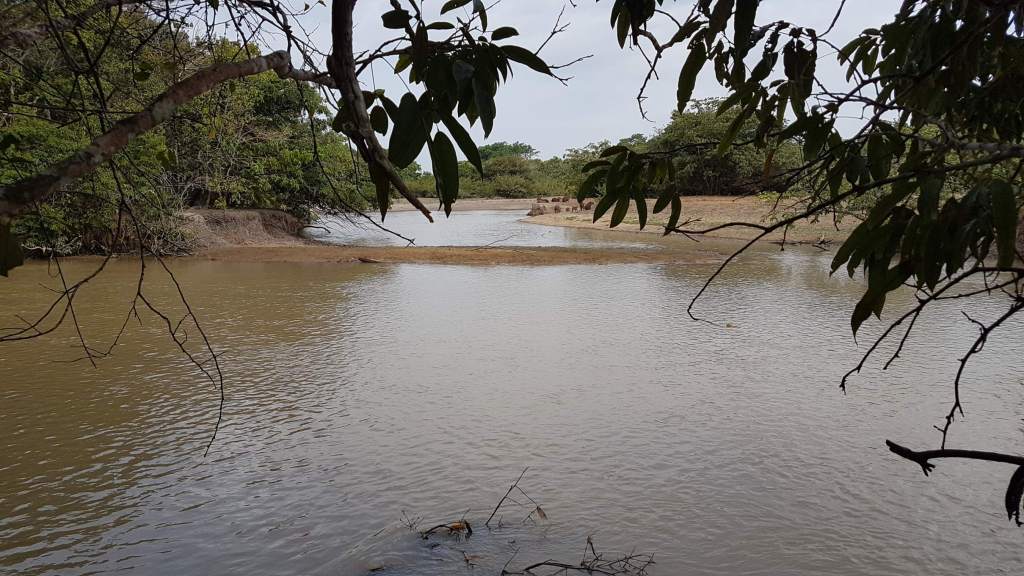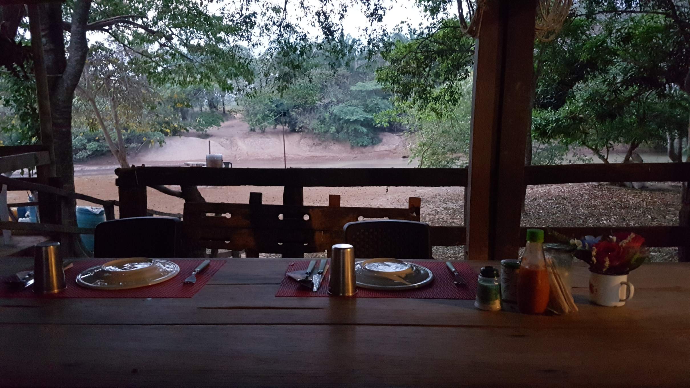 Nach 5 Stunden erreichen wir die Juan Salito Lodge, werden freundlichst empfangen und ich beziehe mein geräumiges Zimmer mit Bad. Das offene Restaurant ist etwas abseits gelegen direkt am schlammig braunen Río Ariporo, der Lebensader des Hato. An den steilen Ufern kann man erkennen, dass der Fluss während der Regenzeit im hiesigen Winter einen extrem höheren Wasserstand hat. Denn eigentlich sind die Llanos Feuchtsavannen, in denen zur Regenzeit der Boden unter Wasser steht und so vollgesaugt und matschig ist, dass nahezu kein Fortkommen ist.