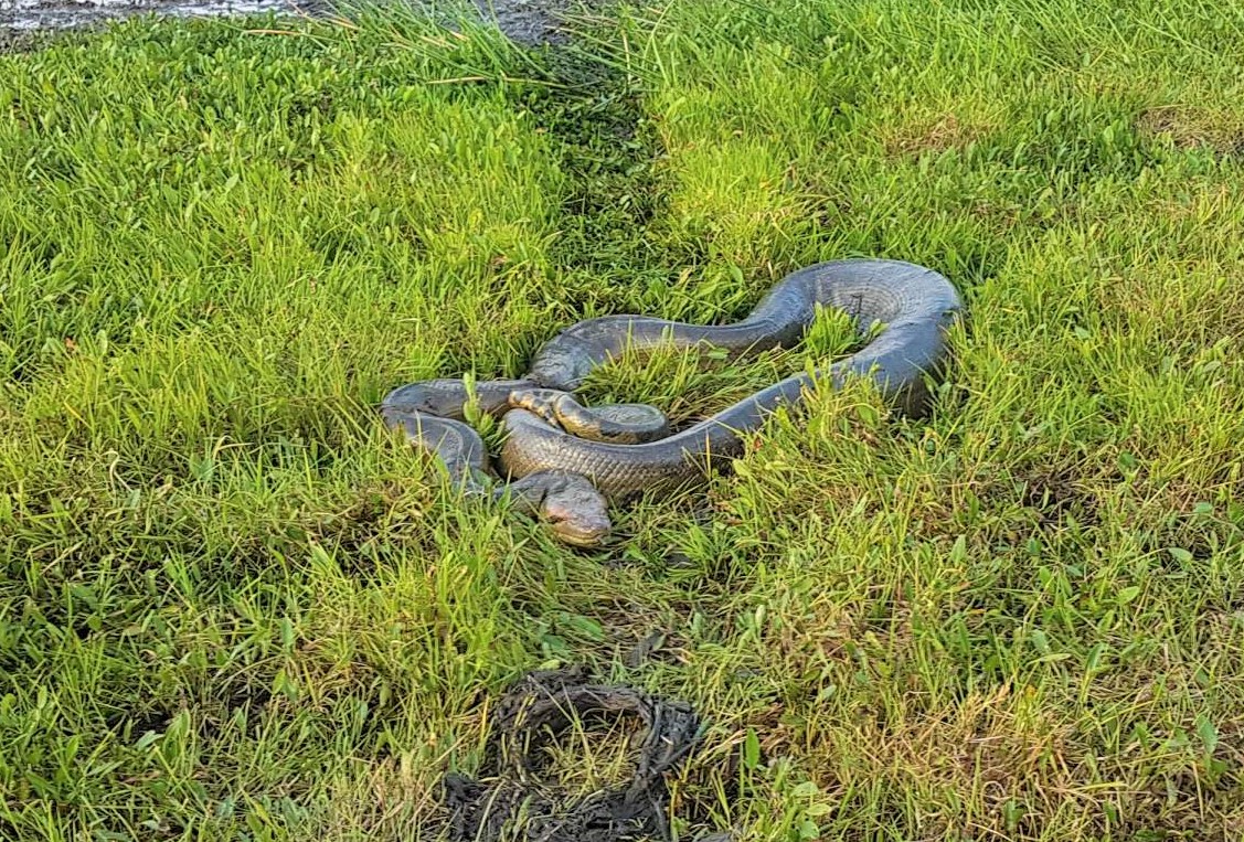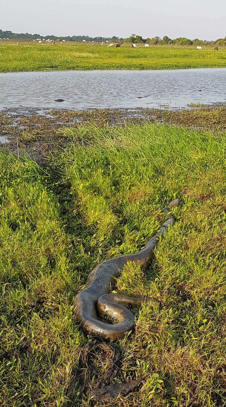 Bei der Siesta dann zu hören, dass die zwei Jeeps mit der „Sonderfracht“ unter Julios Führung – oh Wunder – tatsächlich ein Jaguar-Paar beobachten konnten, hat mich dann schon ganz schön verärgert. Deshalb kann ich mich auch nicht so richtig freuen, als wir um 16 Uhr an einem Gewässer zusammengetrommelt werden, um eine Anakonda aufzuspüren. Die Suche dauert und dauert, bis Franklin schließlich eine im Schlick entdeckt. Gemeinsam zerren die Guides das arme Tier aus seinem nassen Versteck – nicht gerade die feine, naturnahe Art. Aber die VIP-Truppe ist ja auch dabei und denen wird in drei Tagen geboten, was die Llanos hergeben.