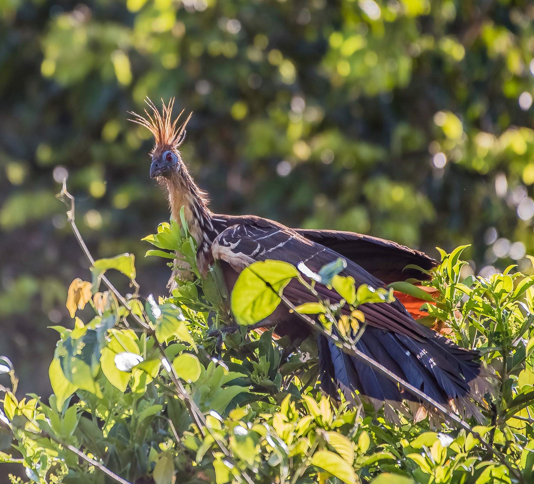 Unser Guide Franklin erweist sich als wenig gesprächig und wenn er den Mund aufmacht, verstehe ich nahezu nichts. Mit der Zeit schnappen Uli und ich zumindest einige Tier- und Vogelnamen auf wie den Chinchena, der in Peru Hoatzin heißt, den Coracora roja (roter Ibis), die Chigüiros (Wasserschweine oder Capybaras) oder der endemische und sehr seltene schwarze Paujil. Andere sind zum Glück selbsterklärend wie Caimán, Anaconda, Aguíla, Ganso Orinoco oder Garzón soldato …