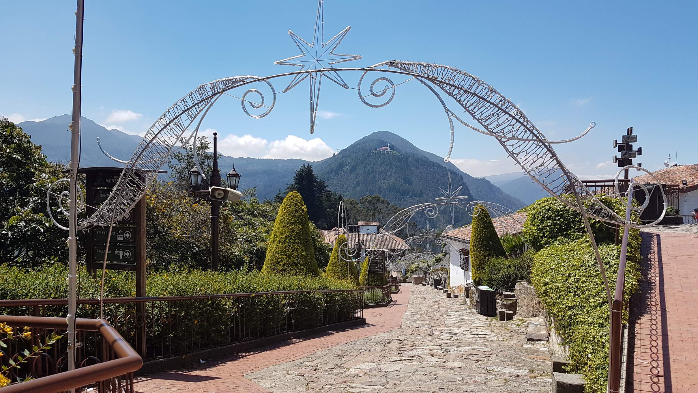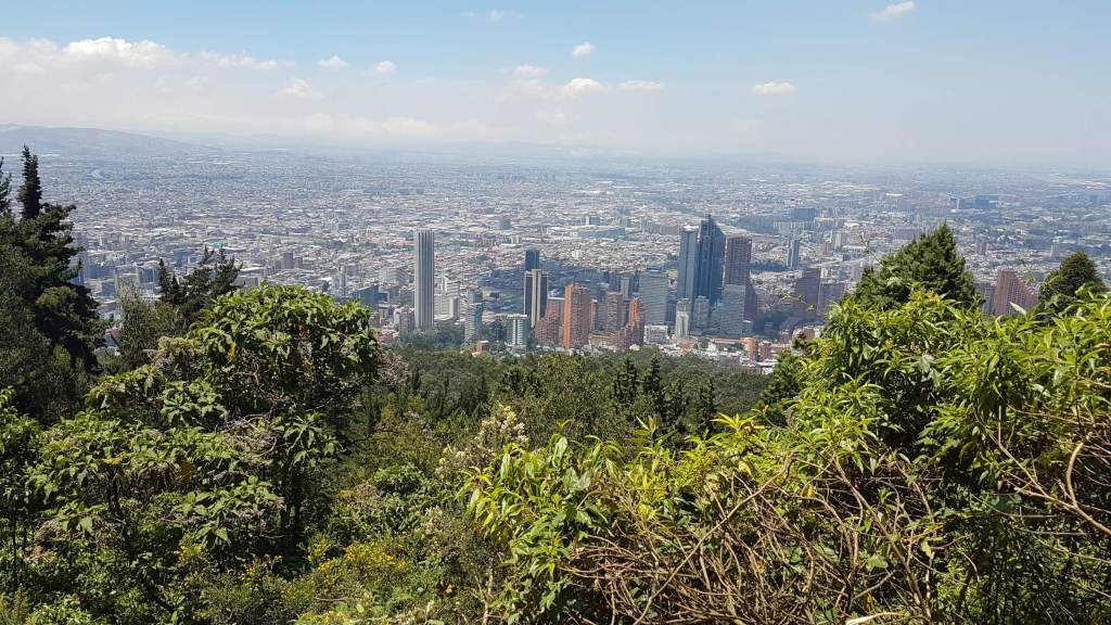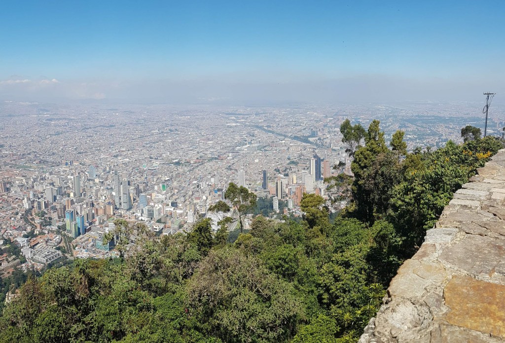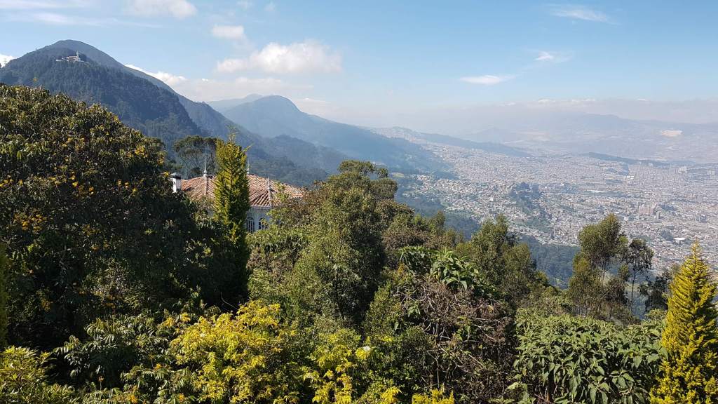 Buenos días Bogotá! Die Mega-City auf 2.650 m begrüßt mich bei meinem zweiten Besuch mit strahlend blauem Himmel und heißen Temperaturen. Das ist wie ein ganz besonderes Abschiedsgeschenk für mich, denn ich möchte an meinem letzten Tag auf jeden Fall noch den Hausberg, den Cerro de Monserrate, besuchen und mir Bogotá von oben anschauen. Obwohl ich ja gerne bergauf steige, treibt mir die Wegbeschreibung über die steilen 1.605 Stufen auf den 3.152 m hohen Gipfel bei dieser Hitze schon in Gedanken daran die Schweißperlen auf die Stirn. Deshalb entscheide ich wohlüberlegt, für die Auffahrt die Funicular zu benutzen und die Treppen am Nachmittag ohne Hast und Hetze abzusteigen. Gute Wahl!!