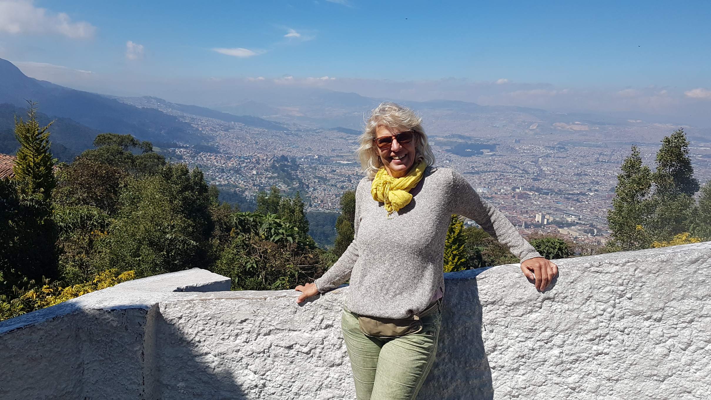 So stehe ich also frisch und fröhlich um 9.30 Uhr auf dem Monserrate und genieße diese sensationelle Aussicht auf Bogotá! Bin ich nicht ein Glückskind?!?