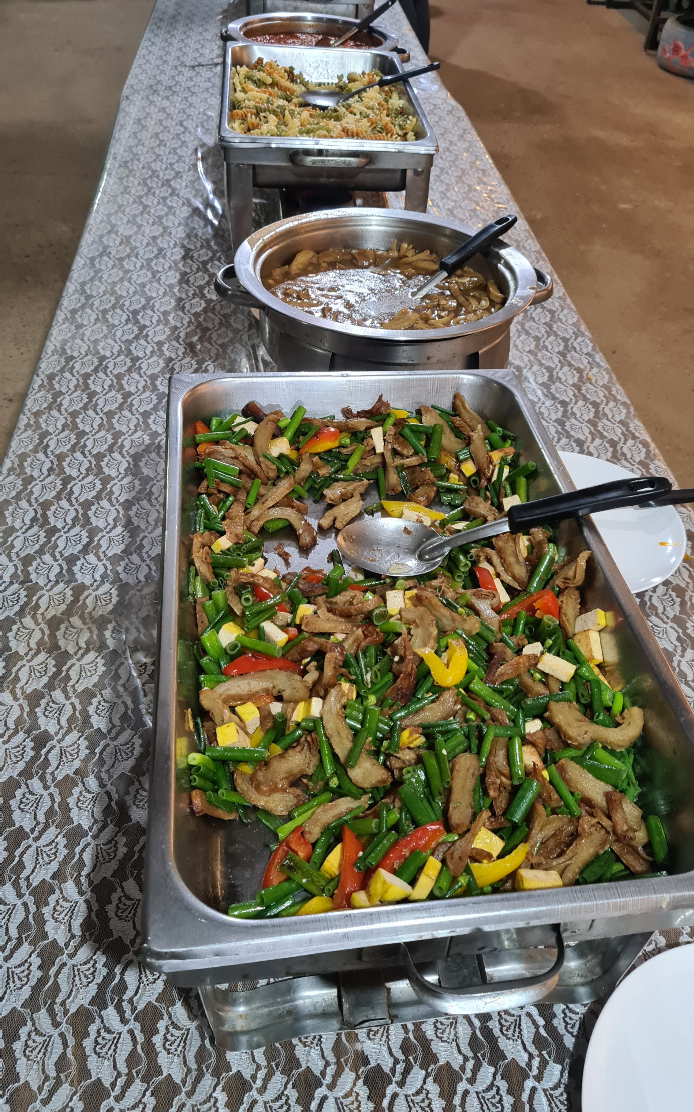 Eineinhalb Stunden schuften wir unter viel Geläster und Gelächter und obwohl unsere Ernte auf der Ladefläche noch kaum Platz wegnimmt, gibt Joe das Kommando zur Abfahrt. Zurück im Camp laden wir noch gemeinsam ab und verstauen die schweren Stangen in der Großküche.