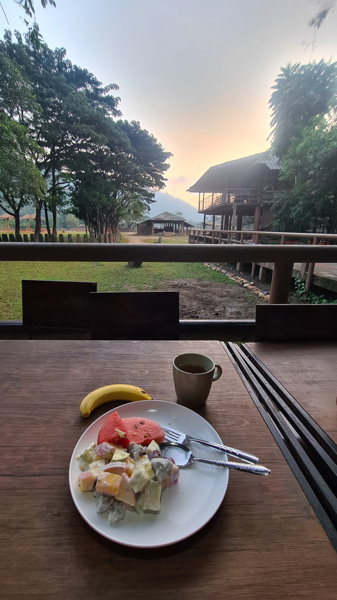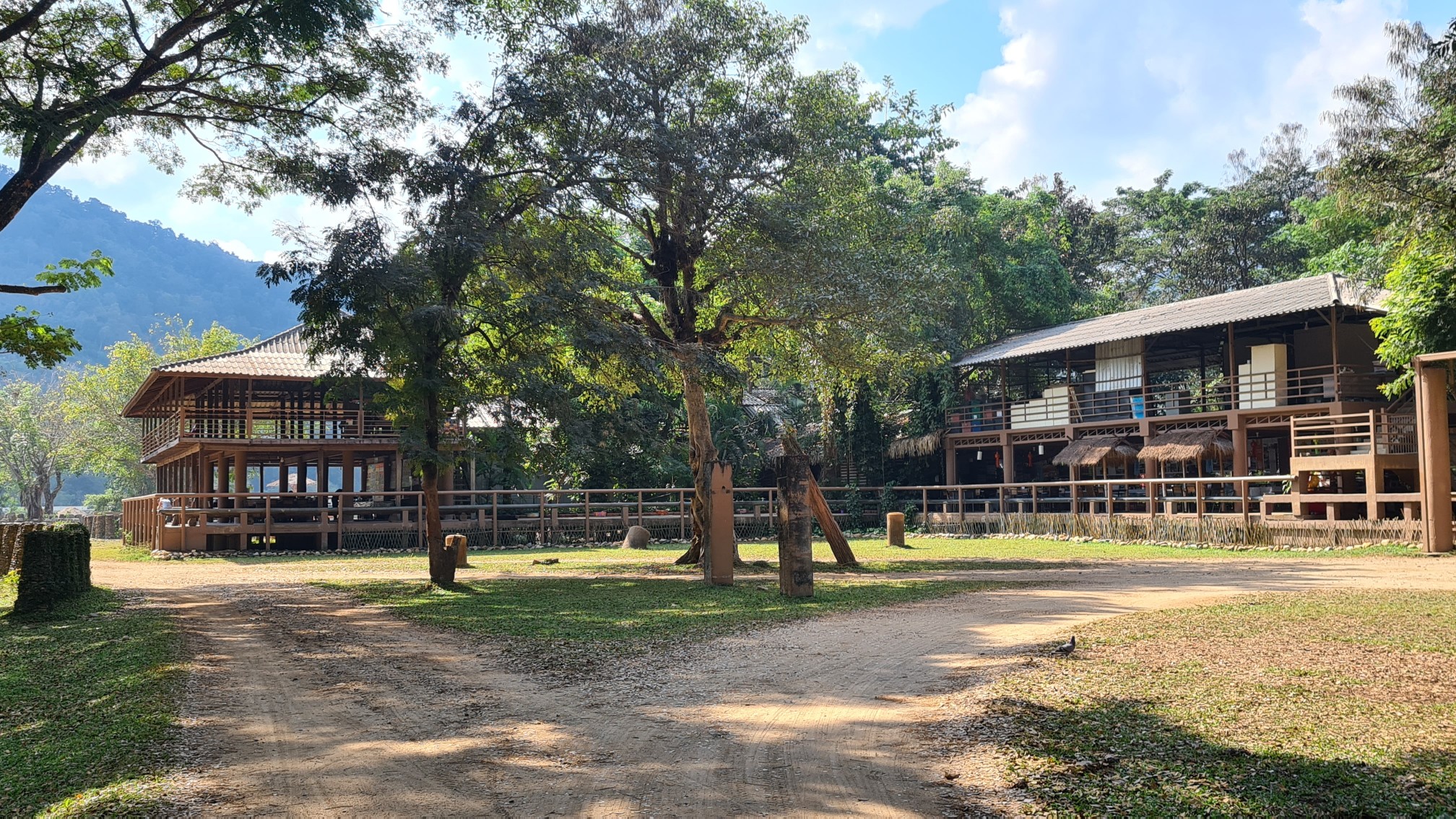 Nach einer grundlegenden Einweisung zum Ablauf unserer Volunteering-Woche, führen uns Lom und Joe noch in der näheren Umgebung rund, zeigen uns die ersten Elefantengruppen, den kleinen Shop, das Cat Kingdom und die Hundeauffangstation. Neben Elefanten rettet der ENP nämlich auch noch Hunde, Katzen, Wasserbüffel, Pferde usw. aus miserablen Verhältnissen oder auch nach Naturkatastrophen. Gegen 16.30 Uhr treffen wir uns dann wieder auf der kleinen Aussichtsterrasse am Fluss und warten auf die Rückkehr der KhamLa-Gruppe zum Abendsnack und zu ihren Schlafhäusern.