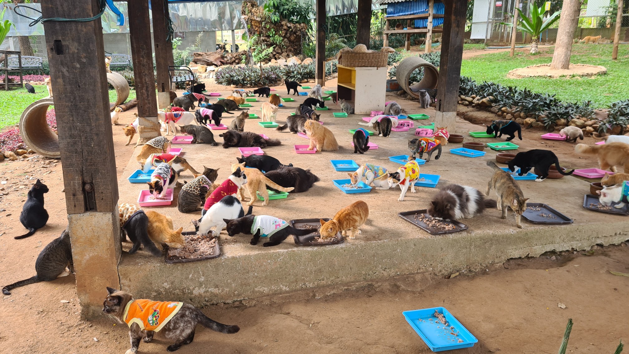 Da bleibt anschließend tatsächlich noch Zeit fürs große Cat Kingdom, das etwas weiter am Fluss entlang in mehreren Großraumgehegen unter der Leitung von Shana etwa zweitausend Katzen beherbergt.