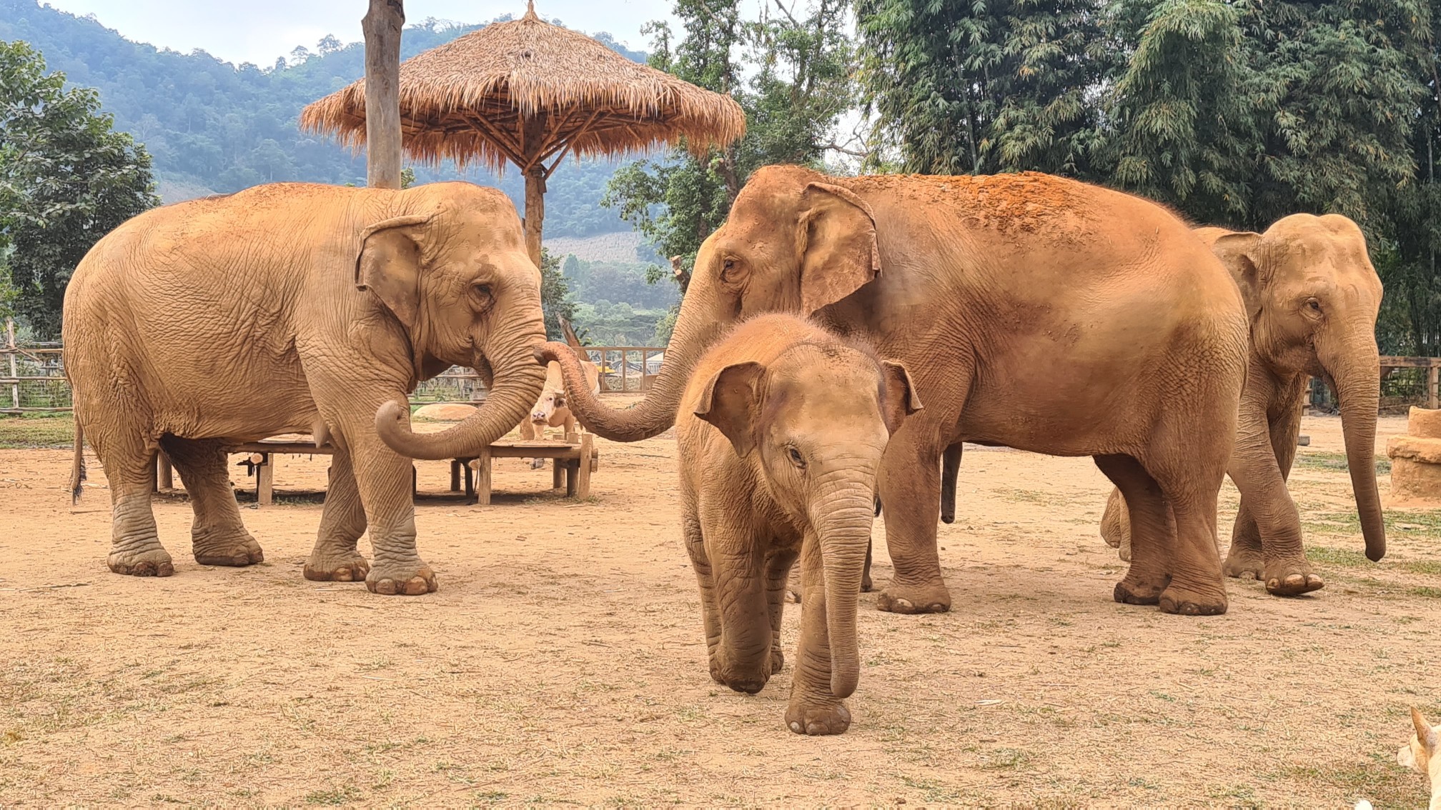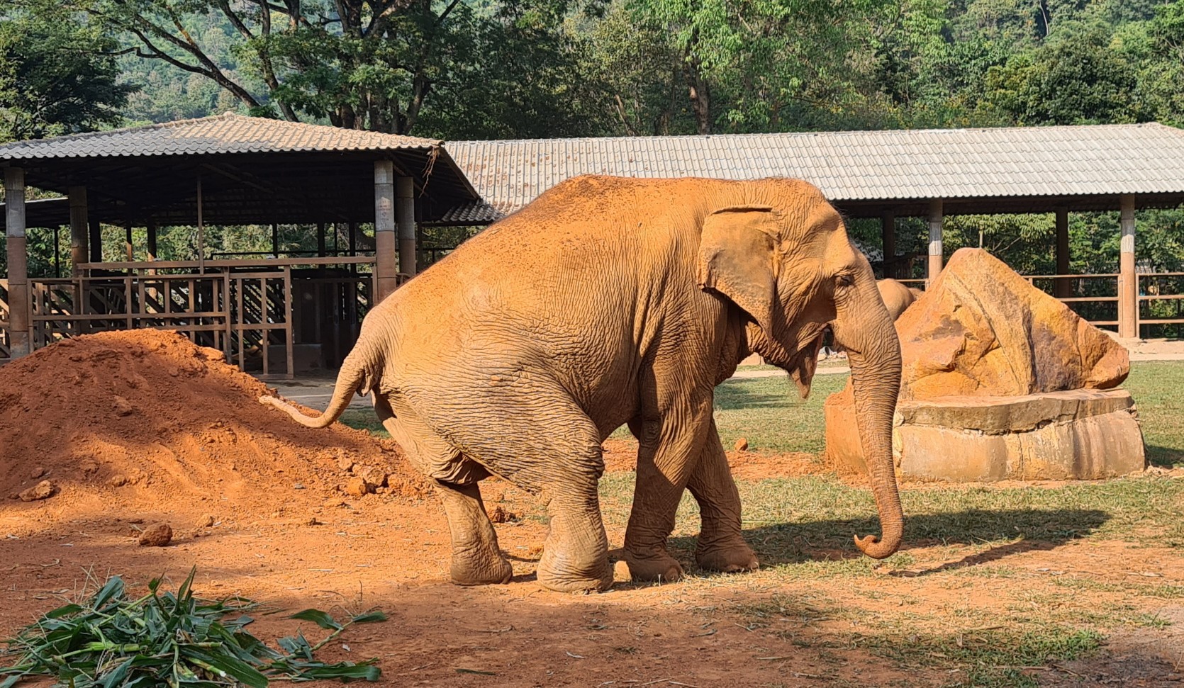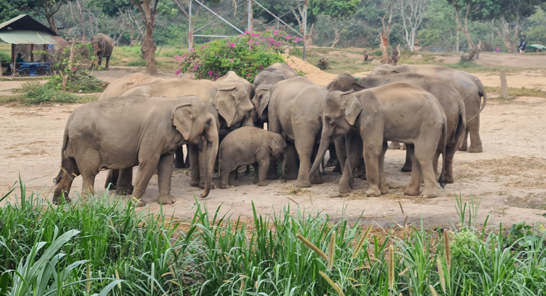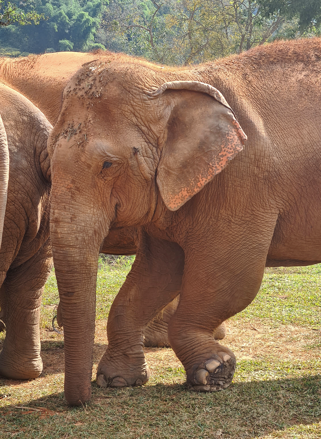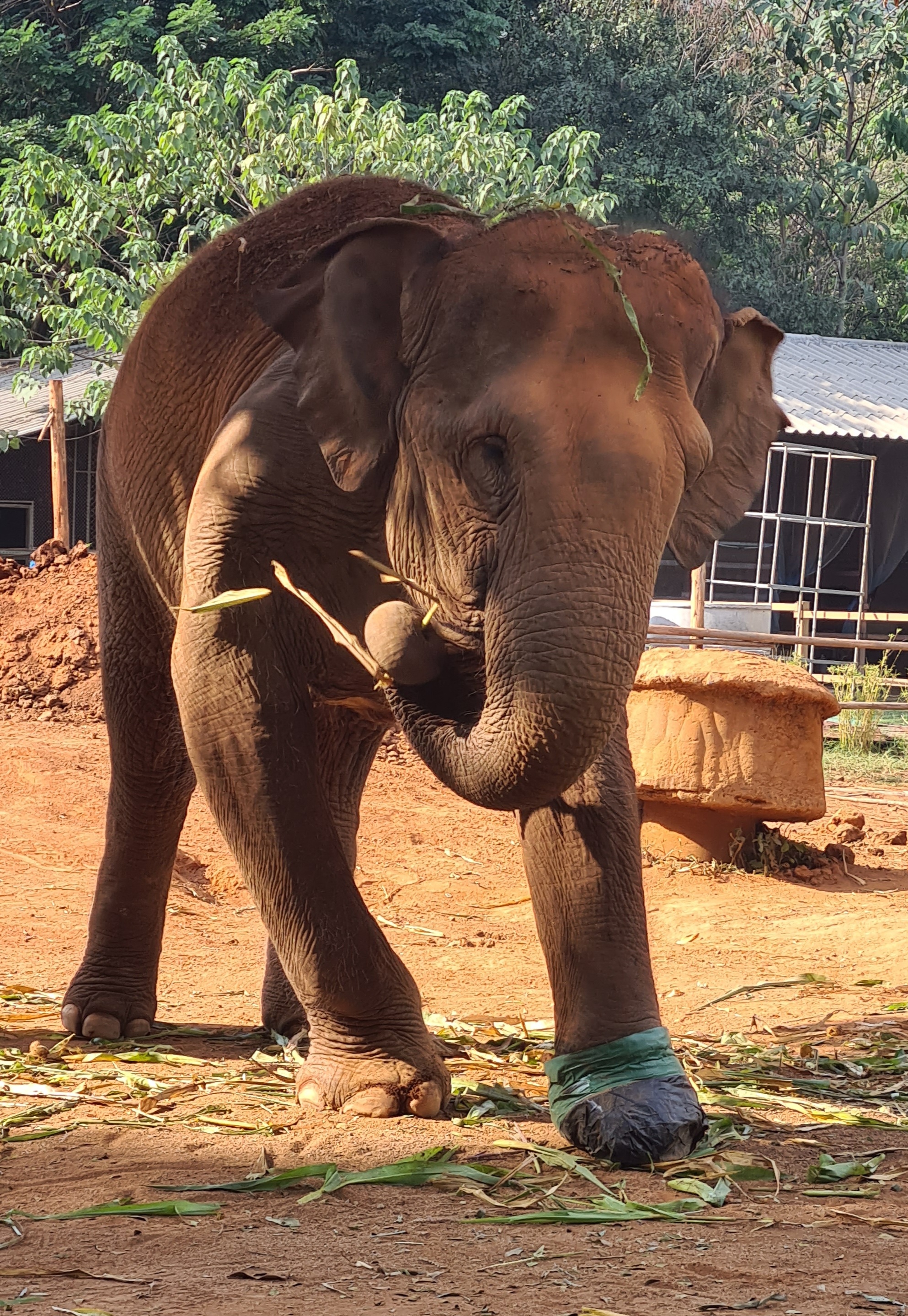 Zu Beginn des großartigen Projektes hat Lek ausschließlich alte Elefanten aufgenommen, manche blind oder taub, andere mit schwersten Verletzungen wie offenen Füßen, Brüchen in Beinen oder Hüften durch unbehandelte Verletzungen oder Zwangsdeckung zur Zucht von Nachwuchsarbeitstieren. Inzwischen, insbesondere nach der Pandemie, adoptiert sie auch Elefantenkühe mit ihren Jungtieren, um sie vor einem leidvollen Schicksal zu bewahren oder weil sie von den Eigentümern schlichtweg nicht mehr versorgt werden.
