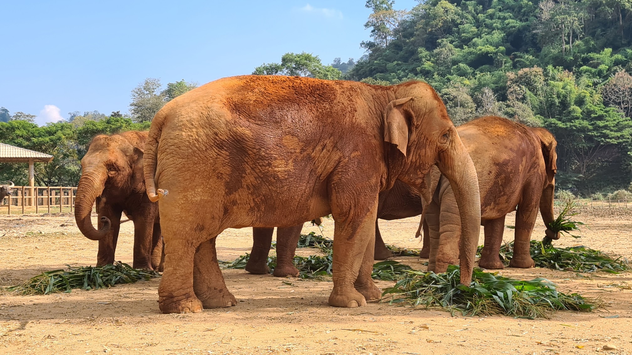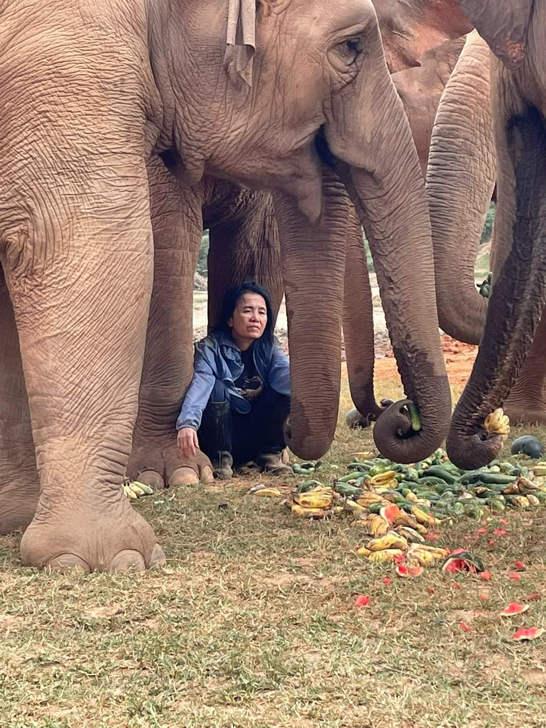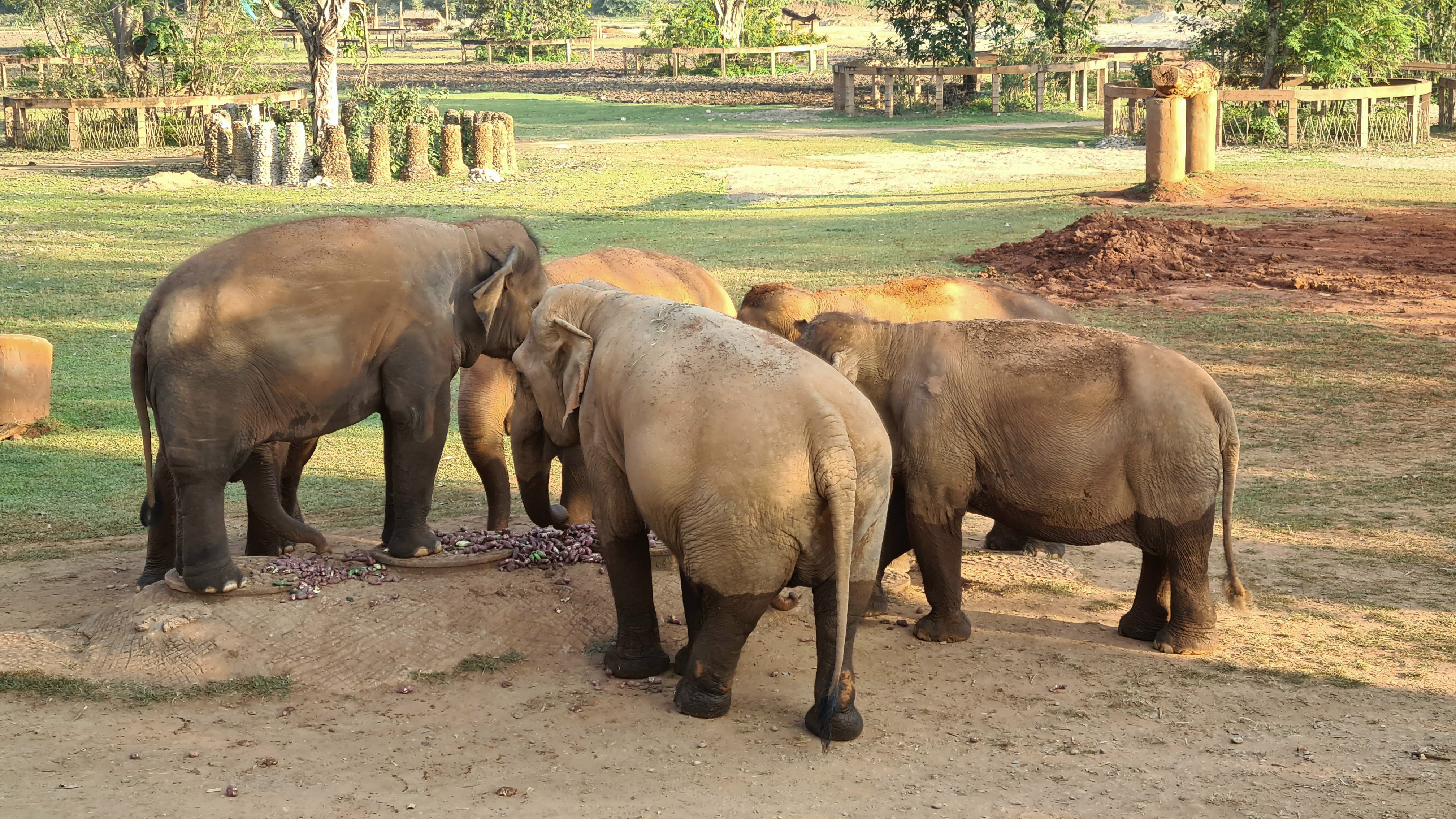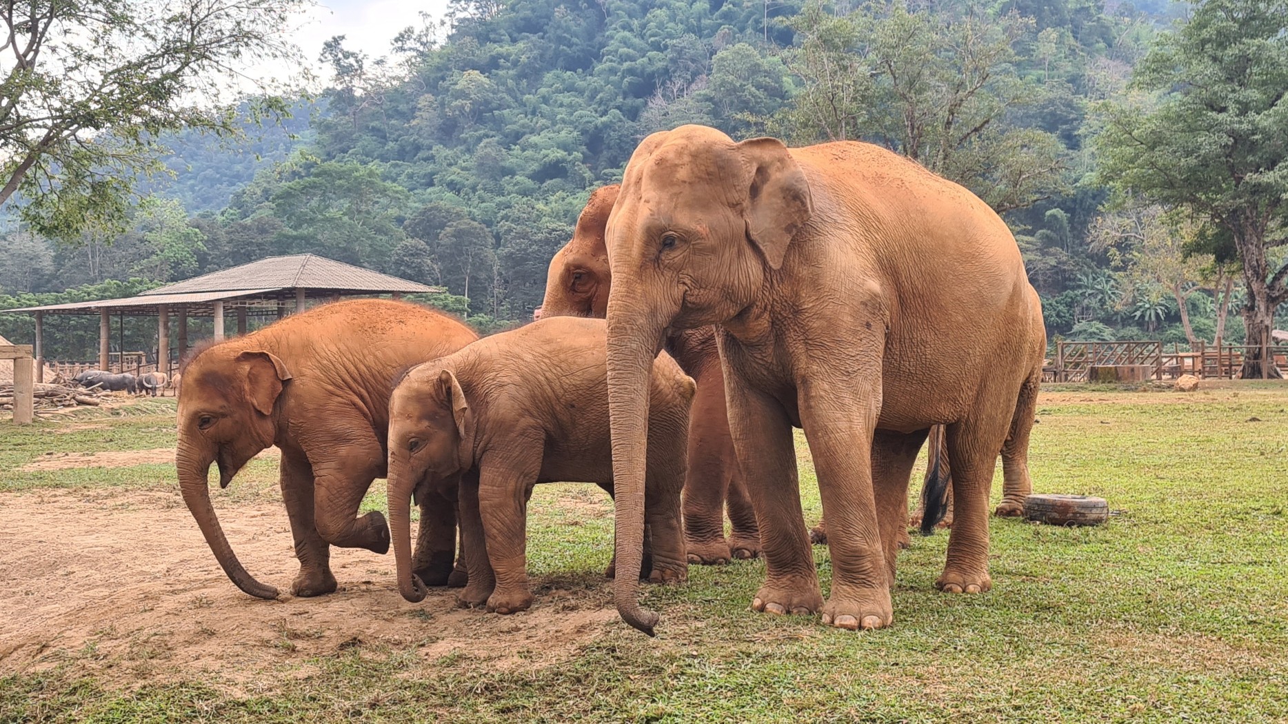 Zu Beginn des großartigen Projektes hat Lek ausschließlich alte Elefanten aufgenommen, manche blind oder taub, andere mit schwersten Verletzungen wie offenen Füßen, Brüchen in Beinen oder Hüften durch unbehandelte Verletzungen oder Zwangsdeckung zur Zucht von Nachwuchsarbeitstieren. Inzwischen, insbesondere nach der Pandemie, adoptiert sie auch Elefantenkühe mit ihren Jungtieren, um sie vor einem leidvollen Schicksal zu bewahren oder weil sie von den Eigentümern schlichtweg nicht mehr versorgt werden.