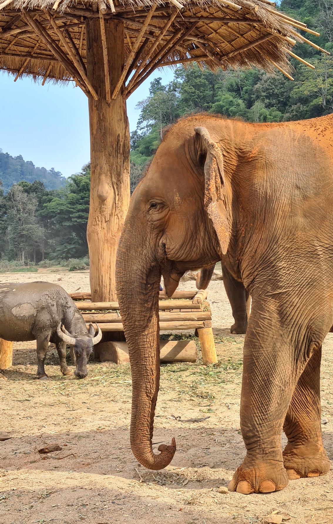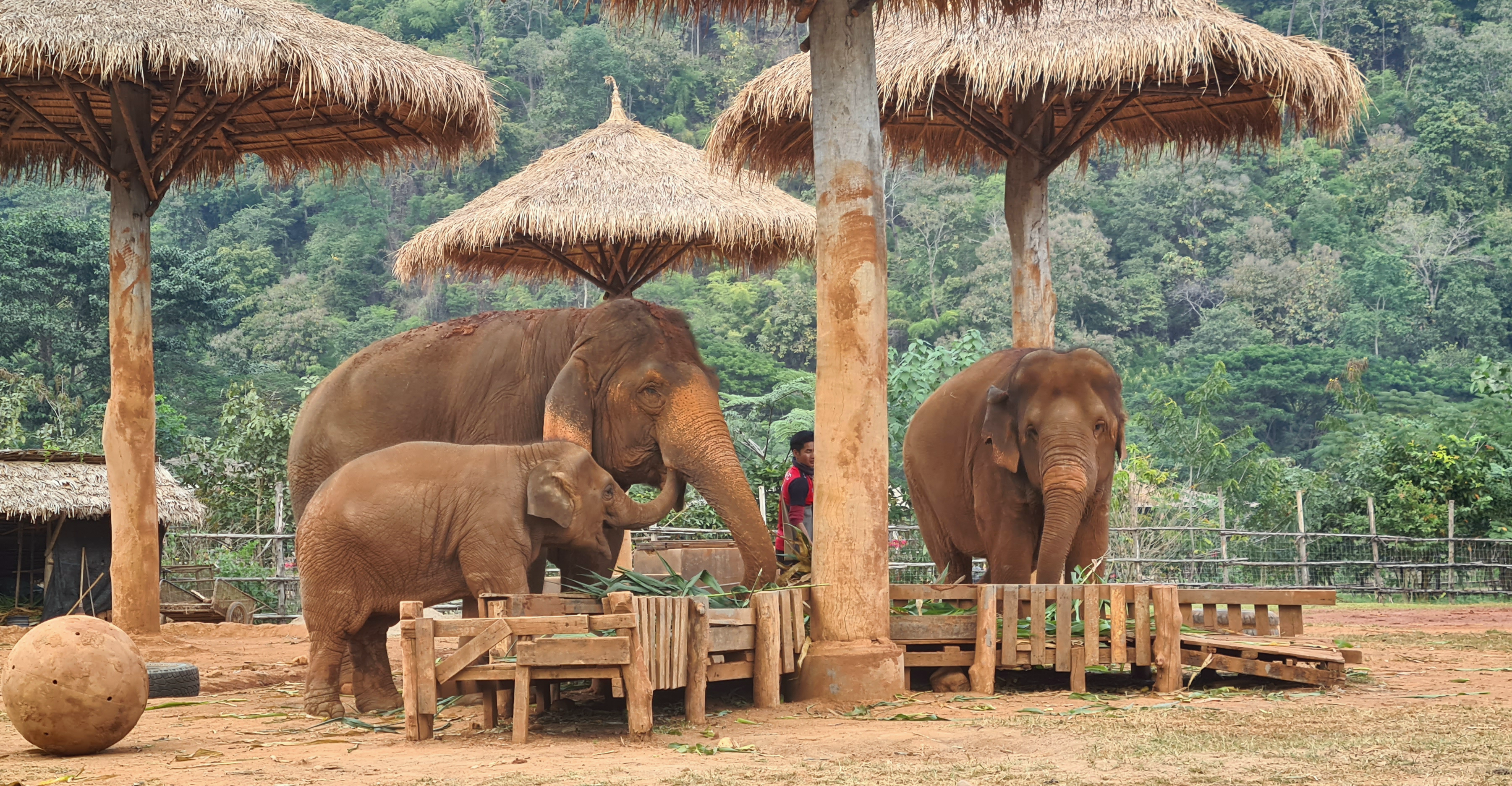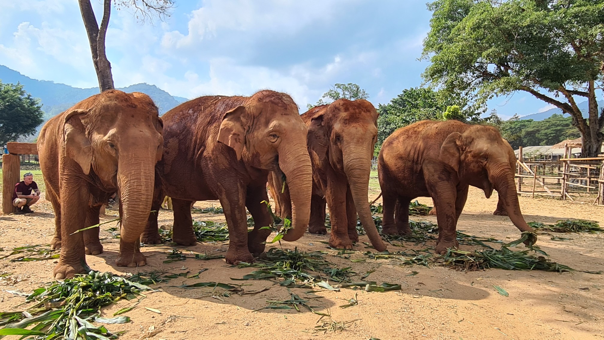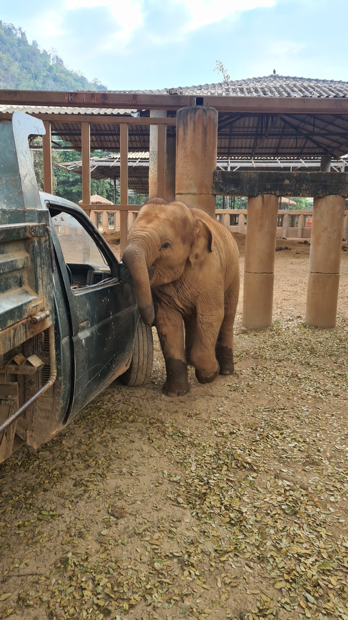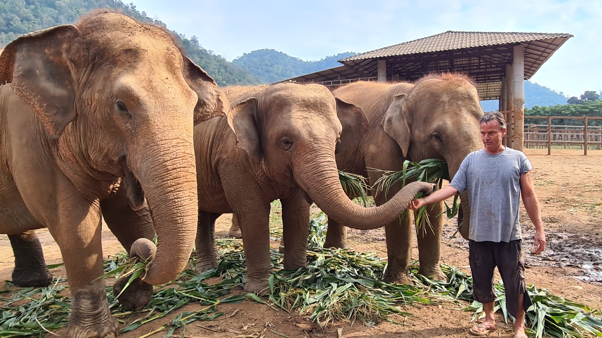 Zu Beginn des großartigen Projektes hat Lek ausschließlich alte Elefanten aufgenommen, manche blind oder taub, andere mit schwersten Verletzungen wie offenen Füßen, Brüchen in Beinen oder Hüften durch unbehandelte Verletzungen oder Zwangsdeckung zur Zucht von Nachwuchsarbeitstieren. Inzwischen, insbesondere nach der Pandemie, adoptiert sie auch Elefantenkühe mit ihren Jungtieren, um sie vor einem leidvollen Schicksal zu bewahren oder weil sie von den Eigentümern schlichtweg nicht mehr versorgt werden.