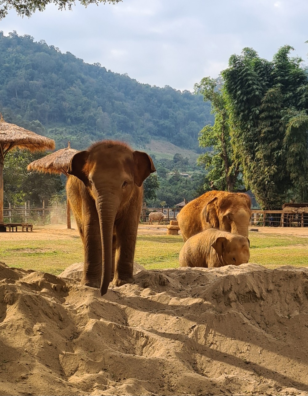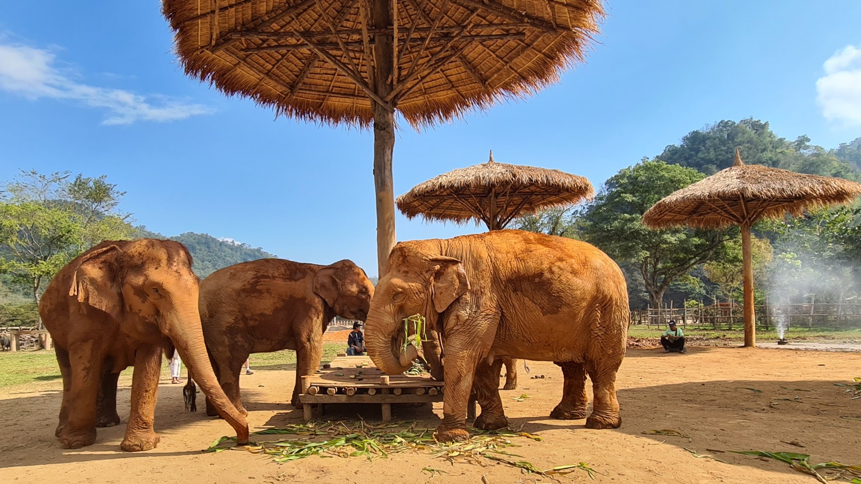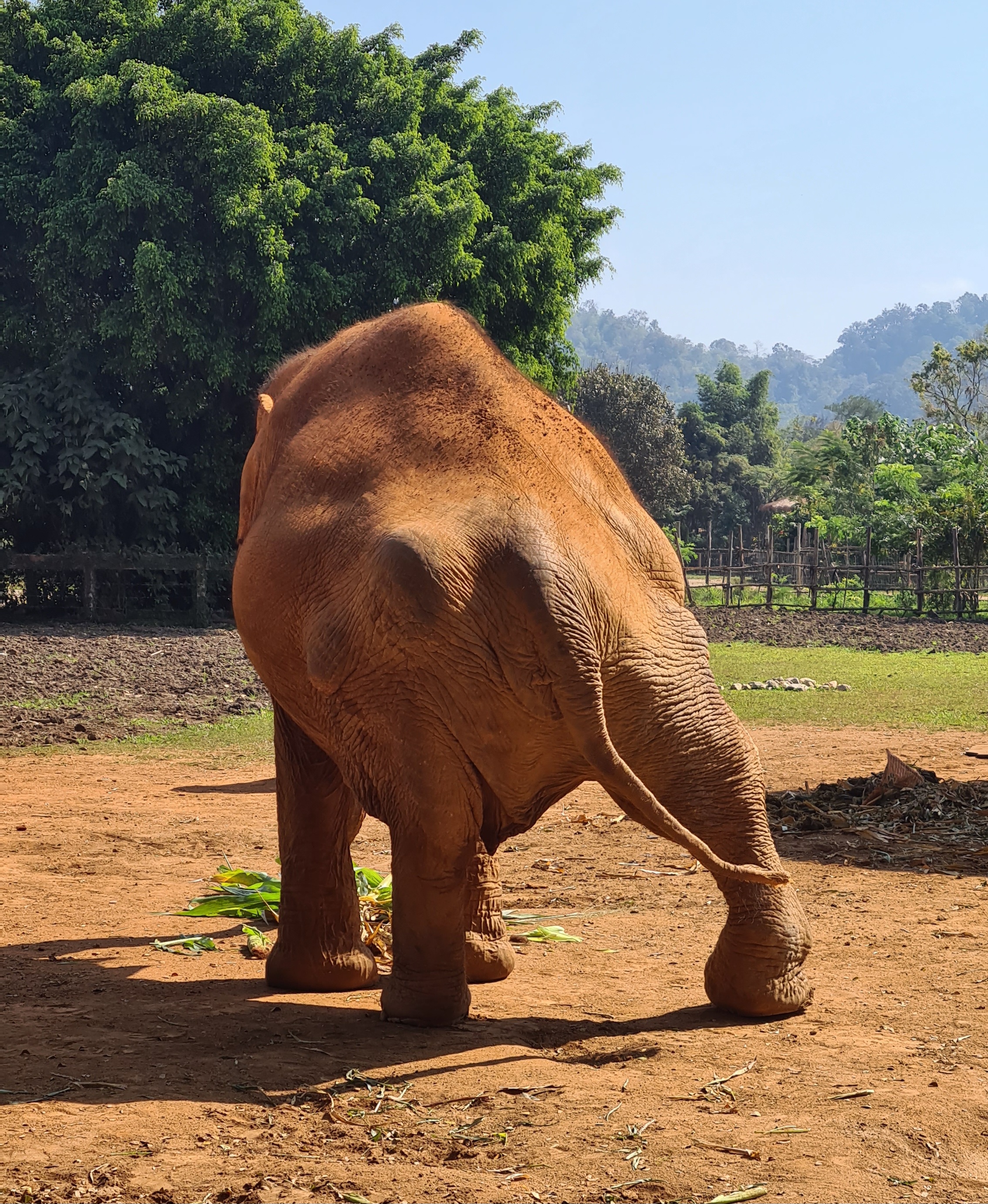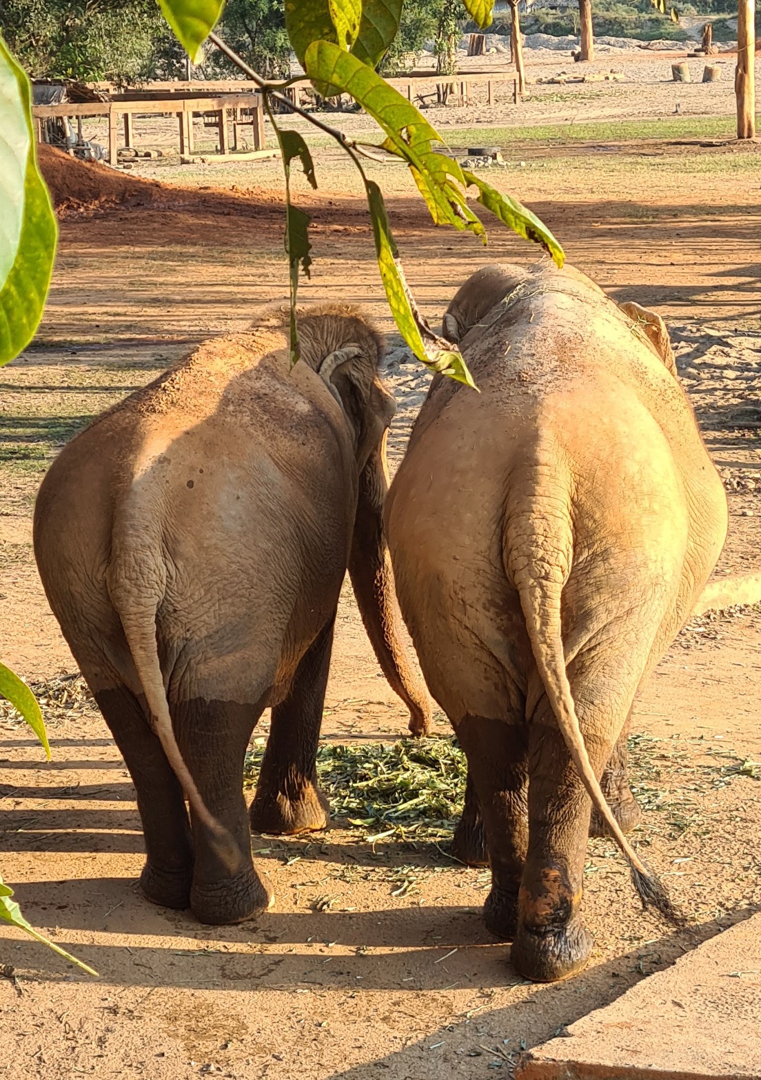Zu Beginn des großartigen Projektes hat Lek ausschließlich alte Elefanten aufgenommen, manche blind oder taub, andere mit schwersten Verletzungen wie offenen Füßen, Brüchen in Beinen oder Hüften durch unbehandelte Verletzungen oder Zwangsdeckung zur Zucht von Nachwuchsarbeitstieren. Inzwischen, insbesondere nach der Pandemie, adoptiert sie auch Elefantenkühe mit ihren Jungtieren, um sie vor einem leidvollen Schicksal zu bewahren oder weil sie von den Eigentümern schlichtweg nicht mehr versorgt werden.
