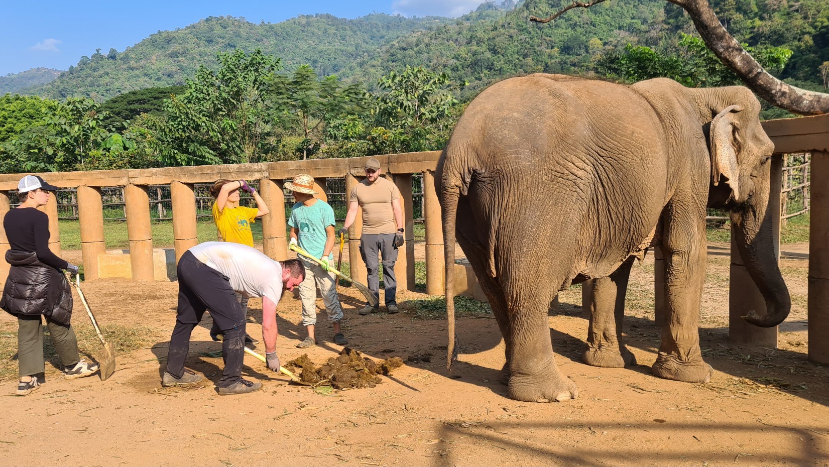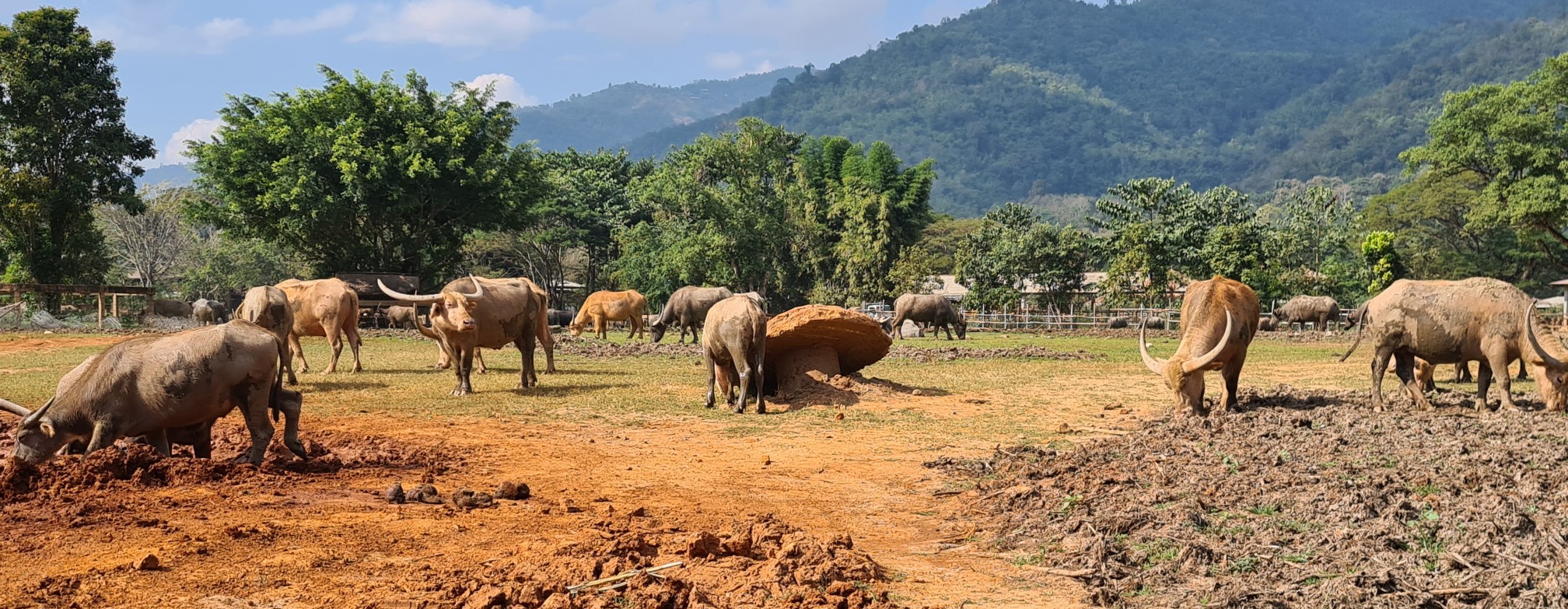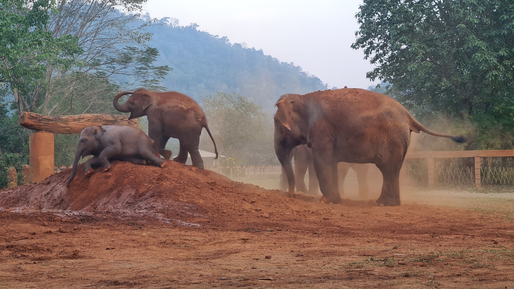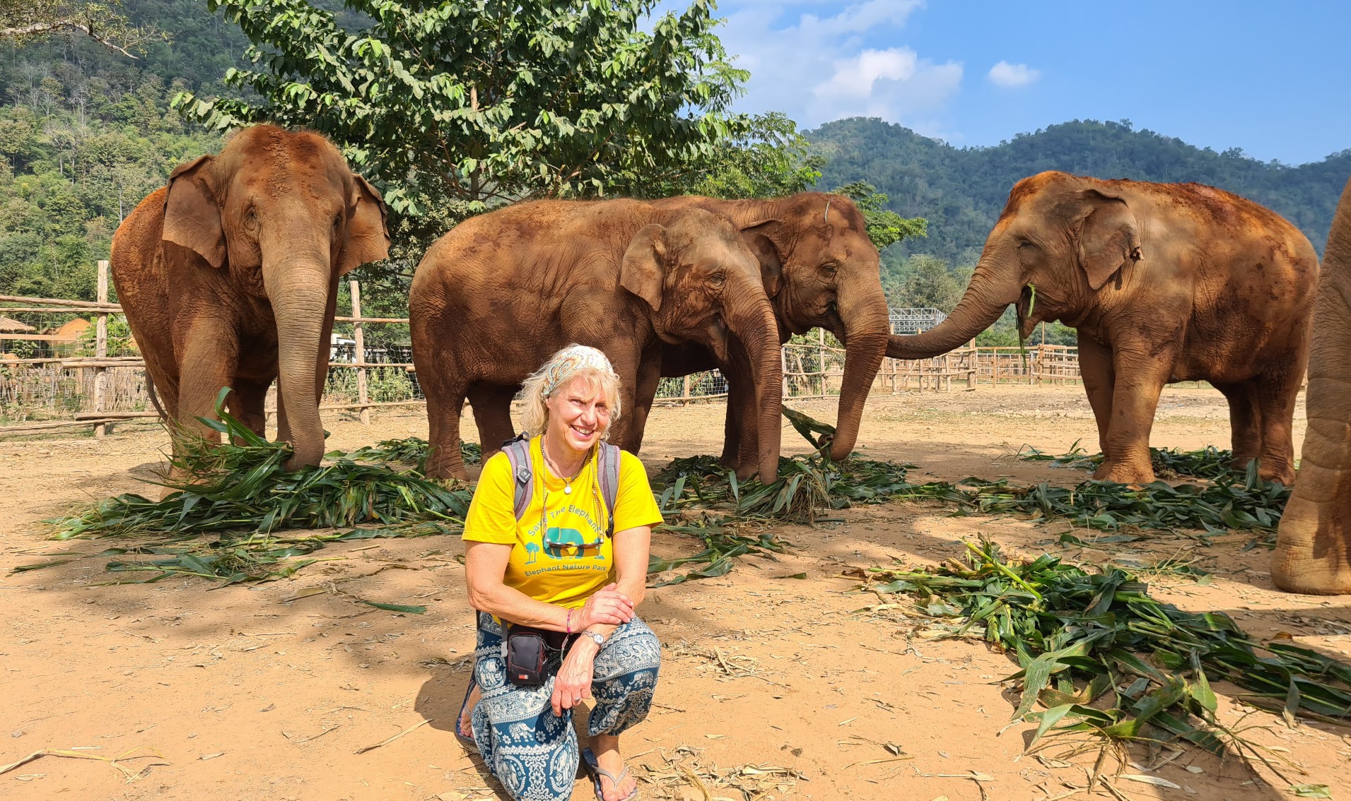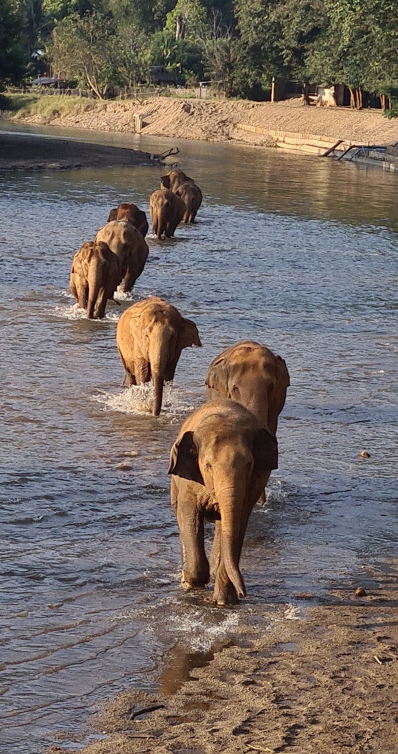 Zu Beginn des großartigen Projektes hat Lek ausschließlich alte Elefanten aufgenommen, manche blind oder taub, andere mit schwersten Verletzungen wie offenen Füßen, Brüchen in Beinen oder Hüften durch unbehandelte Verletzungen oder Zwangsdeckung zur Zucht von Nachwuchsarbeitstieren. Inzwischen, insbesondere nach der Pandemie, adoptiert sie auch Elefantenkühe mit ihren Jungtieren, um sie vor einem leidvollen Schicksal zu bewahren oder weil sie von den Eigentümern schlichtweg nicht mehr versorgt werden.