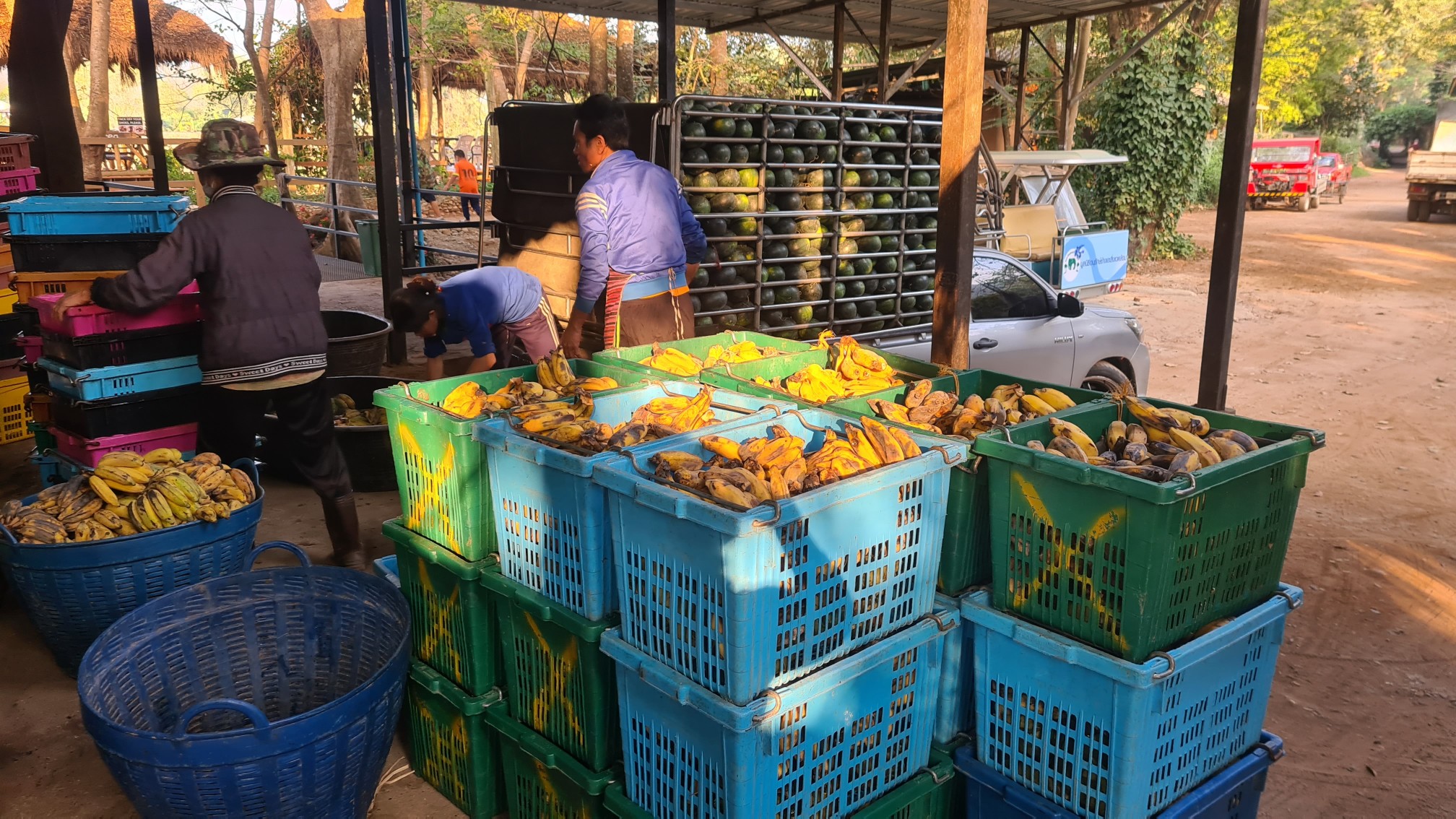 Nach der Registrierung und Restzahlung im ENP-Office in Chiang Mai geht es in Minibussen nach Norden. Eine Stunde später, mit einem kurzen Zwischenstop auf einem lokalen Markt, kommen wir im Elephant Nature Park im Mae Taeng-Tal an. Mir wird eines der ebenerdigen Doppelzimmer zugeteilt: einfach, zweckmäßig, aber alles da, was Frau braucht. Hier liegt schon ein fremder Rucksack, aber von der Trägerin ist weit und breit nichts zu sehen.