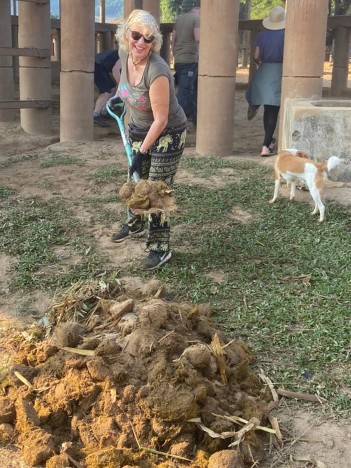 Am Mittwoch steht Poop-Sammeln mit Lom auf unserem Plan. Gegen den gestrigen Job ist das ja fast Entspannung. Manche Mahouts haben ihre Packerl schon zentral gesammelt und wir müssen nur noch aufladen. In anderen Sheltern gehen wir mit Schaufeln und vereinten Kräften zu Werk. Wir haben wirklich ein super Team beisammen. Keiner ist sich für irgendeine Arbeit zu schade oder macht schlapp!