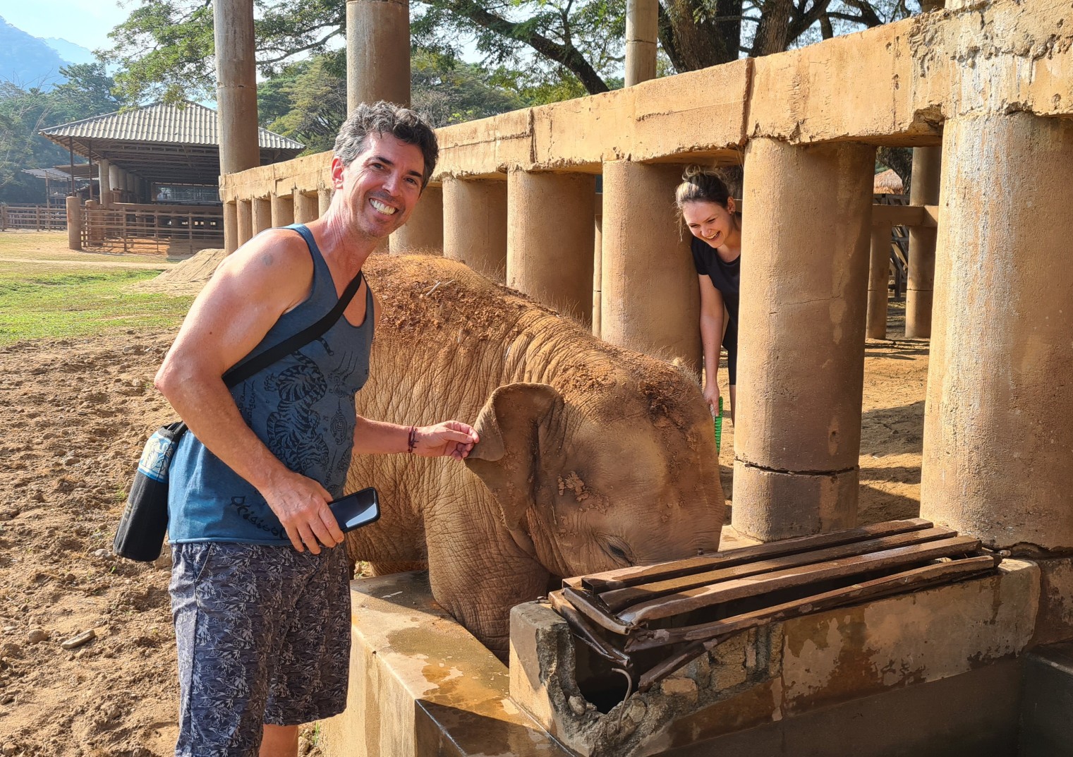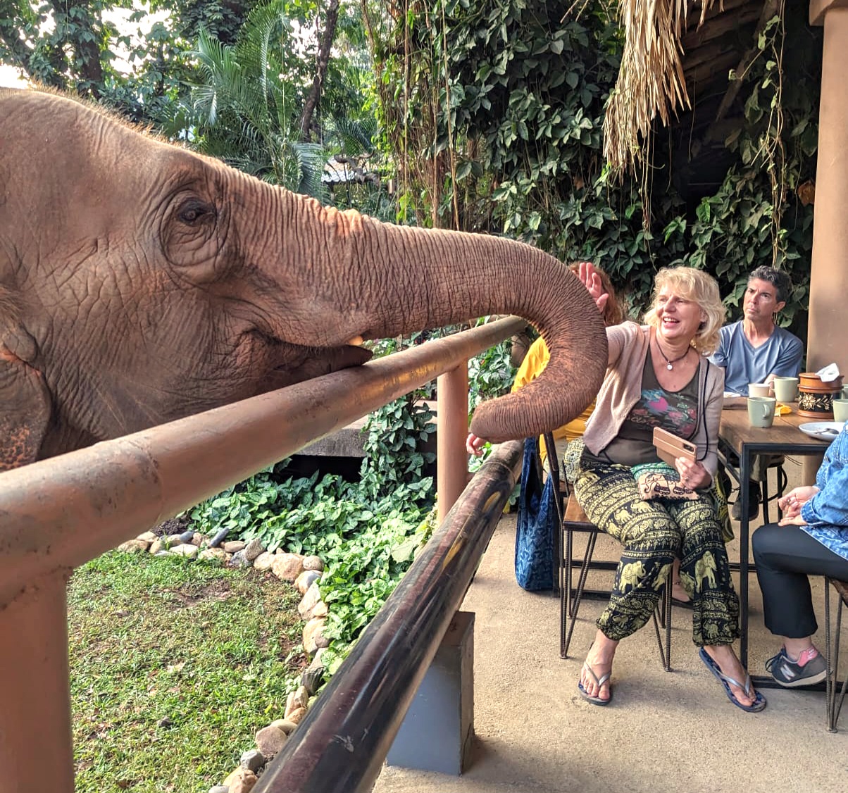 Schon beim ersten Mittagessen habe ich das große Glück auf Lek Chailert zu treffen und bin ganz aus dem Häuschen, nicht ahnend, dass wir während der Woche noch öfter in den Genuss kommen, Zeit mit Lek und ihrem Mann Darrick zu verbringen. Keine Selbstverständlichkeit, wie ich finde, denn die beiden, und insbesondere Lek, sind vielbeschäftigt und weltweit unterwegs, um ihre Projekte zu promoten, Spender und Mäzene aufzutreiben oder auch um wieder einmal einen Elefanten in Not zu retten.
