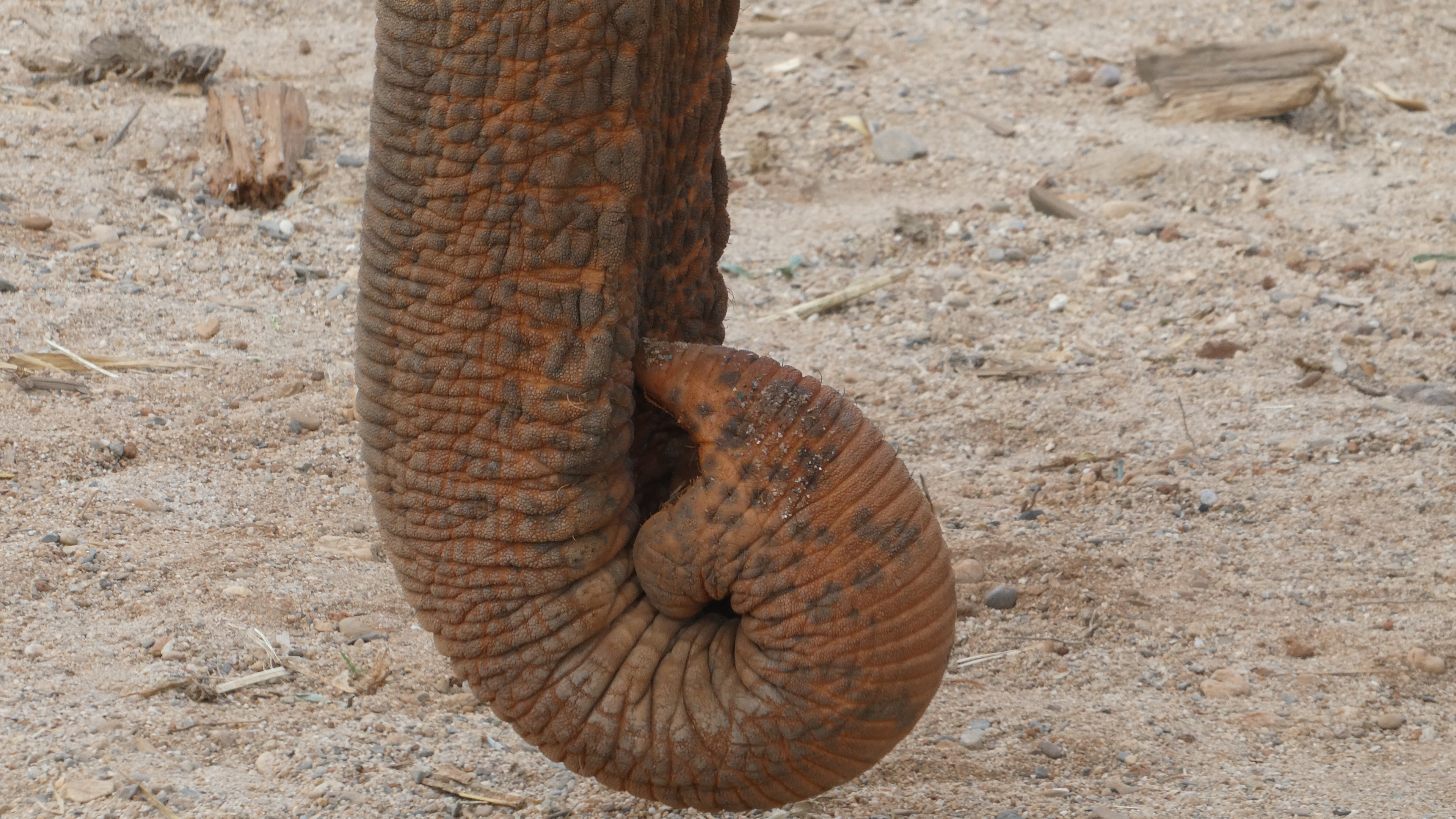 Im Anschluss lädt uns Darrick noch zu einem Elephant Walk insbesonder zu den Bullen im ENP ein, die wegen der unregelmäßig auftretenden Musth, in der ein Elefantenbulle 40-60 mal mehr Testosteron produziert und völlig unberechenbar agiert, separat untergebracht sind.