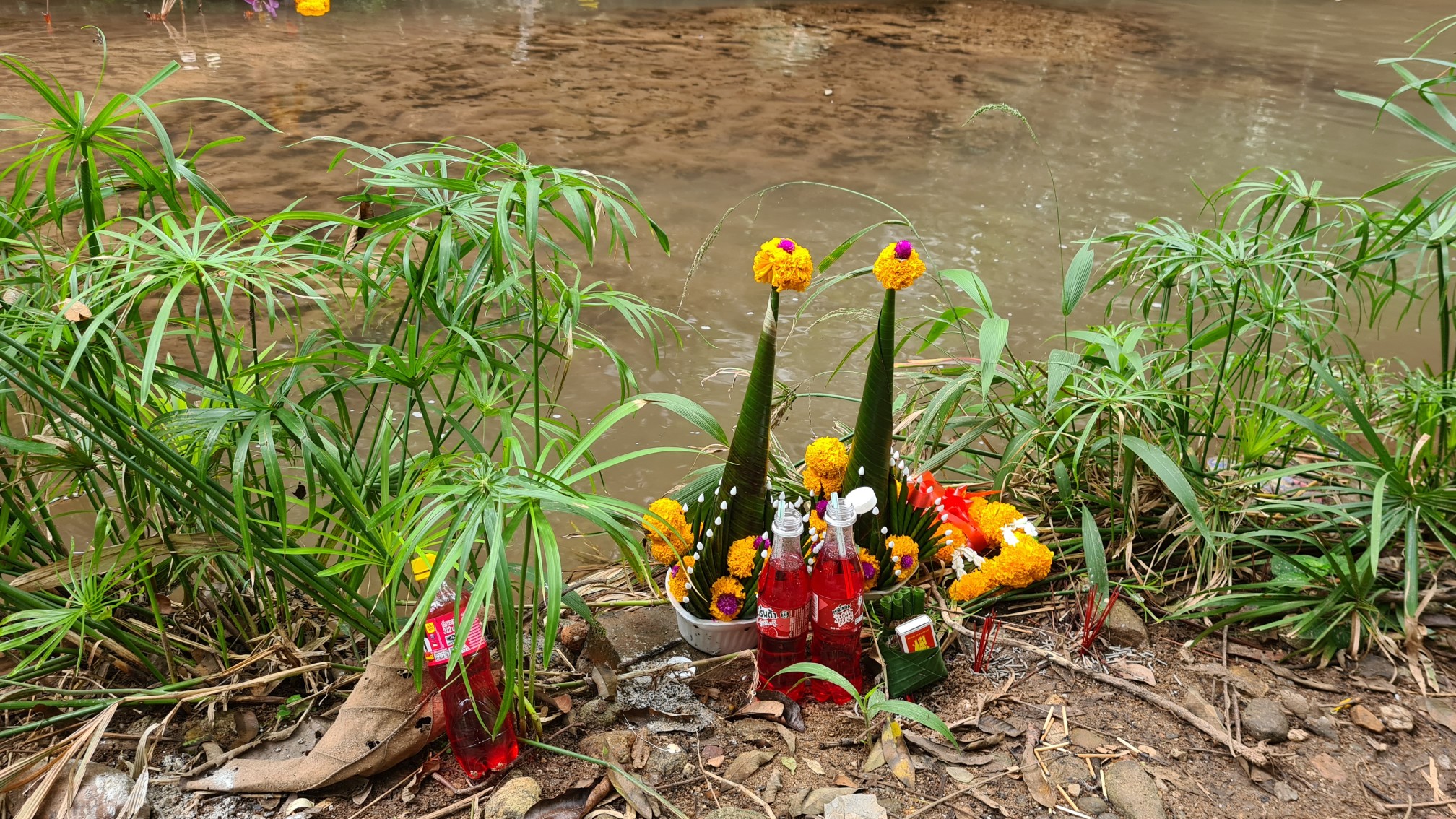 Nach dem Duschen und Packen verbringe ich den Abend relativ unmotiviert bei einer Abschiedsrunde durch den mir immer noch fremd gebliebenen Altstadtkern Chiang Mais, wo ich (zum ersten Mal auf dieser Reise) meine Lesebrille verliere und nach einer halben Stunde Suche zum Glück wieder unter dem vorher fotografierten Blumenmotiv finde, etwas für mich Essbares auf dem Streetfood-Market vor der Haustür zu mir nehme und anstatt der erhofften Pina Colada in der gegenüberliegenden Skybar dann doch mit einem läppischen Chang Beer vorlieb nehmen muss.