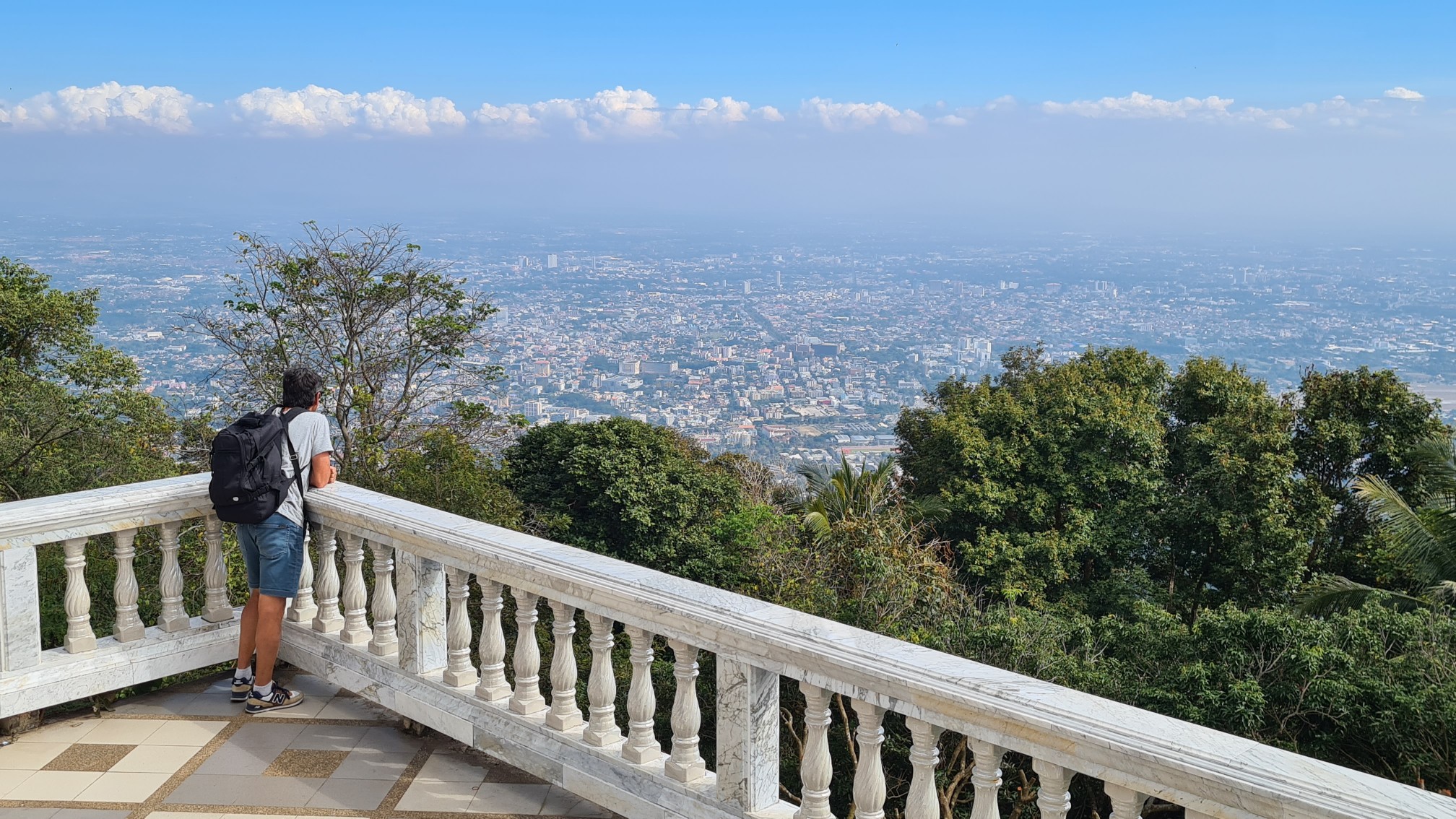 Nach einem letzten Blick von oben auf Chiang Mai mache ich mich mit einem Gefährt aus der wartenden roten Songthaew-Schlange auf den Rückweg zum Hostel. Auf der Pritsche erfahre ich von einer weitgereisten Thai-Familie, dass es tatsächlich keine Auto-Taxis in Chiang Mai gibt und ich ab der „Haltestelle University“ dann in ein Songthaew entlang meiner Hostel-Straße springen muss.