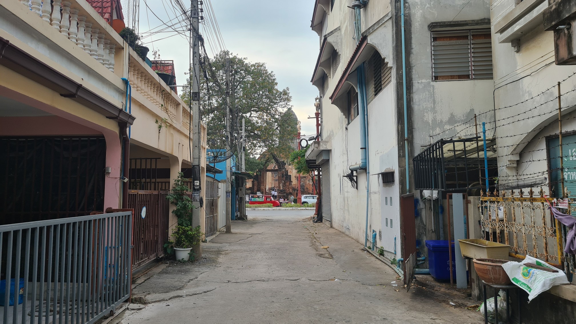 Nachdem der Historical Park erst um 8 Uhr öffnet, fasse ich noch einen Besuch des Floating Markets von Ayutthaya ins Auge. Das Fahren auf den belebten, breiten Straßen ist an einem Werktag schon fast lebensmüde. Ich habe das Gefühl, dass weder Straßenregeln noch Ampeln hier irgendeine Rolle spielen. Entgegenkommende Mopeds, freilaufende, aggressive Hunde, Fußgänger und Radfahrer teilen sich den neben den Autos verbleibenden Straßengraben – oft genug auch gegen die Fahrtrichtung. Nach mehreren Blicken auf Maps.me und Google Maps stelle ich fest, dass es auf dem Weg Richtung Floating Market tatsächlich nur eine einzige Brücke über den Pa Sak Fluss gibt. Die vier Spuren derselbigen sind bis zum Brückengeländer mit Autos und Motorrädern gefüllt, die jetzt in der Rush-Hour ohne Rücksicht auf Verluste hinüber und herüber rasen – kein sicherer Rad- oder Fußgängerweg weit und breit. Das ist mir dann doch zu heavy. Kurzerhand wird der Floating Market, von dem ich noch nicht einmal weiß, ob er tatsächlich offen ist, von meiner Wunschliste gestrichen. Ich kehre um, passe mich an und fahre ebenfalls gegen den Linksverkehr und frei Schnauze zurück zum Zentrum. Höchste Konzentration ist gefragt, auch wenn man auf der vermeintlich für Radfahrer reservierten grünen Lane todesmutig durch den riesigen Kreisverkehr braust.