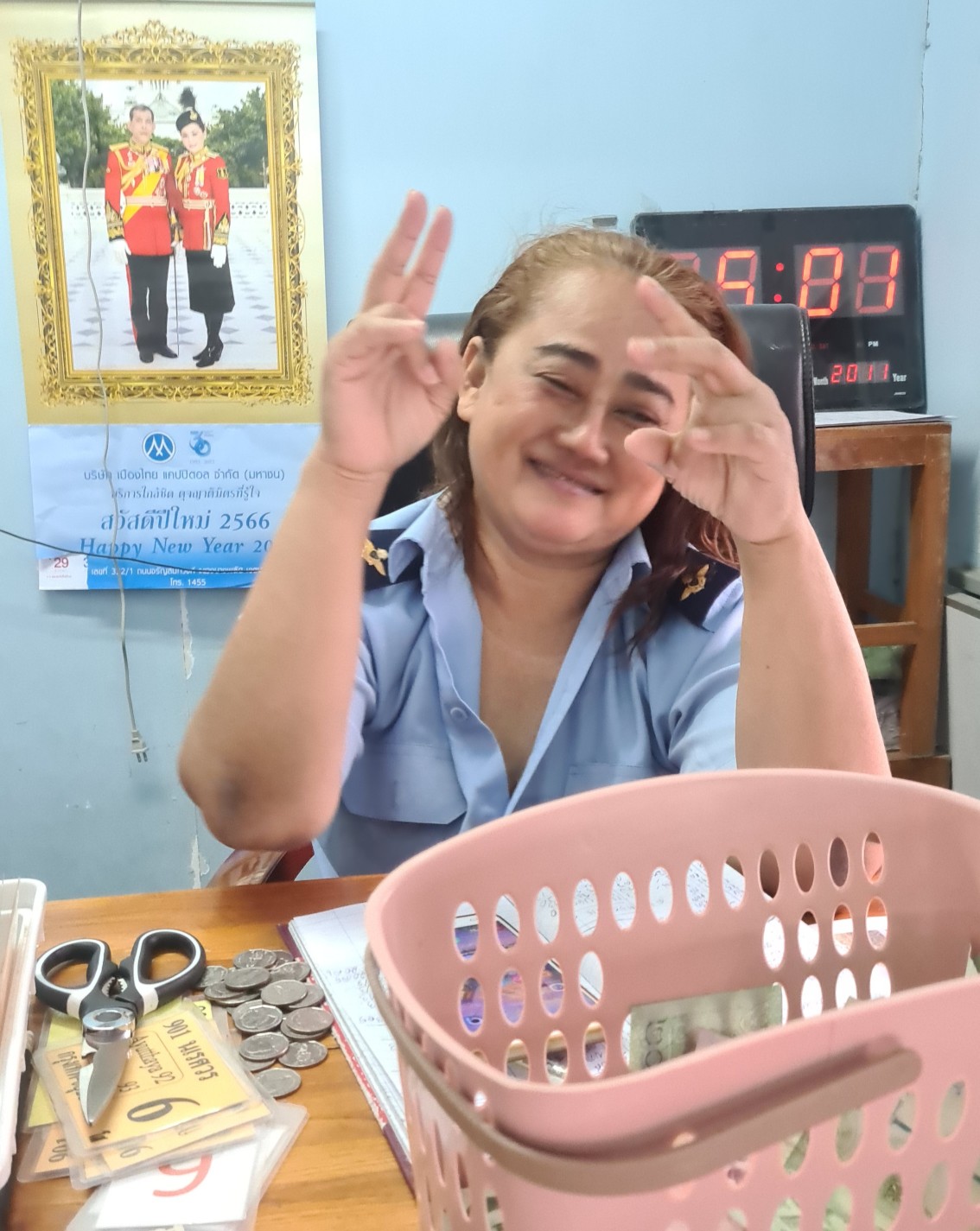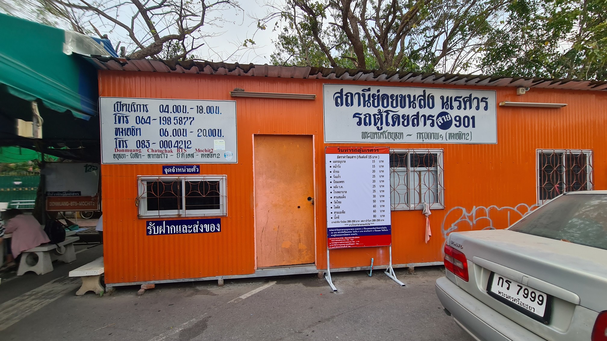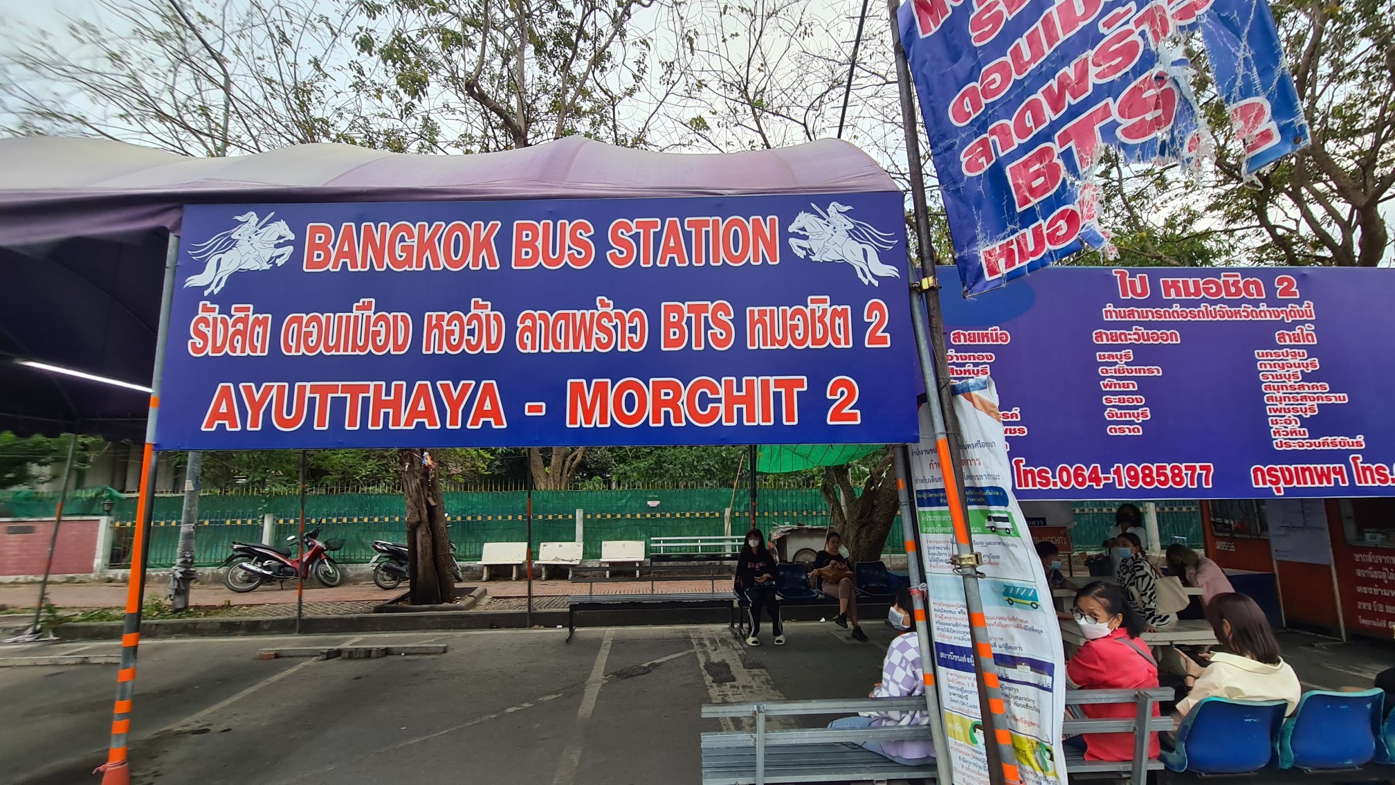 Das trifft dann auch gut mit meinen weiteren Reiseplänen zusammen, die für die Region Kanchanaburi im Westen von Thailand ja noch sehr vage und zeitlich eng gesteckt sind. Also steuere ich noch am frühen Abend die zentrale Busstation von Alt-Ayutthaya an, um mein Ticket nach Bangkok zu lösen. Die Werbebanner der Minibus-Unternehmen sind riesig, die Unterbringung der Schalter in Containern wirkt provisorisch, Detailinformationen in Thai sind für mich nicht zu entziffern und der Wortschatz in Englisch natürlich gleich Null. Mit Händen und Füßen verständige ich mich mit der zuerst etwas faden, dann aber doch lustigen, uniformierten Dame am Schalter. Sie „bucht“ mich für den ersten Minibus zur Mochit MiniVan Station in Bangkok morgen früh um 5 Uhr ein, kassiert 140 Baht für mich und mein Backpack und verabschiedet mich. Verdutzt frage ich nach einem Ticket oder einem Beleg, woraufhin sie mir mit viel Gelächter und Gescherze einen handgeschriebenen Schmierzettel über den Tresen schiebt. Natürlich kann ich außer den Zahlen darauf nichts lesen. Sei’s drum, wird schon schief gehen.