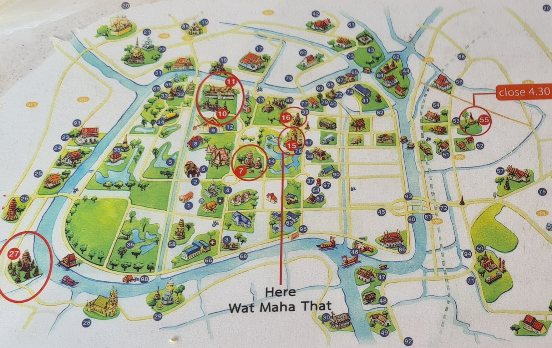 Am Sonntag, den 08.01.2023 ist wieder einmal Reisetag: Es geht mit einem komfortablen Direktbus von der alten Königsstadt Sukhothai zu der nächsten Königsstadt Ayutthaya, die nur 80 km nördlich von Bangkok liegt und deshalb natürlich viel häufiger auf dem Besuchsprogramm von Reisenden und Tagesausflüglern steht, als das doch relativ ruhige Sukhothai, das 450 km weiter nördlich liegt. Hatte ich übrigens schon erwähnt, dass Thailand von Nord nach Süd eine Ausdehnung von 1.700 km hat?!