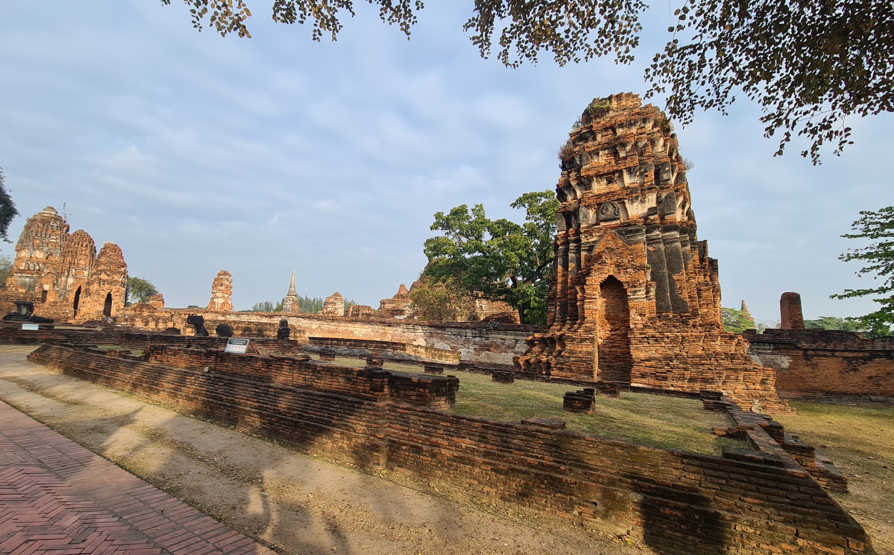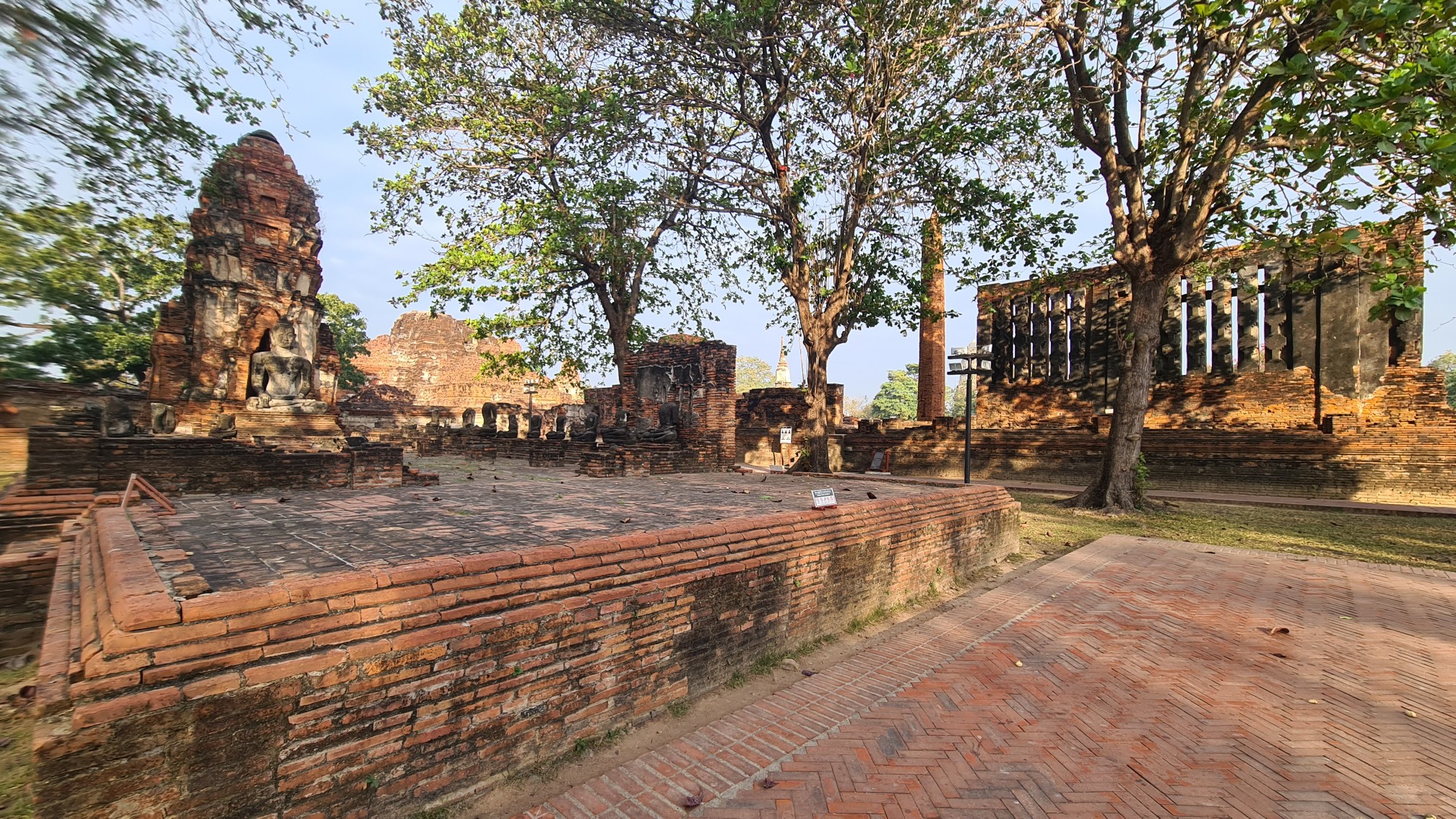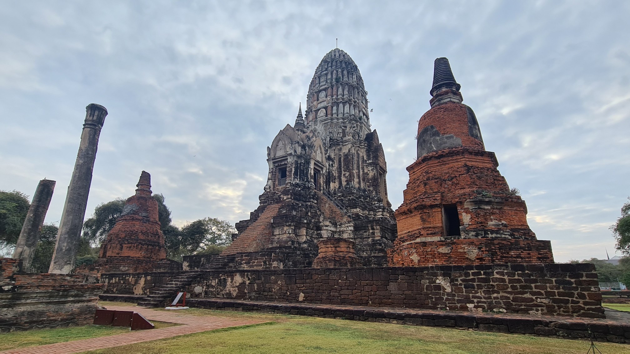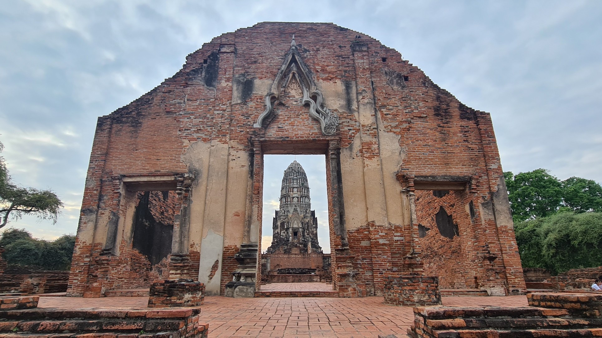Zu guter Letzt statte ich noch dem eher ruhigen und abgelegenen Wat Phutthaisawan einen Besuch ab. Ich erklimme den großen, weißen Prang und und beim Betreten des düsteren, geheimnisvollen Gebetsraumes oben im Turm überkommt mich ein gewisses Indiana Jones-Feeling.