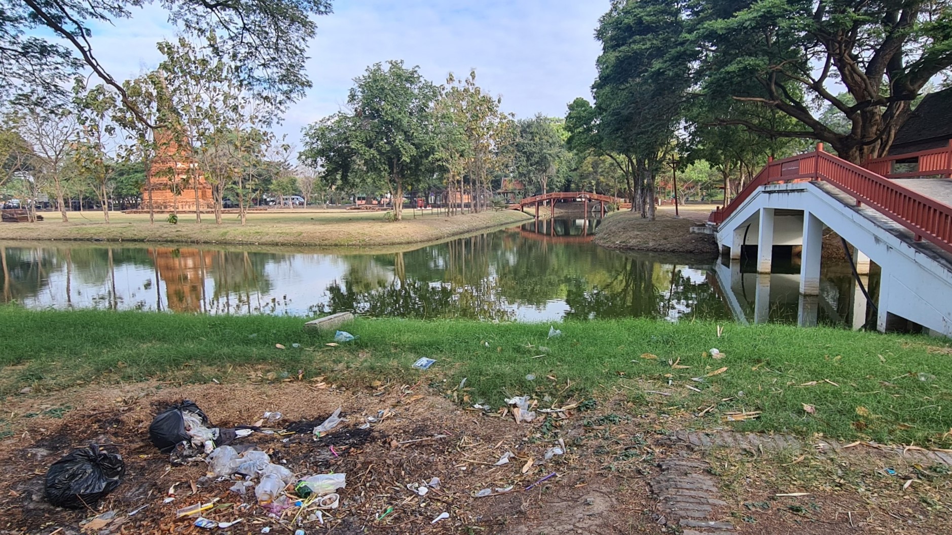 Mit diesem Schnappschuss im Kasten sattle ich wieder mein Radl in der Absicht, die weitläufige Anlage ähnlich stimmungsvoll und entspannt wie in Sukhothai zu erkunden. Aber bereits nach wenigen Metern vorbei an den ersten Teichen und Wasserläufen holt mich die „dreckige“ Realität ein. Das einzige Wort, das mir während der nächsten Stunden meiner Tour durch den Kopf geht, ist: Disgusting!!!