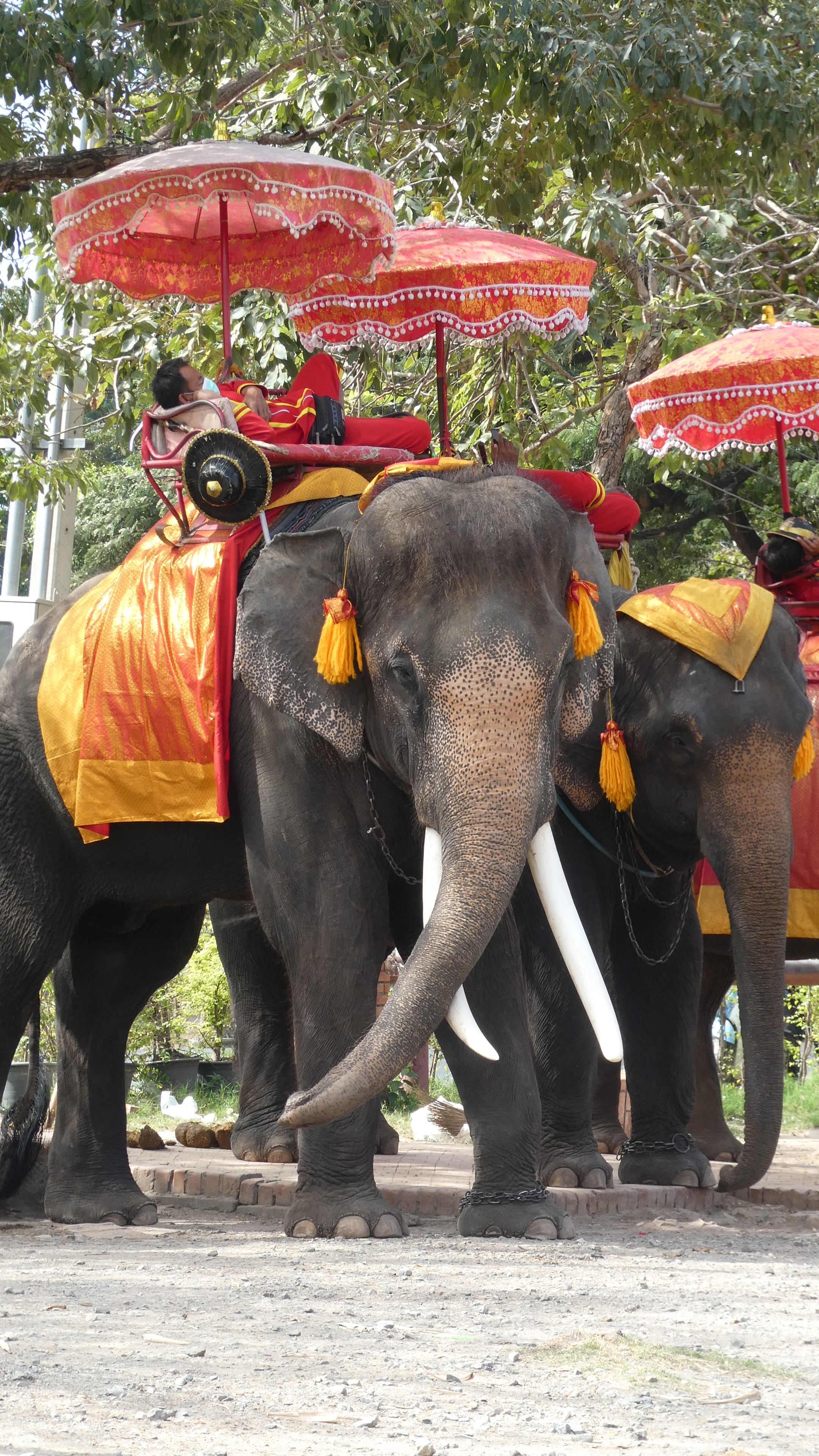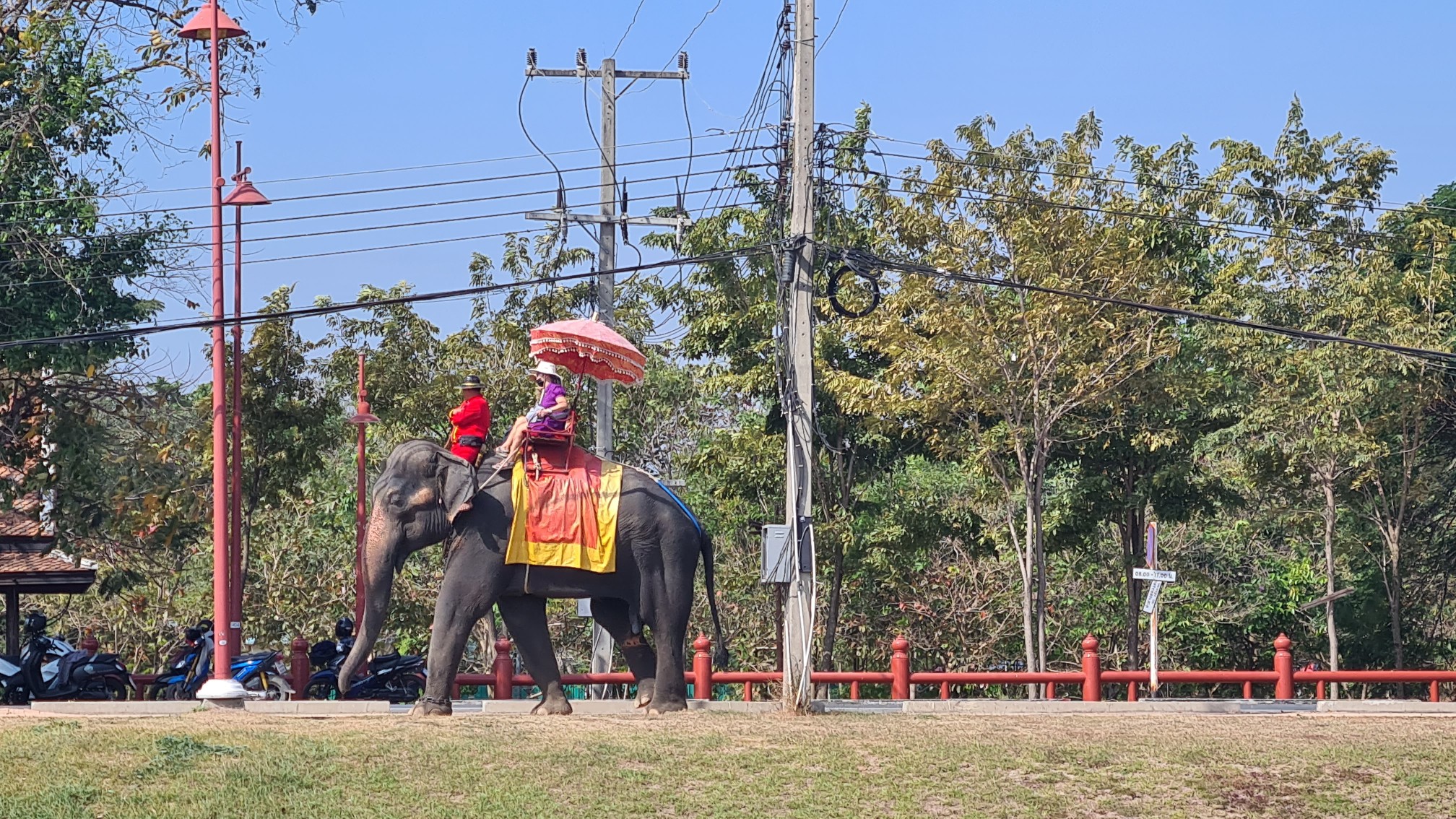 Schon beim ersten Erkundungsgang stelle ich fest, dass die Atmosphäre und das Flair von Ayutthaya bei Weitem nicht an das zuvor besichtigte Sukhothai heranreicht. Zu nahe an der Metropole Bangkok und eher für eilig durchgeschleuste Busreisegruppen und Tagestouristen konzipiert, wirkt die Umgebung des Historical Parks sehr großstädtisch und unpersönlich. Die sogenannte Altstadt mit ihren breiten, verkehrsbelasteten Straßen wird rundum von einem Fluss- und Kanalsystem dreier Flüsse eingefasst, liegt also wie eine Insel da und ist – wie ich später noch feststellen werde – nur über sehr wenige Brücken zu erreichen. Spätestens als die Lastwagen mit den Reitelefanten auf der Ladefläche und den kostümierten Mahouts mit Haken im Genick sitzend an mir vorbeifahren, steht für mich fest: Hier bleibe ich nicht länger als nötig.