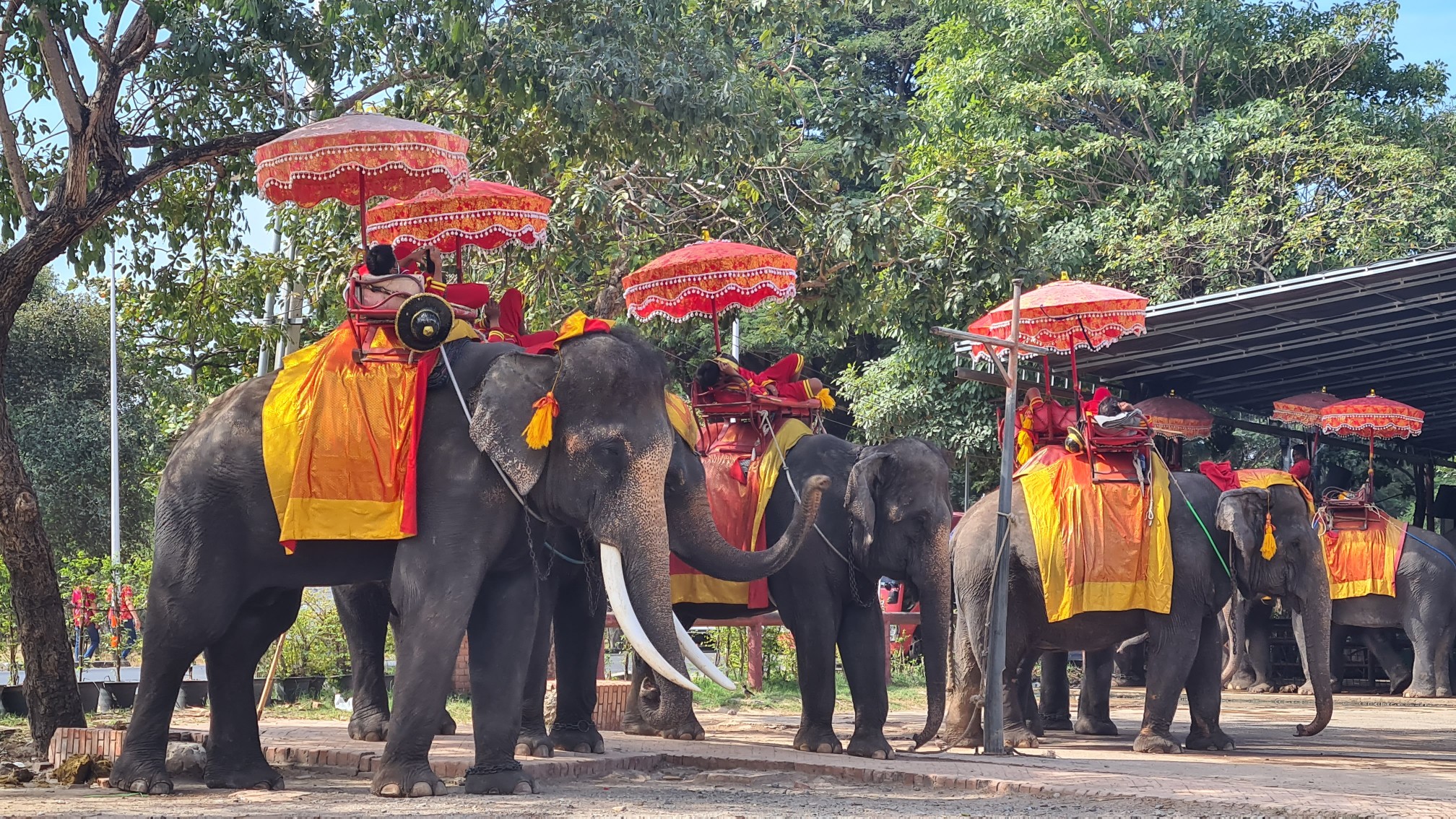 Der viele Müll sollte nämlich nicht das Einzige bleiben, was ich absolut „disgusting“ fand. Auch 2023 werden in Ayutthaya noch immer touristisches Elefantenreiten und Elefanten-Circus-Shows angeboten und vorzugsweise von chinesischen Touristen mit Begeisterung und ohne einen Gedanken an die damit begangene Tierquälerei gebucht. Beim Elephant Palace & Royal Kraal verrichten die Tiere ihren Arbeitsalltag, warten in brütender Hitze stundenlang auf „Passagiere“, die sie dann auf Gehwegen entlang der belebten Straßen oder sogar direkt auf dem Asphalt der Hauptverkehrsadern rund um die alten Gemäuer der Königsstadt tragen, bevor sie nach einem langen Tag um 18 Uhr auf LKWs zu ihrer Unterkunft für die Nacht gekarrt werden. Von Natur aus balancieren Elefanten weder auf zwei Beinen, noch fahren sie Rad oder malen Bilder. Sie lernen das auch nicht im Gegenzug zu Leckerlies, nein, ihre Lernmethode ist das Brechen des eigenen Willens durch Zufügung von unsäglichem Schmerz mit Haken, Nägeln, Schlägen und Ketten. Noch immer werden Babys ihren Müttern entrissen und für die Holz- und Tourismusindustrie gefügig gemacht, noch immer werden die Tiere in würdelosen Unterkünften gehalten, wo sie ständig angekettet auf Betonböden in ihrem eigenen Kot und Urin verharren, ohne Zugang zu Nahrung und Wasser zu haben. Unzählige Elefanten sind unterernährt, verhaltensgestört, blind, haben schwerwiegende Verletzungen an Wirbelsäule, Hüfte (oft durch gewaltsame Begattung), Beinen und Füßen. Und die Priesterschaft der Mönche segnet dieses unwürdige Tun auch noch ab.