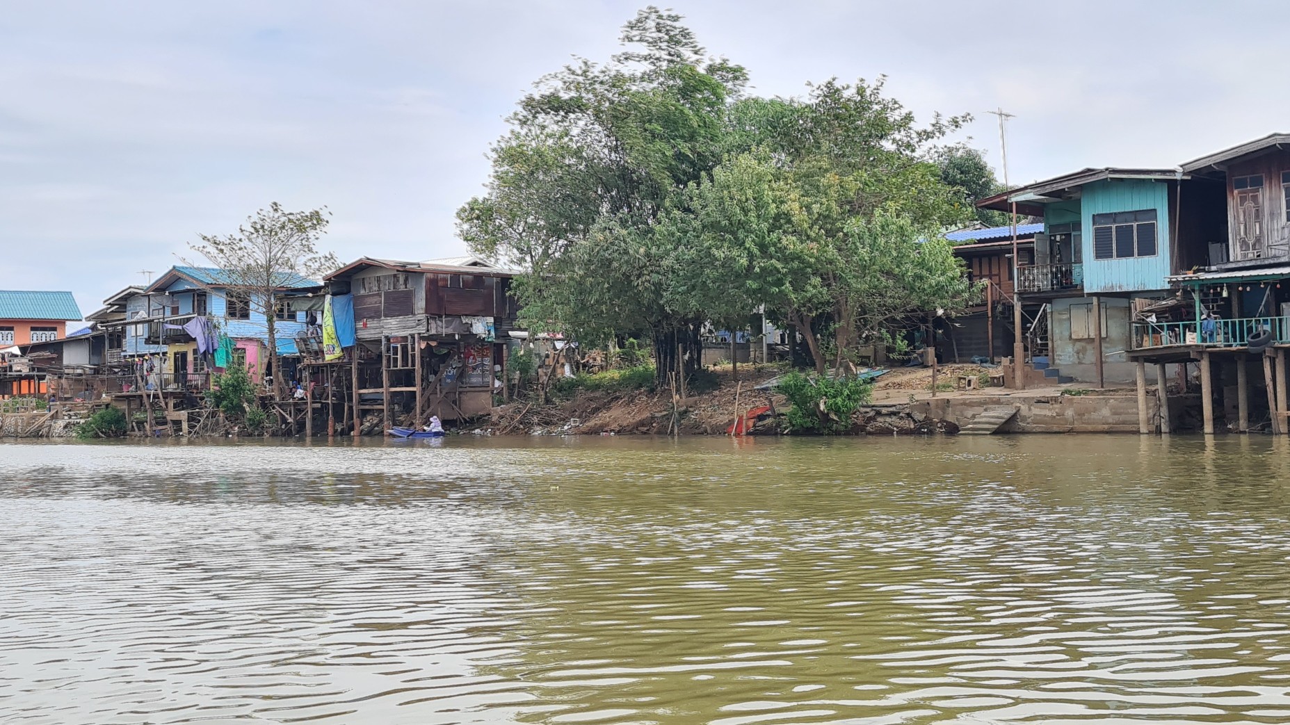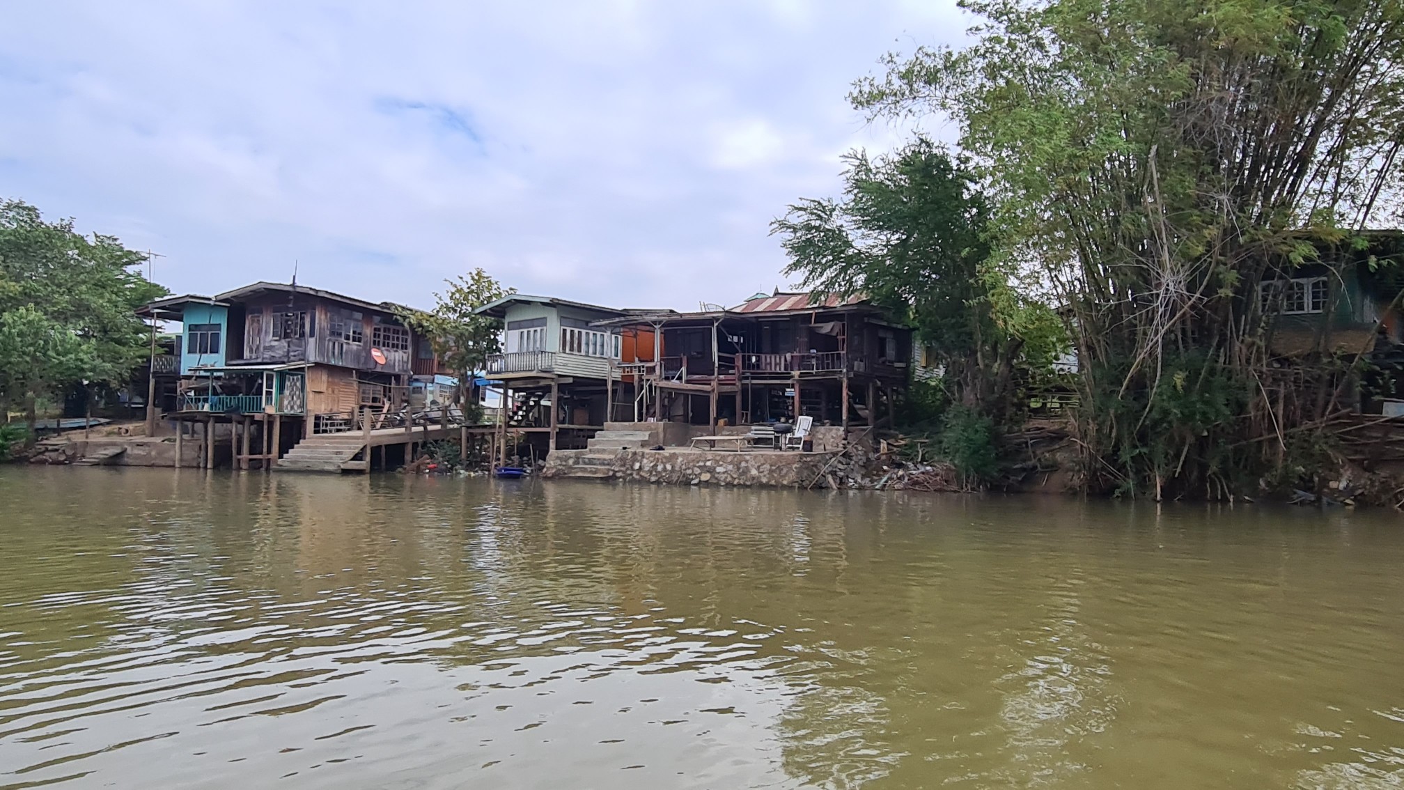 Zumindest mir ist die „mystische“ Stimmung genommen. Nach dem Besuch der Wats Phra Si Sanphet und Phra Ram mit ihren Prangs und Chedis im Stile der Khmer und der großen Tempelhalle des Wat Mahathat Ratchaburana, verlasse ich das Zentrum über eine der wenigen Brücken, um gegebenenfalls in ruhigeren und weniger vermüllten Gefilden auf Besichtigung zu gehen.