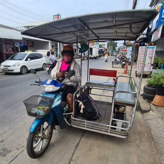 Für alles gibt es ein erstes Mal. Nachdem ich in Thailand ja zumindest schon urbane Radfahrerfahrungen sammeln konnte und es ein Car Leasing mit guten Rezensionen am westlichen Stadtrand gibt, von woaus ich ziemlich zügig in ländlichere Regionen komme, ist die Entscheidung gefallen. Ich sattle meine Backpacks und lasse mich von einem der hier üblichen Tuk-Tuks zu Kanchanaburi Rental Cars an der Ecke River Kwai Road / Sri Lanka Road fahren.