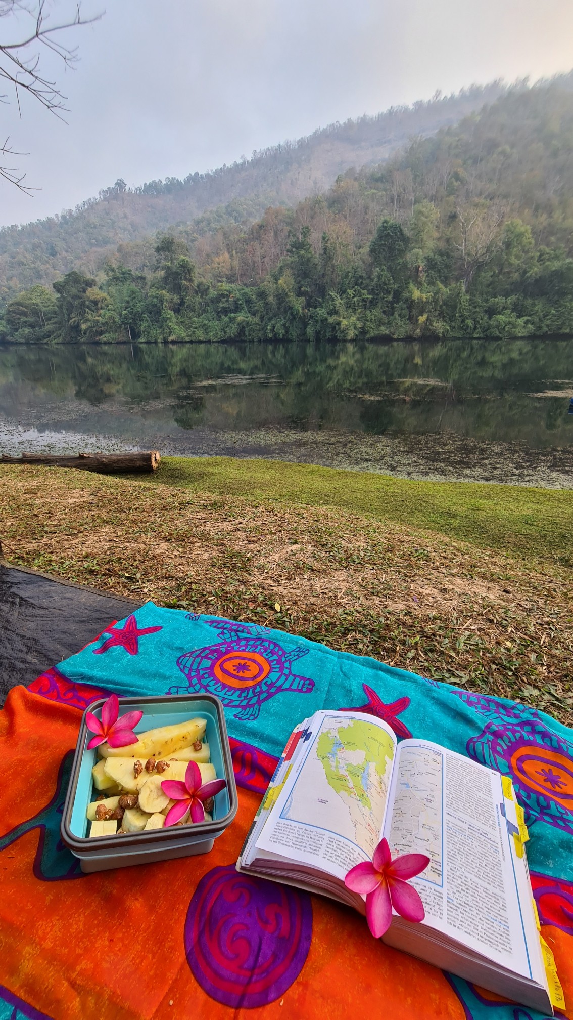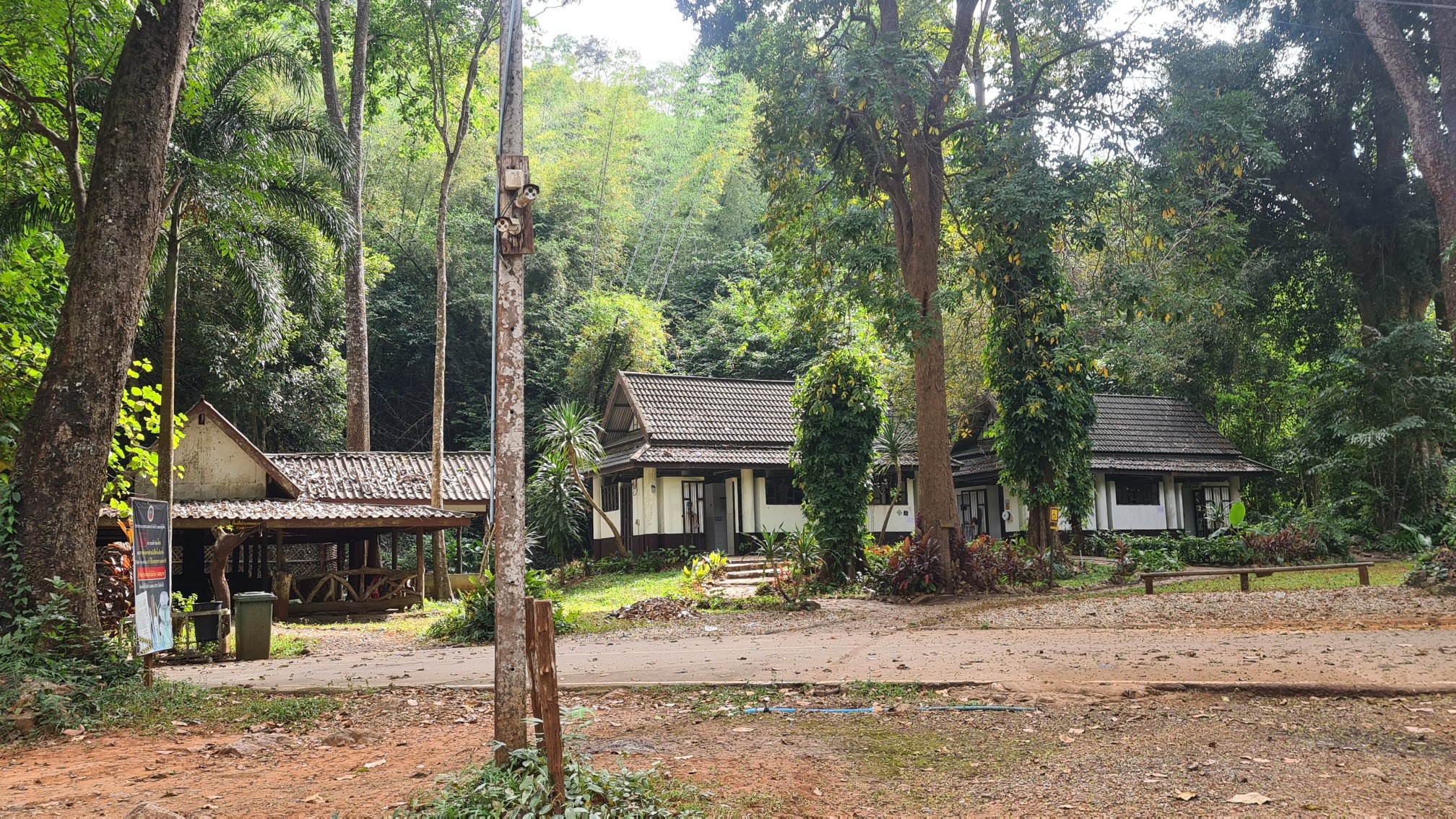 Gemächlich tuckere ich so vor mich hin und brauche für die 1,5-stündige Fahrt schlussendlich 2,5 Stunden. Aber ich bin ja im Urlaub. Im Vorbeifahren kaufe ich in den Dörfern noch etwas Proviant für den Abend ein. Am Head-Office des Parks angekommen, freuen sich die Dame und der Ranger wie kleine Kinder, dass ich als ausländische Touristin zu ihnen gefunden habe. Redselig und überschwänglich kassiert sie die 200 Baht NP-Eintritt und nochmal 285 Baht (7,50 €) für Zelt, Isomatte, Kissen und Schlafsack. Dass es in der Nacht so kalt werden soll, ist für mich gerade nicht vorstellbar. Das Restaurant vor Ort hat heute geschlossene Gesellschaft oder ist generell noch nicht geöffnet – so genau habe ich das nicht verstanden, Gut, dass es die Bananen am Marktstand nicht einzeln, sondern nur als Staude gab. Übrigens ist Alkohol, auch das Mitbringen, in den thailändischen Nationalparks generell verboten.