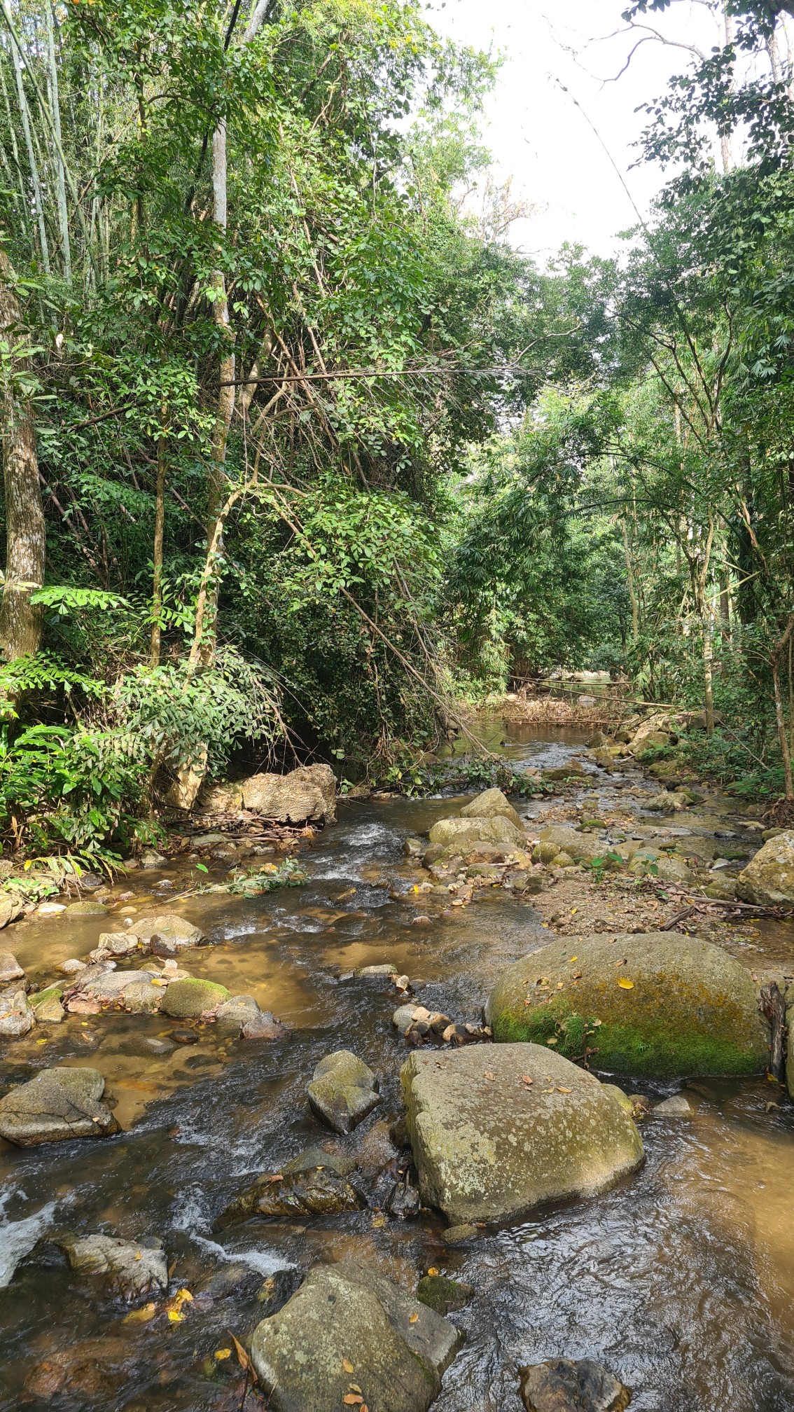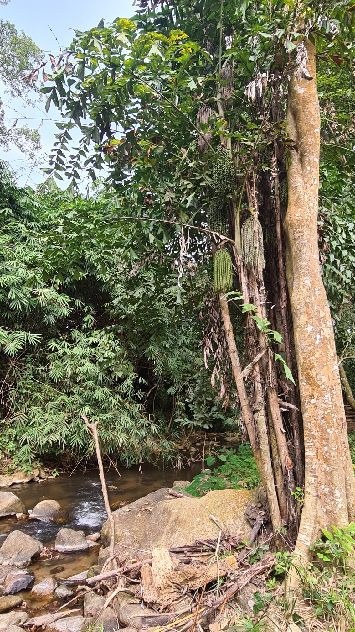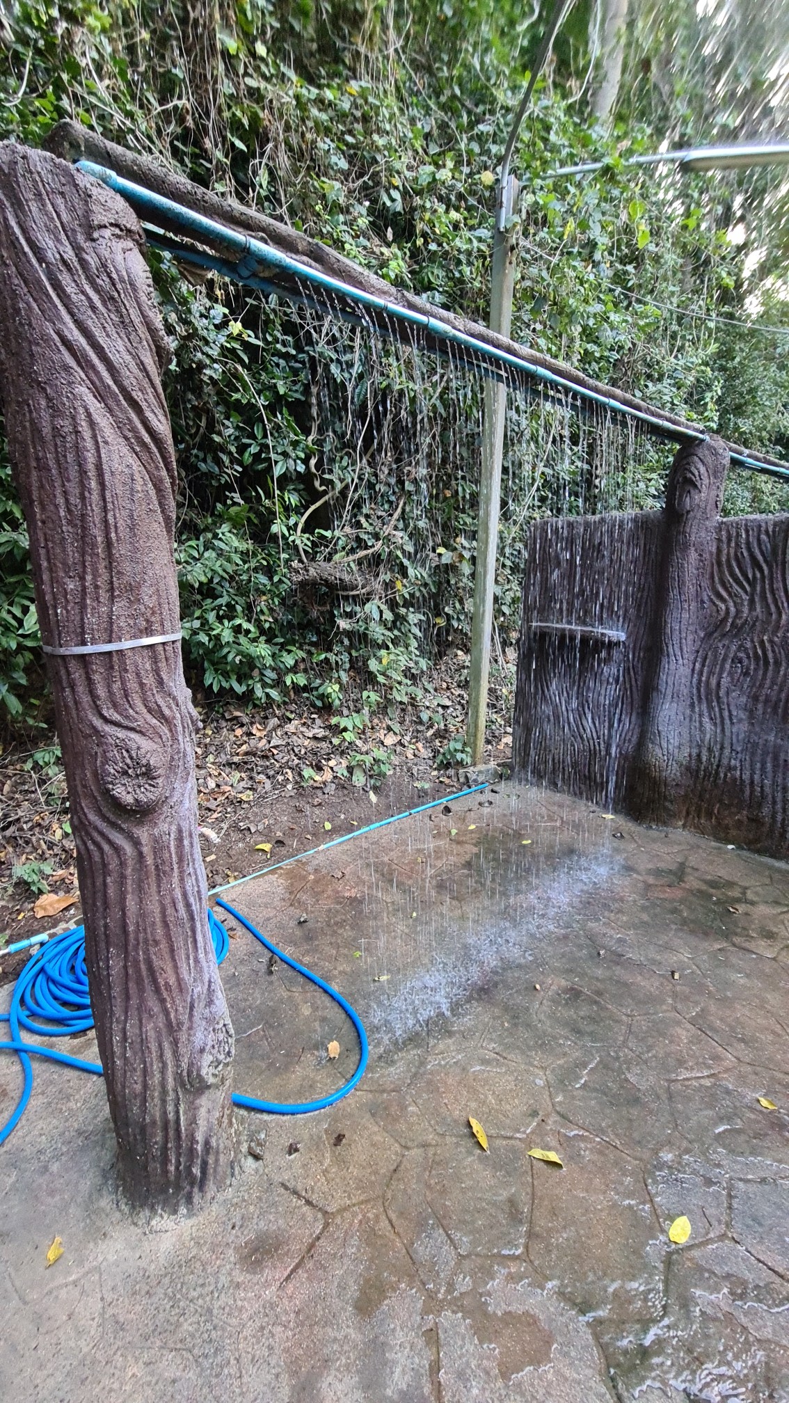Die Sanitäranlagen sind vorbildlich und mal richtig cool finde ich die DIY-Outdoor-Regendusche: So eine simple Konstruktion und es macht so viel Spaß hier zu duschen!! Am frühen Abend erkunde ich noch ein bisschen Flora und Fauna rund um den Campingplatz und latsche vor zum Head-Office, um in einer der Garküchen noch etwas Warmes zu essen und einen Mango Sticky Rice fürs Frühstück zu kaufen. Glück gehabt, denn die Shops am Parkeingang schließen zwischen 18-19 Uhr, wenn die Tagesbesucher alle weg sind. Dann hätte ich mit dem Auto bis zur Ortschaft fahren … oder hungern müssen.