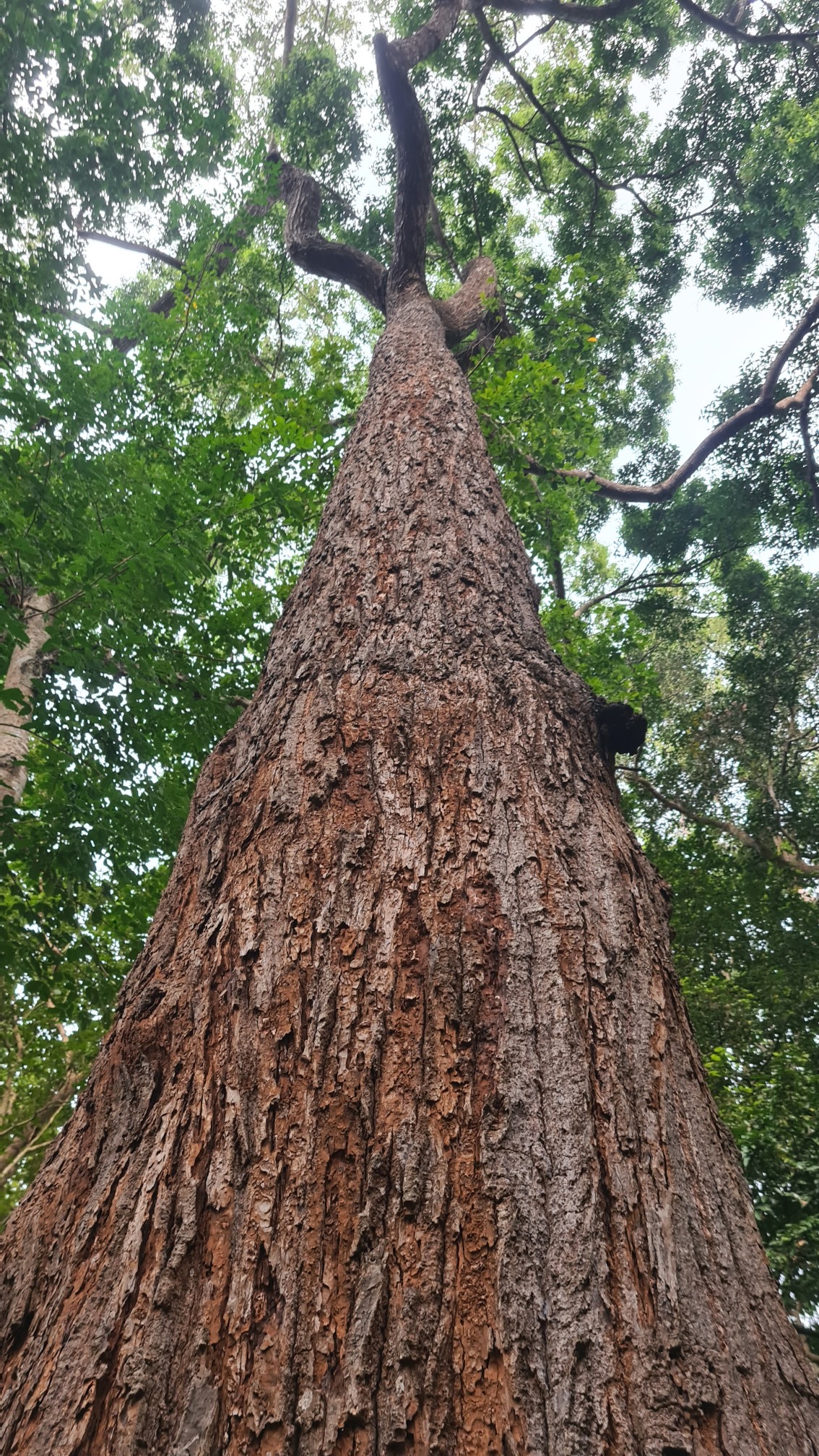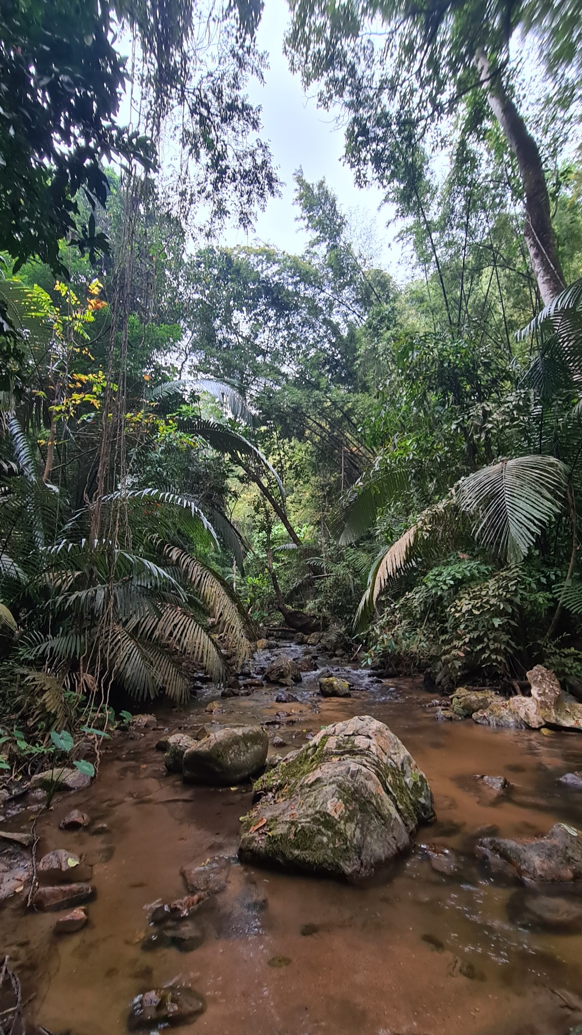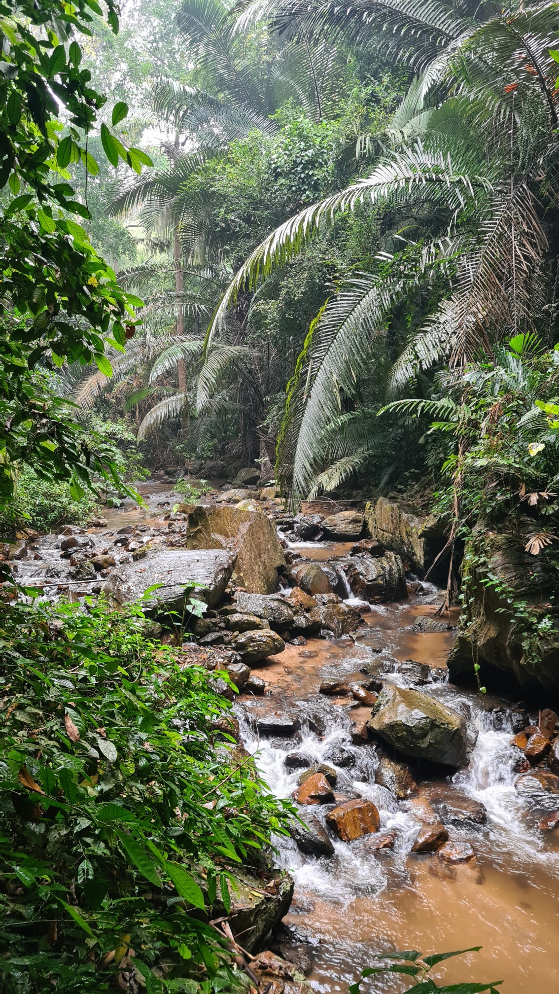 Am hinteren Ende tritt man dann hinaus in eine wilde Dschungelhölle mit Trampelpfad. Es hat leicht angefangen zu regnen, aber das macht auf diesem Trail im Regenwald nicht wirklich viel aus. Ich genieße meine Wanderung, lausche den Geräuschen und begutachte Pflanzen und Bäume.