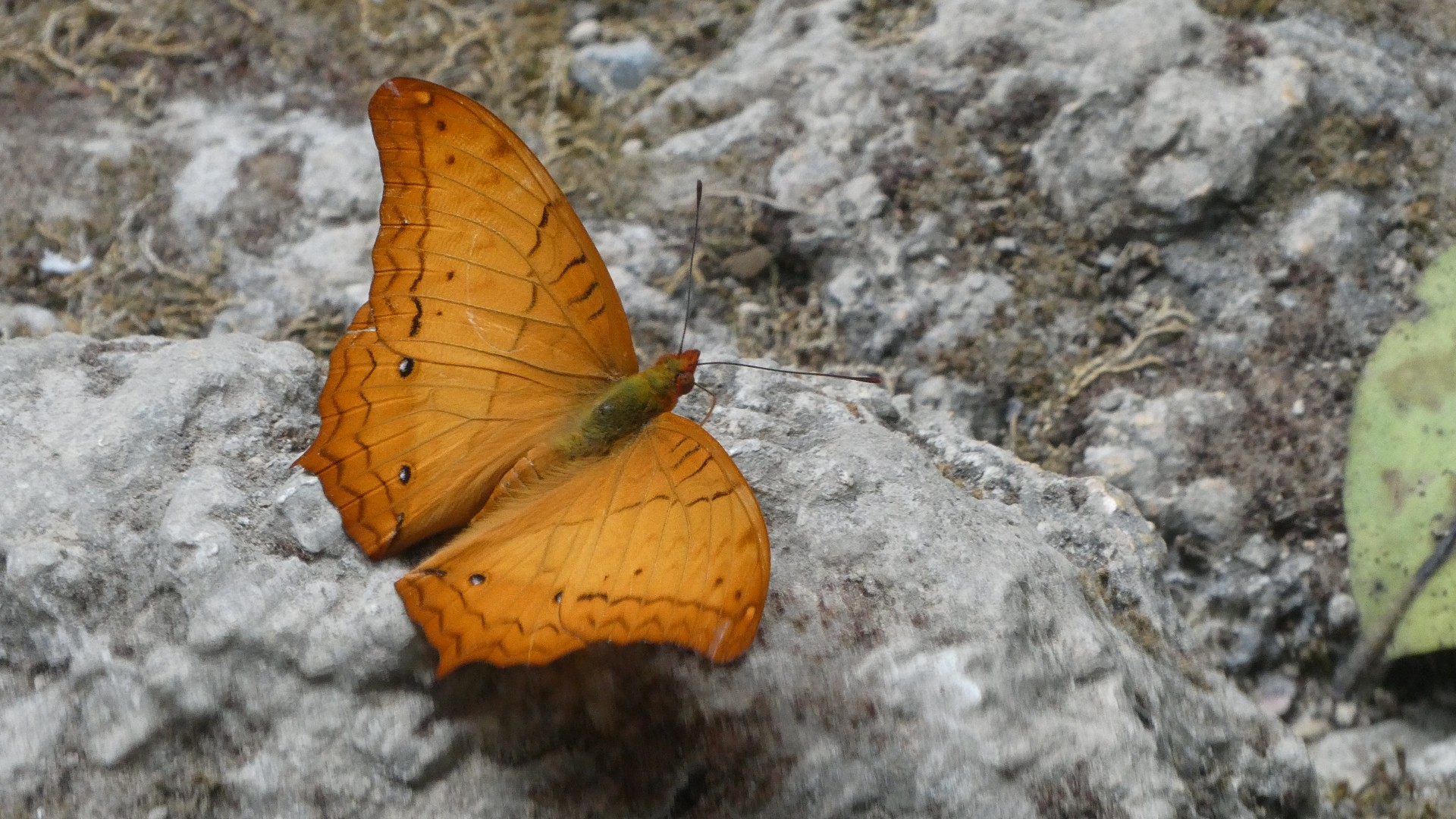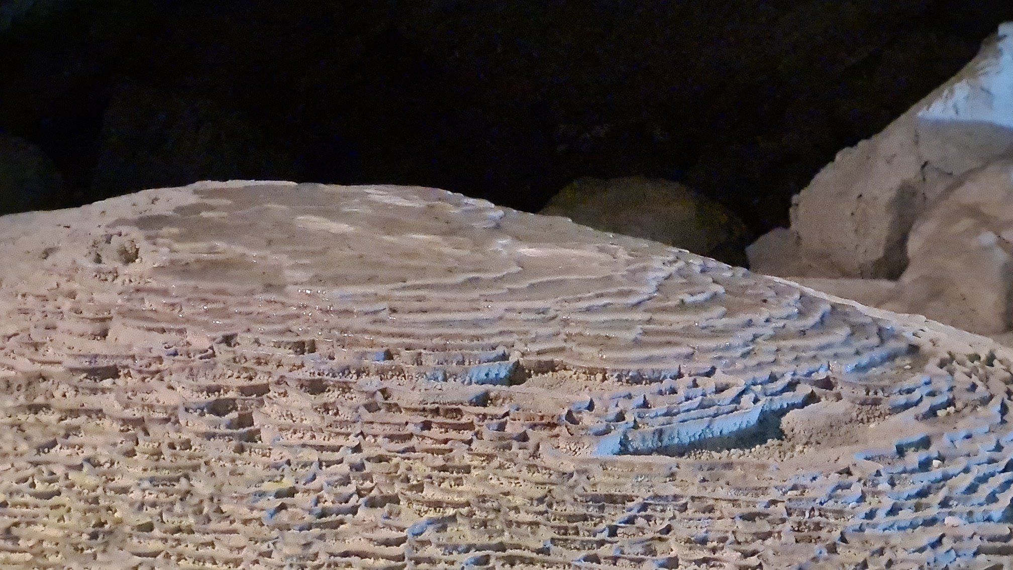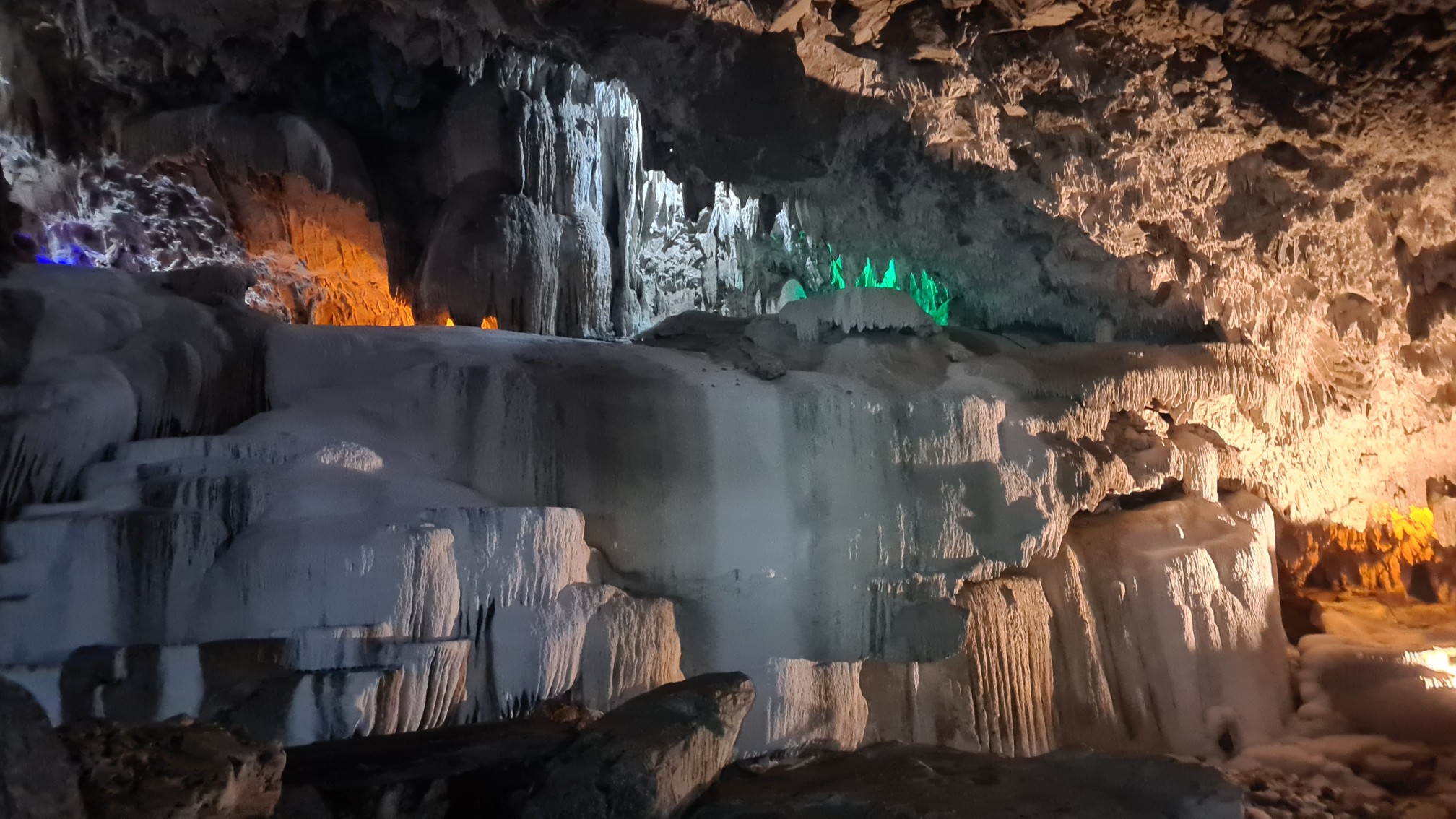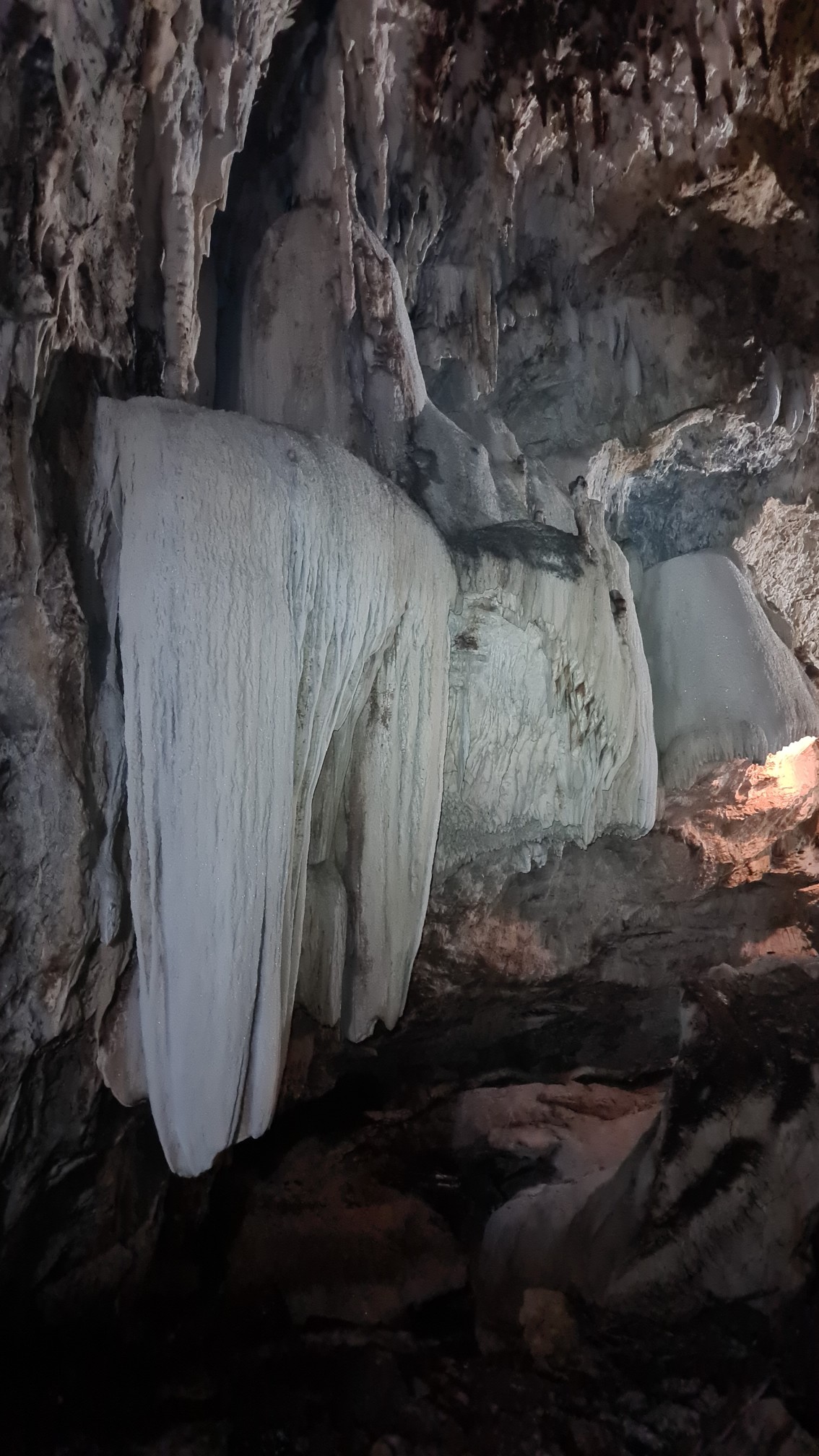 Es ist schön, bei der ersten Durchquerung der Höhle einen Guide an der Seite zu haben, auch wenn die Tham Than Lot Noi selbst für einen Höhlenphobisten wie mich gut zu begehen ist. Ein Fußwegs etwas erhöht entlang des Flussbetts ist durchwegs betoniert ist und die Stalakmiten, Stalaktiten und sonstigen Ablagerungen werden tagsüber stimmungsvoll beleuchtet. Eine Taschenlampe ist dennoch hilfreich, um auch Spinnen, Schlangen und die hier lebenden Fledermauskolonien zu beobachten.