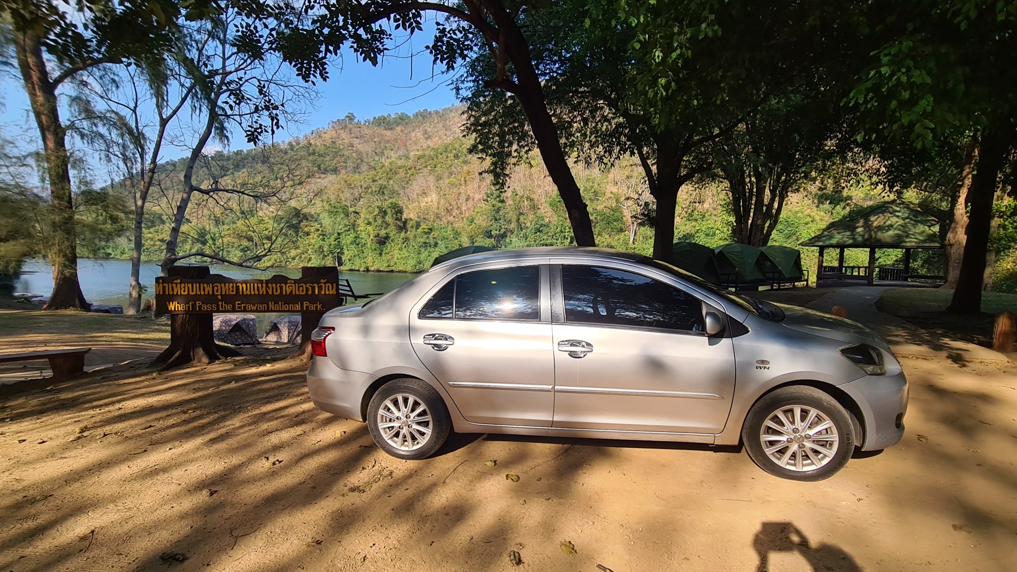 Meine anschließende Weiterfahrt zum Erawan Nationalpark verläuft etwas chaotisch. Eigentlich hatte ich vor, „oben rum“ auf einer längeren Route zu fahren, um keinen Weg zweimal zurückzulegen. Aber entweder funktioniert mein GPS nicht oder die Straße ist aktuell nicht befahrbar. Auf jeden Fall werden die Wege immer schmaler und abgeschiedener. Das Ganze dann ohne GPS-Ziel vor Augen, das war mir dann doch alleine im Auto zu mulmig. Also drehe ich auch hier wieder um und fahre die Strecke Richtung Kanchanaburi zurück, die ich auch gekommen bin, bevor ich irgendwann einmal rechter Hand abbiege um zum Erawan Nationalpark und dem dortigen Camp Site der Nationalpark-Verwaltung zu kommen.