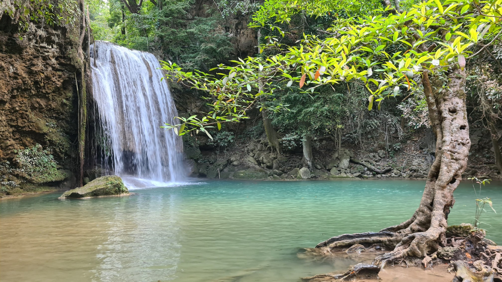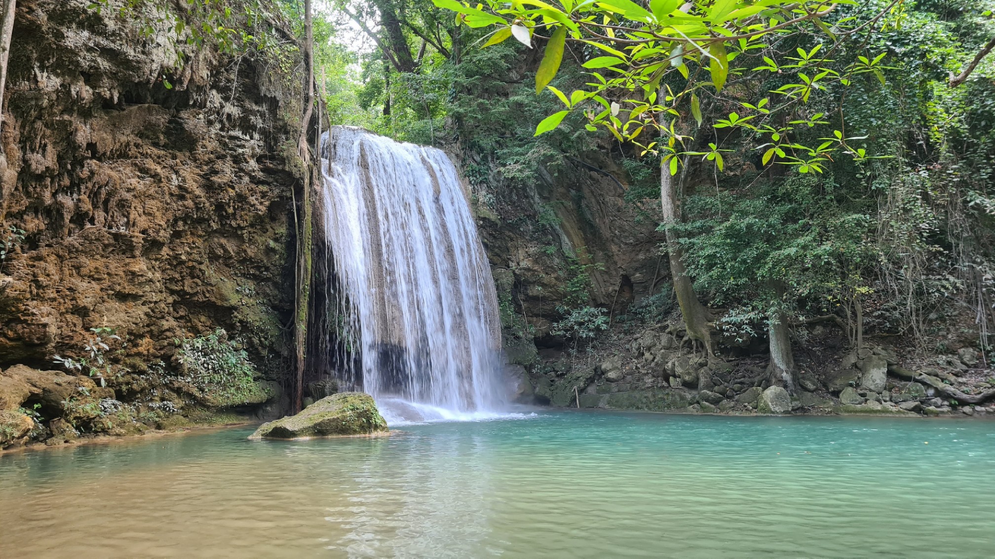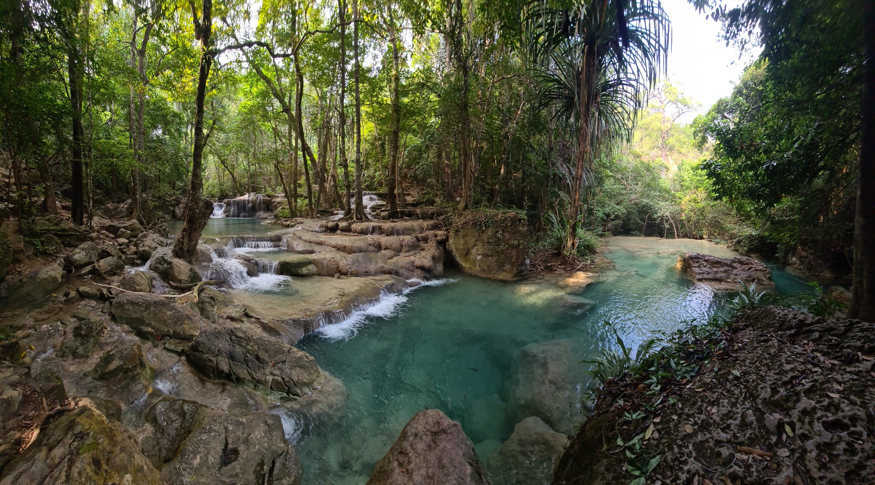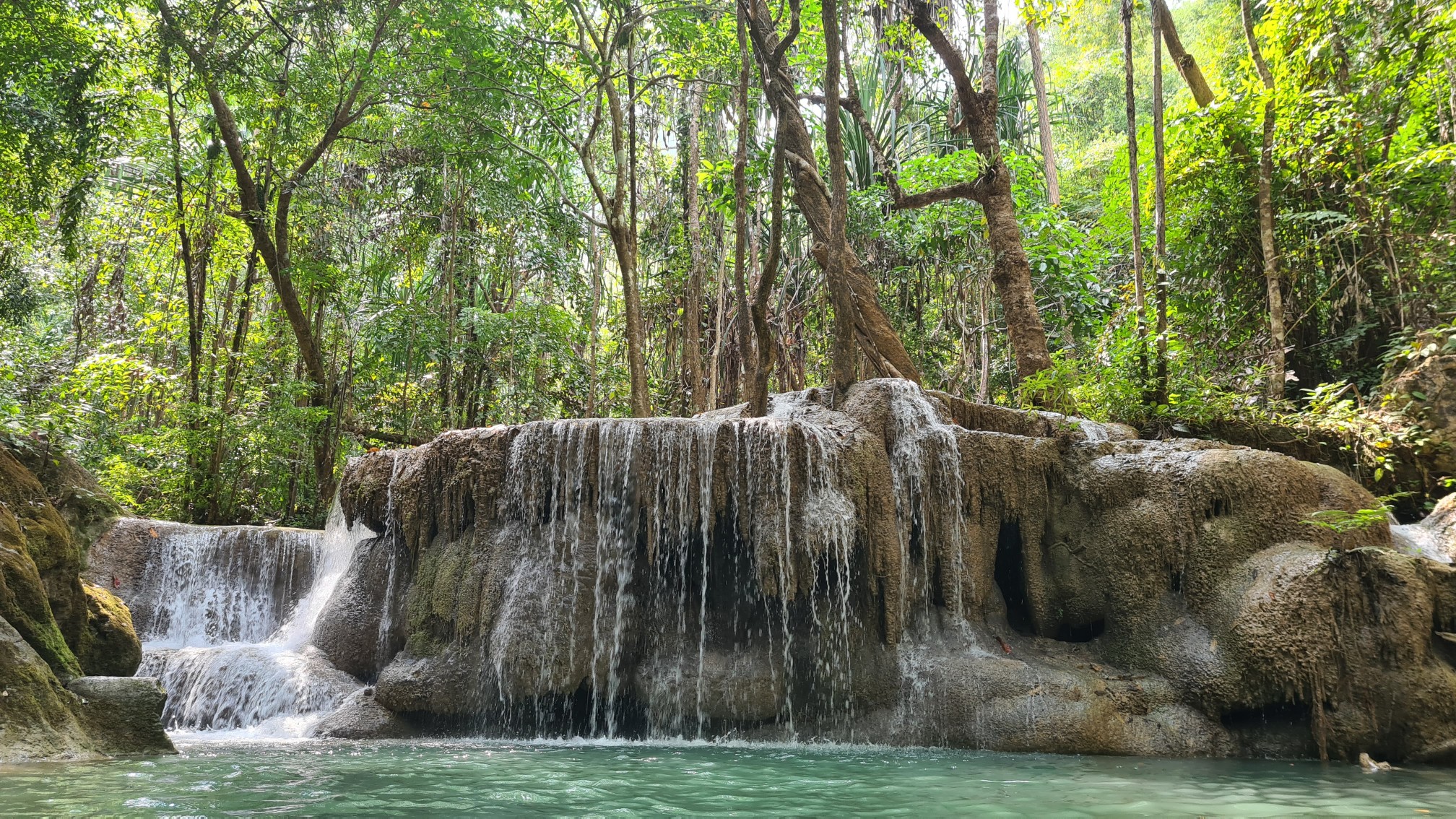 Eine gute Stunde verbringe ich beim Phu Pha Erawan Wasserfall auf dem höchsten Level, bevor ich mich wieder an den Abstieg mache. Interessant wie unterschiedlich die Stimmung an den einzelnen Wasserfällen und Schwimmbecken nun mit den Besuchern ist – verglichen mit der Morgenstimmung ohne einen einzigen Menschen. Aber das Wasser ist wirklich so einladend, ich kann nicht umhin, auch in die Pools der Wasserfälle Dong Pruek Sa und Buar Mai Long mit ihren traumhaften Kaskaden einzutauchen.