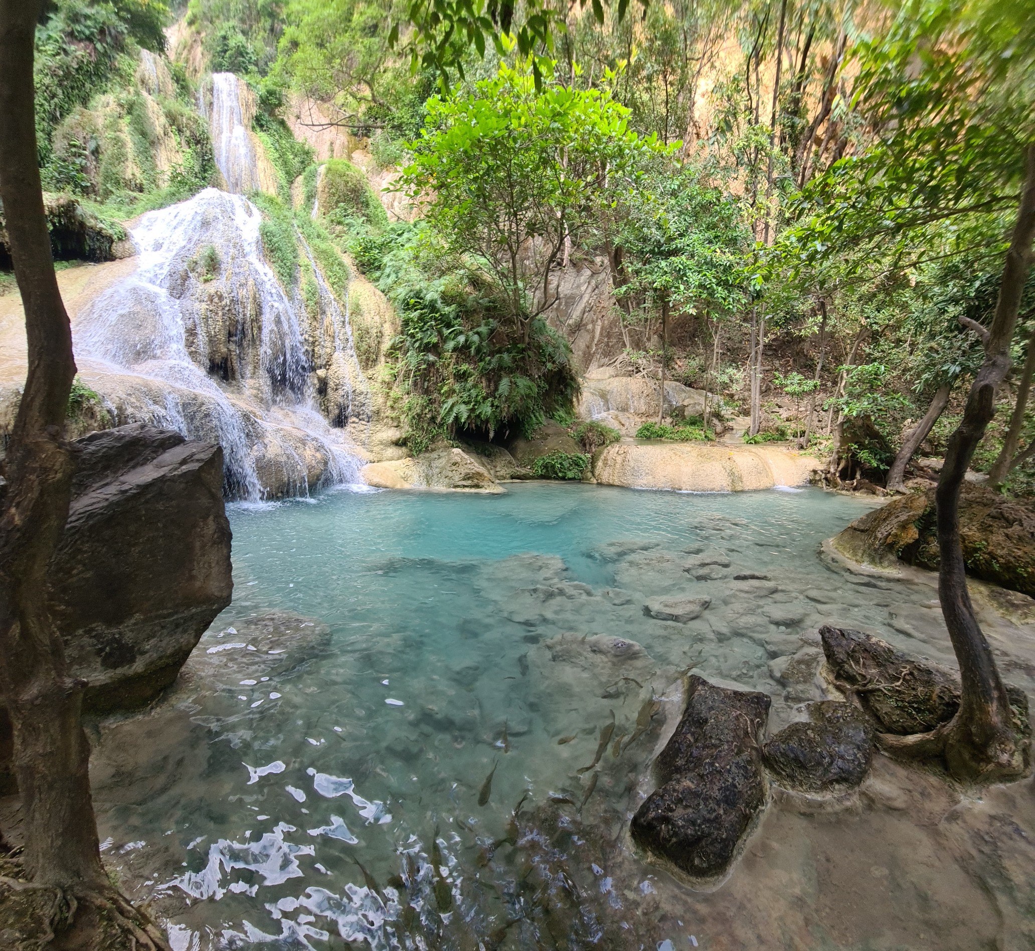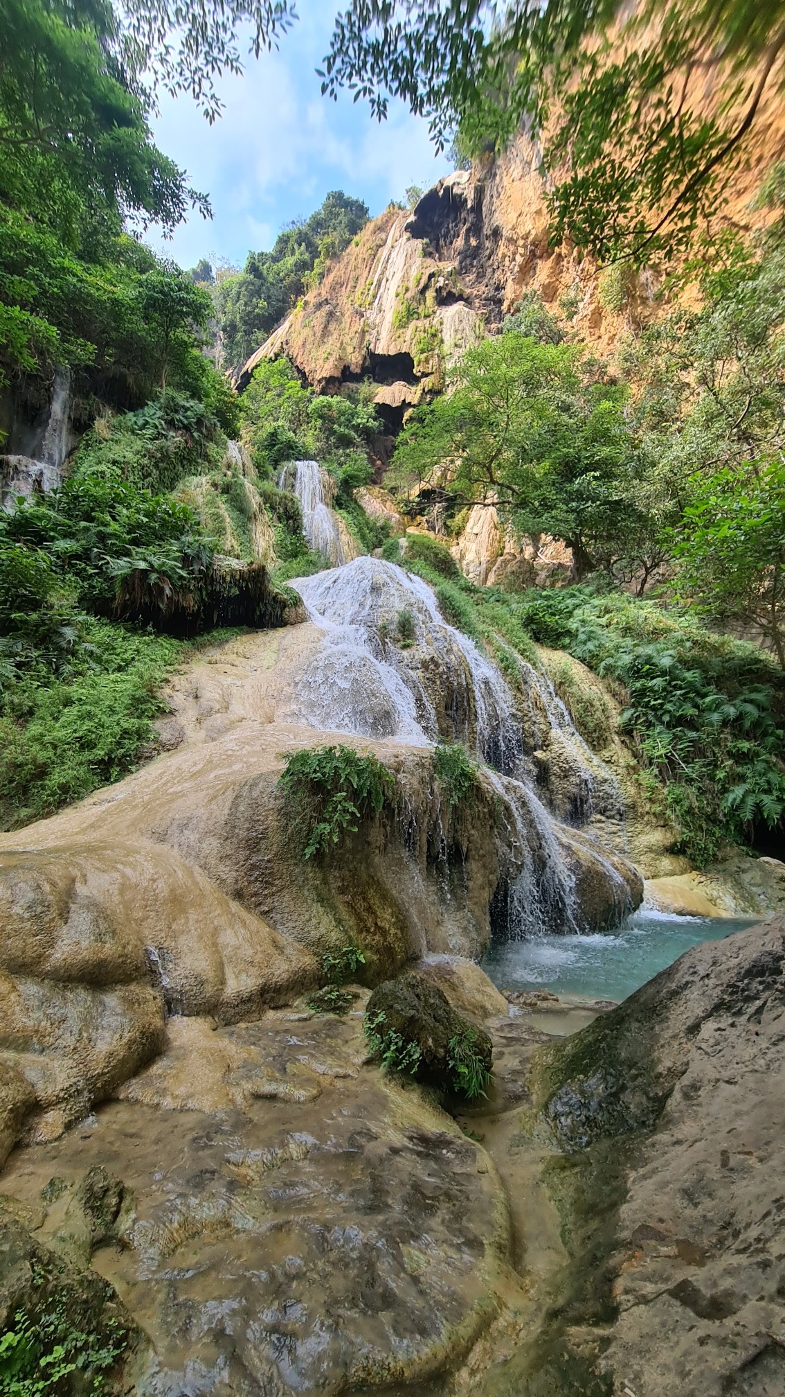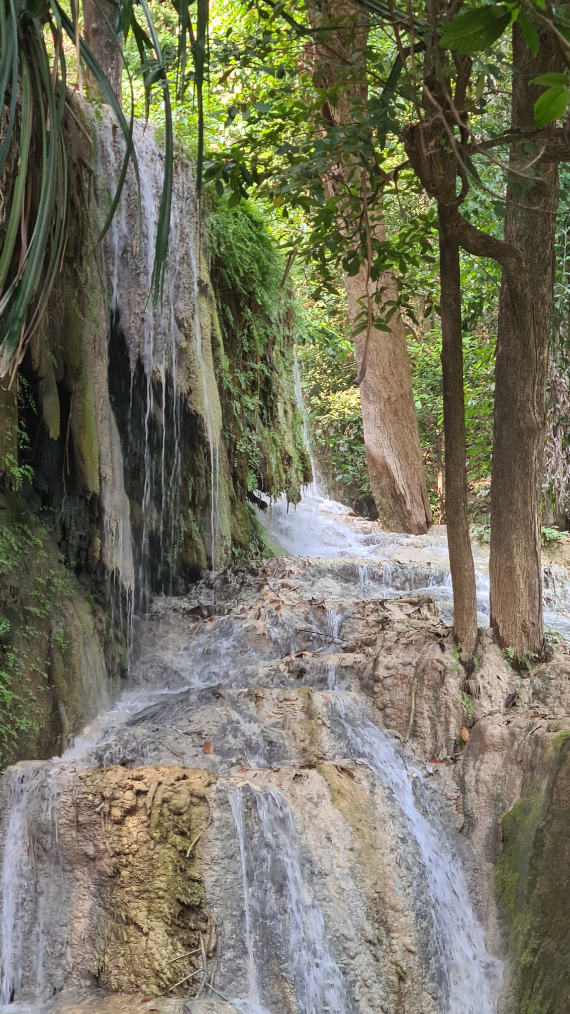 Auf Level 4 erwartet mich die aktuell eher unspektakuläre Wasserfallrutsche des Oke Nang Phee Sue und am folgenden Pha Nam Tok könnte man unter dem Wasserfall hindurchschwimmen. Ich bin hier allerdings viel zu beschäftigt mit Tier- und Menschenbeobachtungen.