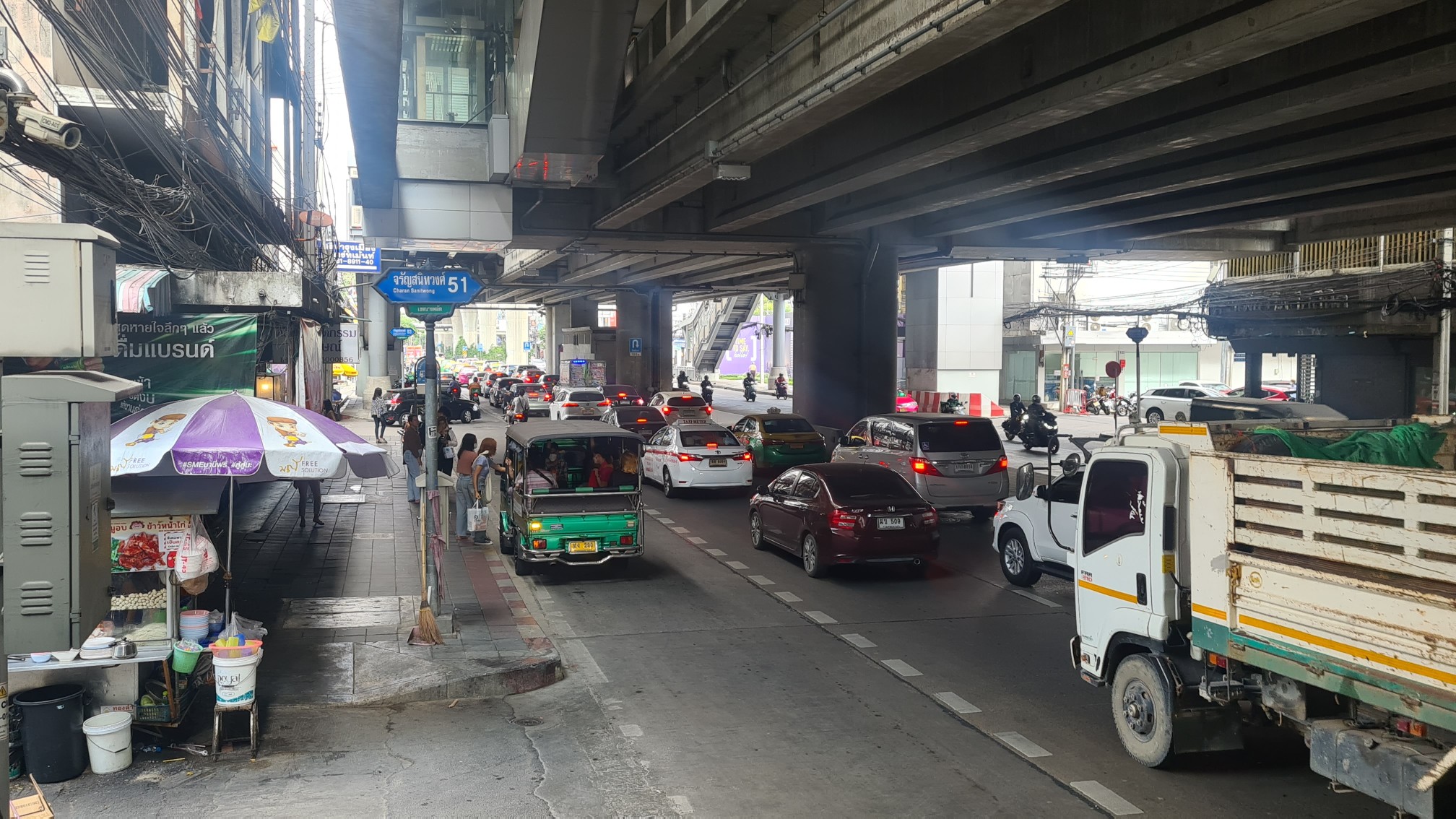 Dachte ich zumindest: Aber auch relativ kurze Wege können in Bangkok zu Fuß ganz schön mühsam werden, insbesondere wenn man wie ich mit Sack und Pack anreist. Zum einen bringt mich die Mittagssonne ins Schwitzen, zum andern aber auch das ständige Treppauf, Treppab: Zur MRT hoch, von der MRT runter, Straßenüberführung hoch, Straßenüberführung runter und einen guten Hatscher entlang der Hauptverkehrsstraße weiter komme ich gegen 15 Uhr an – und muss über die Stiegen auch noch bis hoch in den 4. Stock zu meinem Zimmer schnaufen!