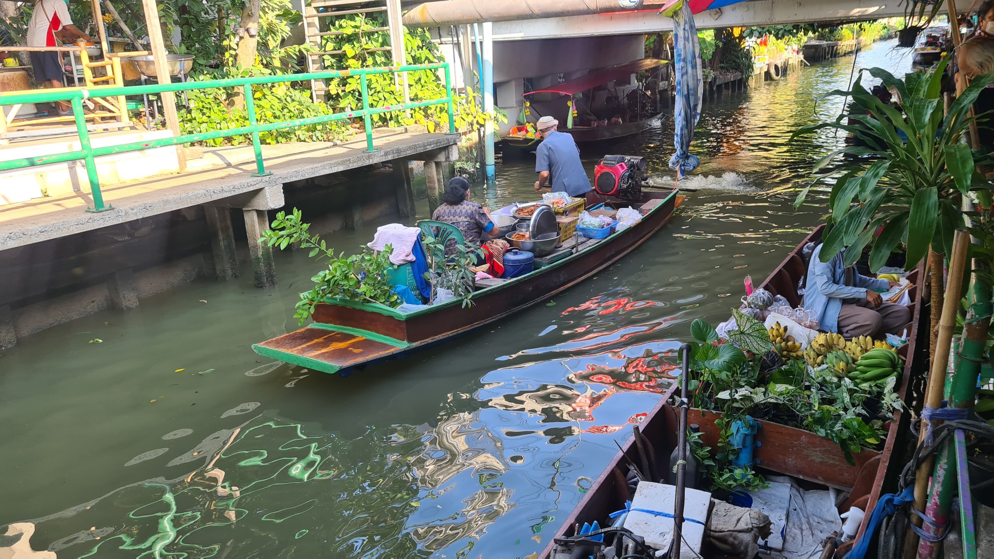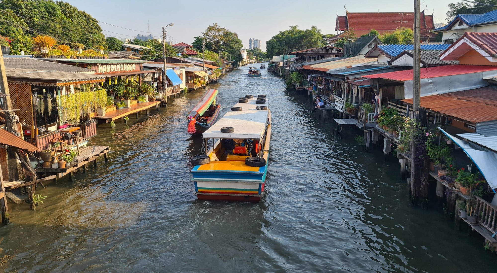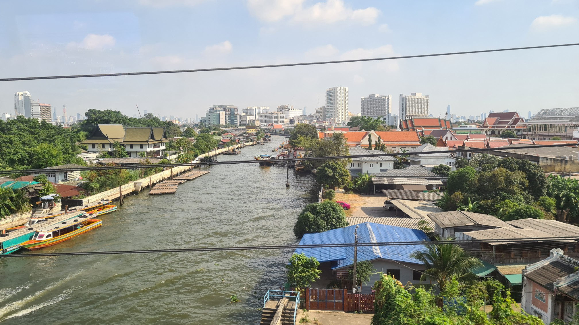 Das ist ja mal ein Tapetenwechsel! Aus den einsamen Zelt-Camps in den wilden, grünen Nationalparks Kanchanaburis bringt mich der Bus am Freitag, den 13.01.2023, zurück in die engen Häuserschluchten und pulsierenden Straßen Bangkoks. Dieses Mal komme ich am Southern Bus Terminal an, das liegt noch auf der Thonburi-Seite, also westlich des Chao Phraya Flusses, wo ich die nächsten zwei Tage die Khlongs und die schwimmenden Märkte auf eigene Faust erkunden will. Diese zusätzliche Visite Bangkoks hatte ich ursprünglich gar nicht geplant. Aber nachdem ich mit dem geleasten Auto in Kanchanaburi viel zeitsparender von A nach B gekommen bin und mich Bangkok schon zu Beginn meiner Reise total fasziniert hat, kam mir das Zeitfenster wunderbar gelegen.