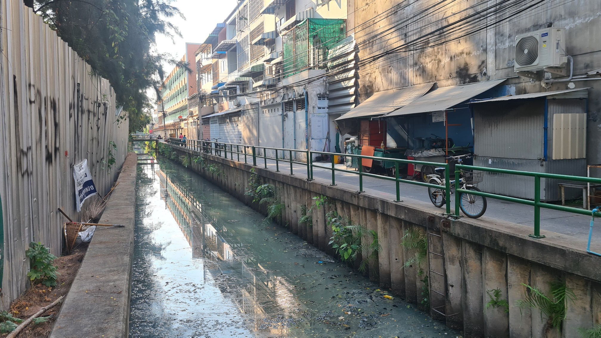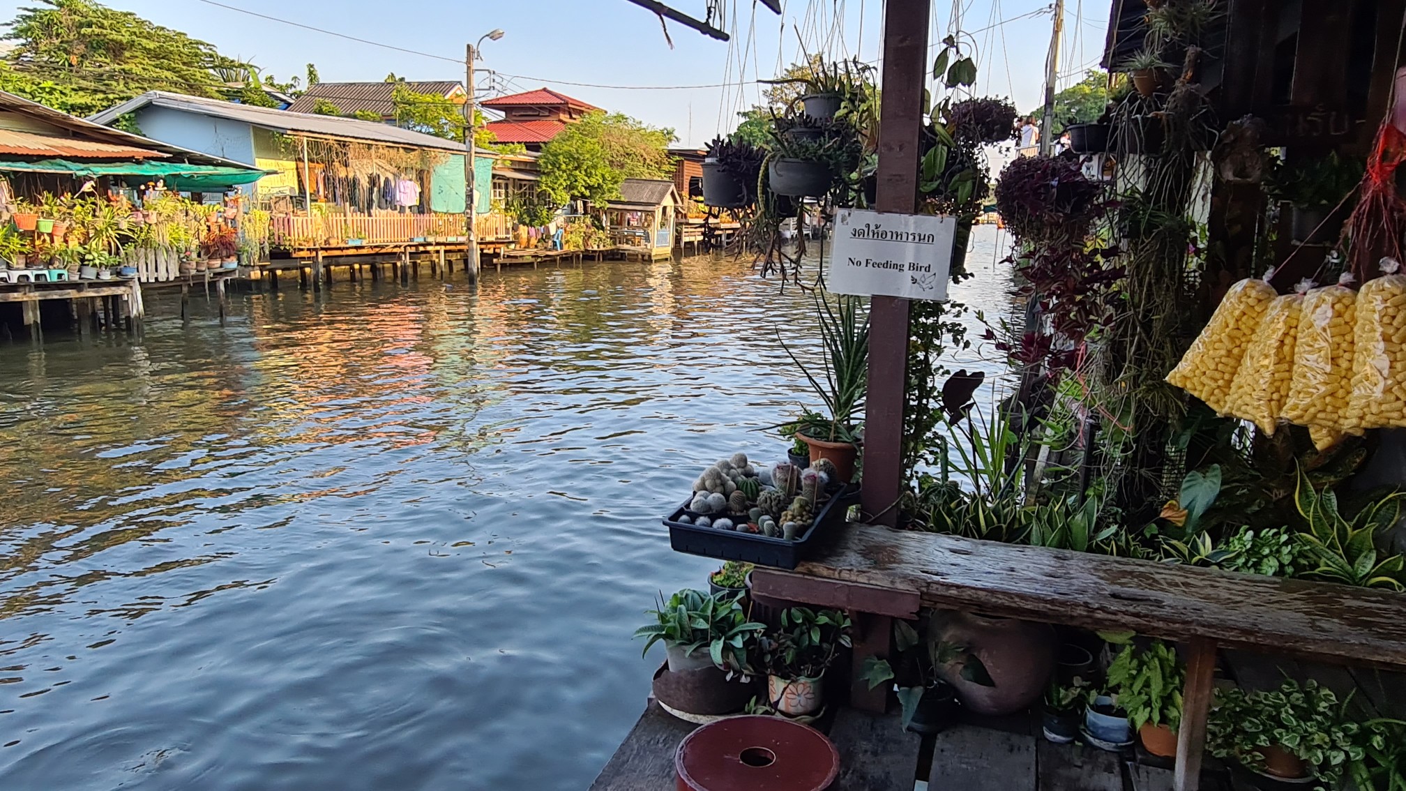 Dann geht es auf zu neuen Taten, schließlich gilt es, die Zeit und die schöne Abendstimmung noch zu nutzen, bevor zwischen 18 und 19 Uhr „das große Licht ausgeschaltet wird“. Für meine Verhältnisse relativ zielstrebig steuere ich den unter Reisenden und Touristen bekannten Khlong Bang Luang an und komme auf dem Weg dorthin unter anderem auch wieder am Khlong Mon vorbei, an dem ich schon in den ersten Tagen eine gute Strecke „gelustwandelt“ bin.