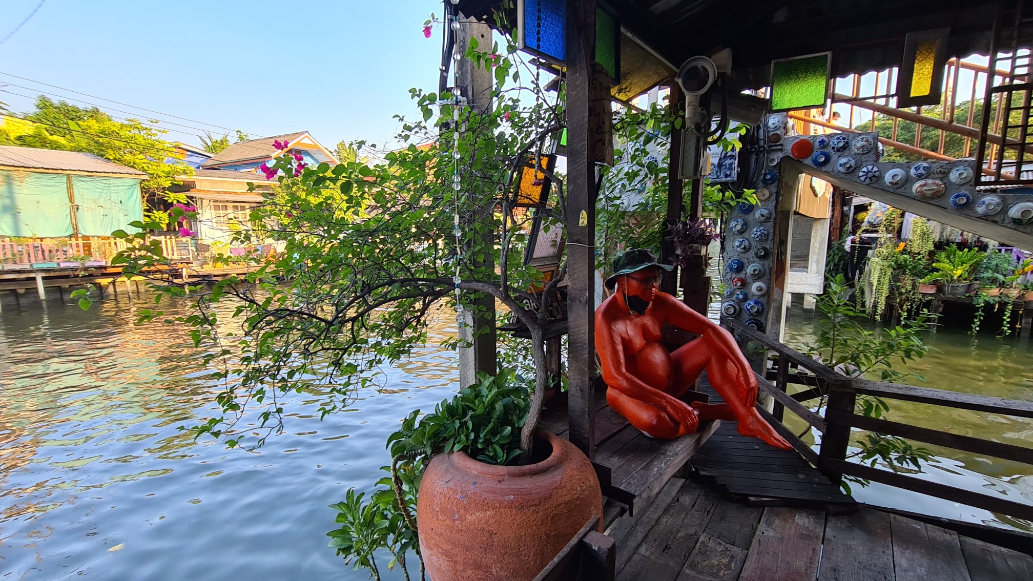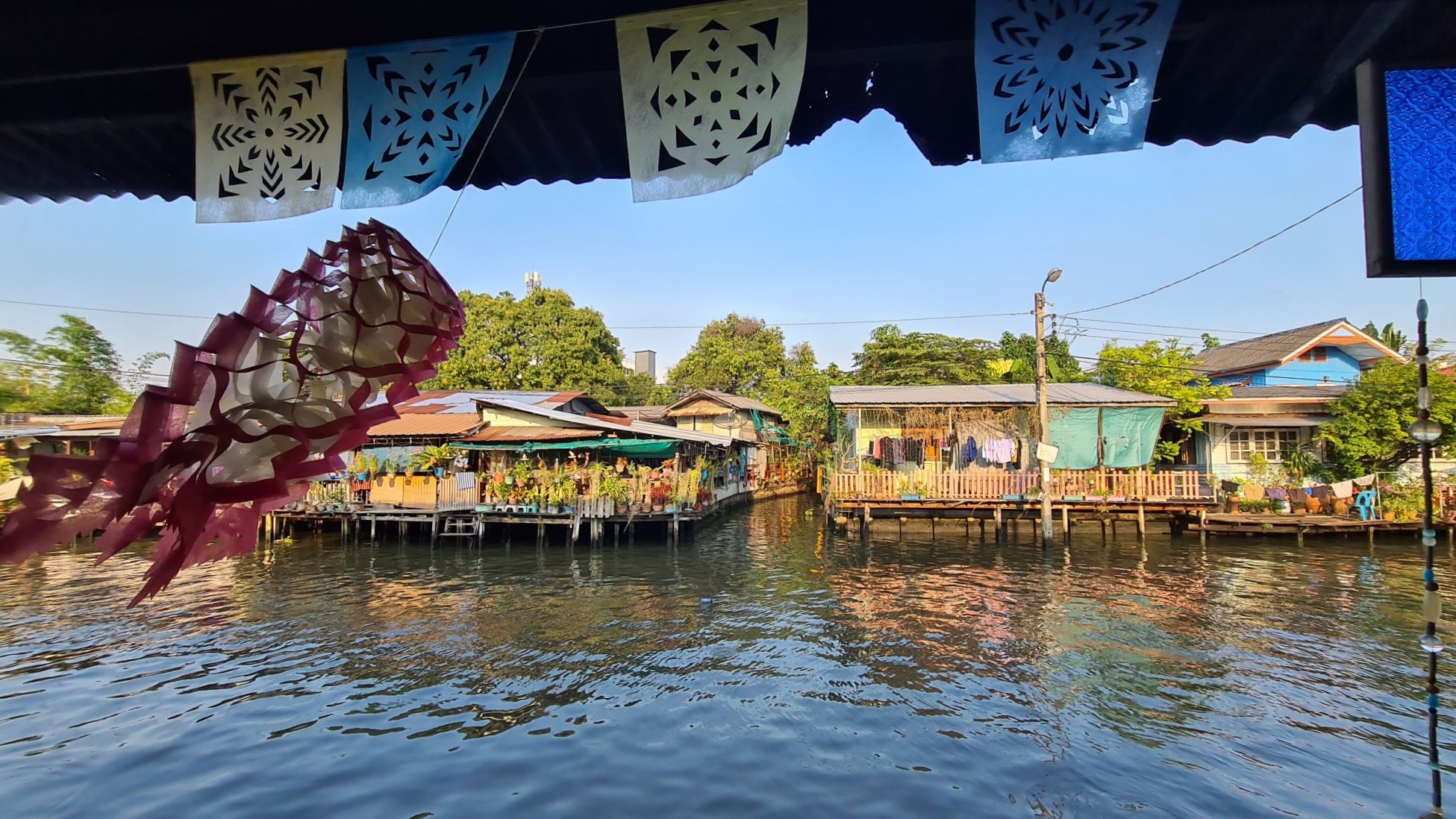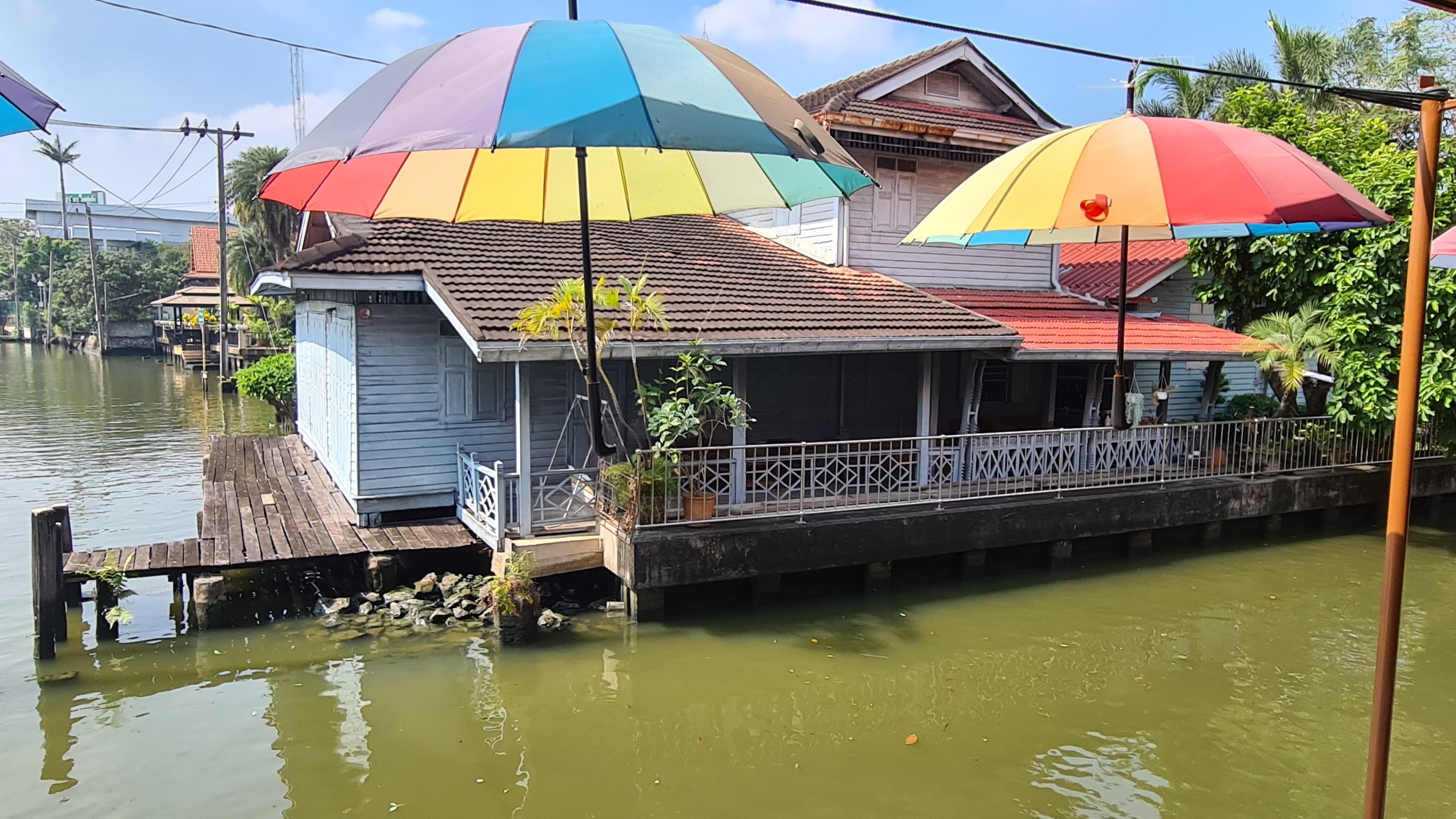 Weiter geht es zum Artist’s House, von wo man auch nochmal schöne Blicke auf die kleinen, bunten und sehr verschiedenen Häuser entlang des Khlong Bang Luang hat.