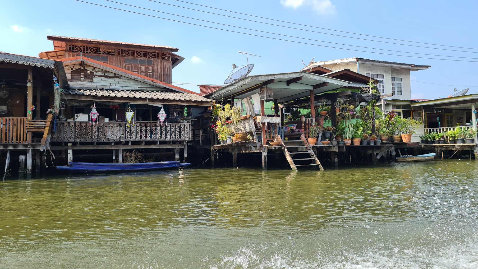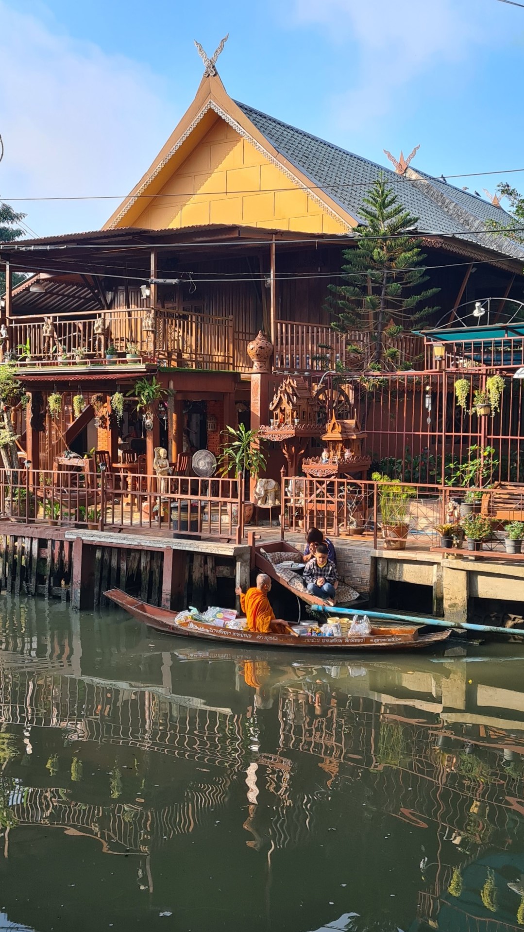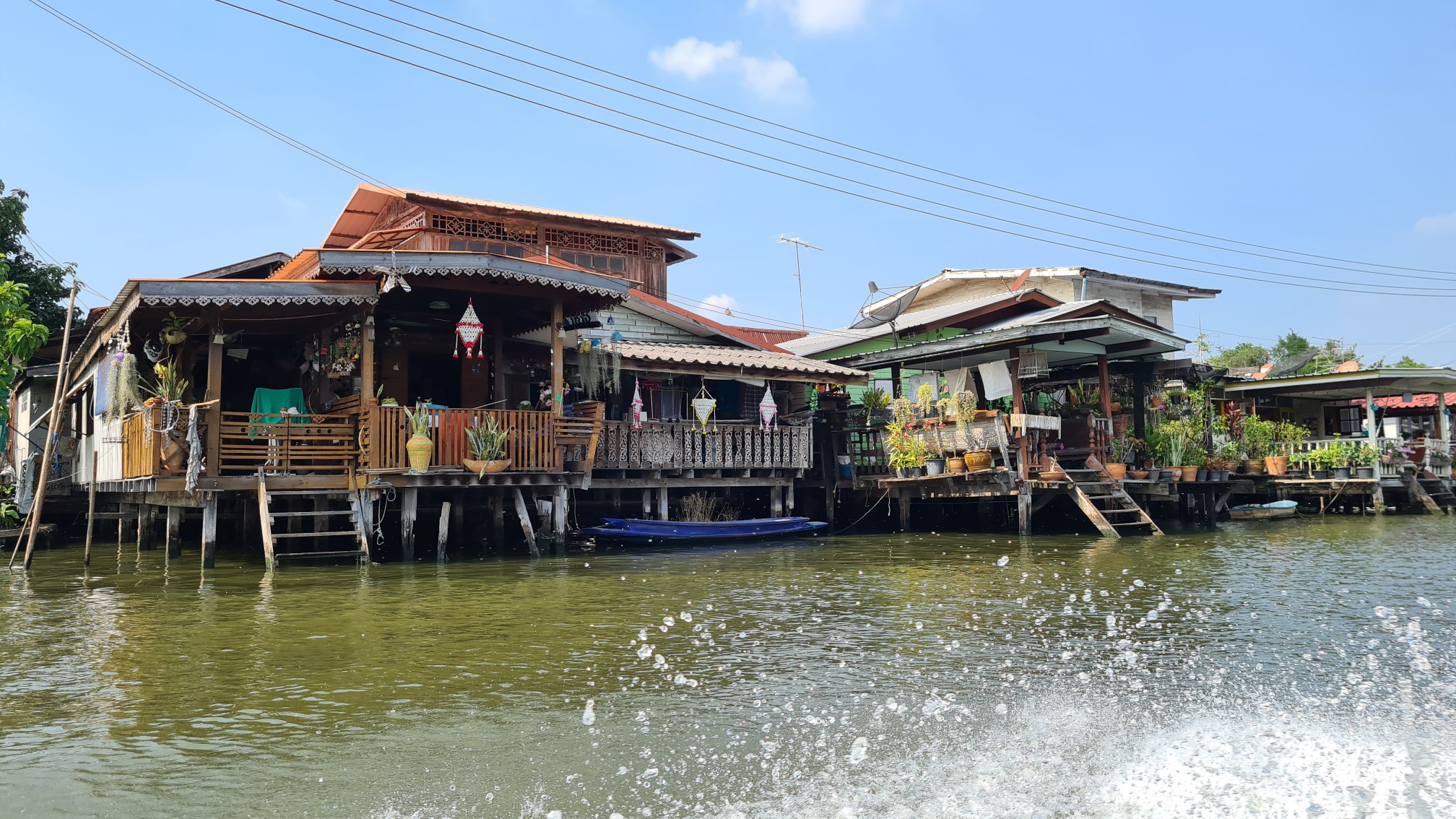 Weiter geht es zum Artist’s House, von wo man auch nochmal schöne Blicke auf die kleinen, bunten und sehr verschiedenen Häuser entlang des Khlong Bang Luang hat.