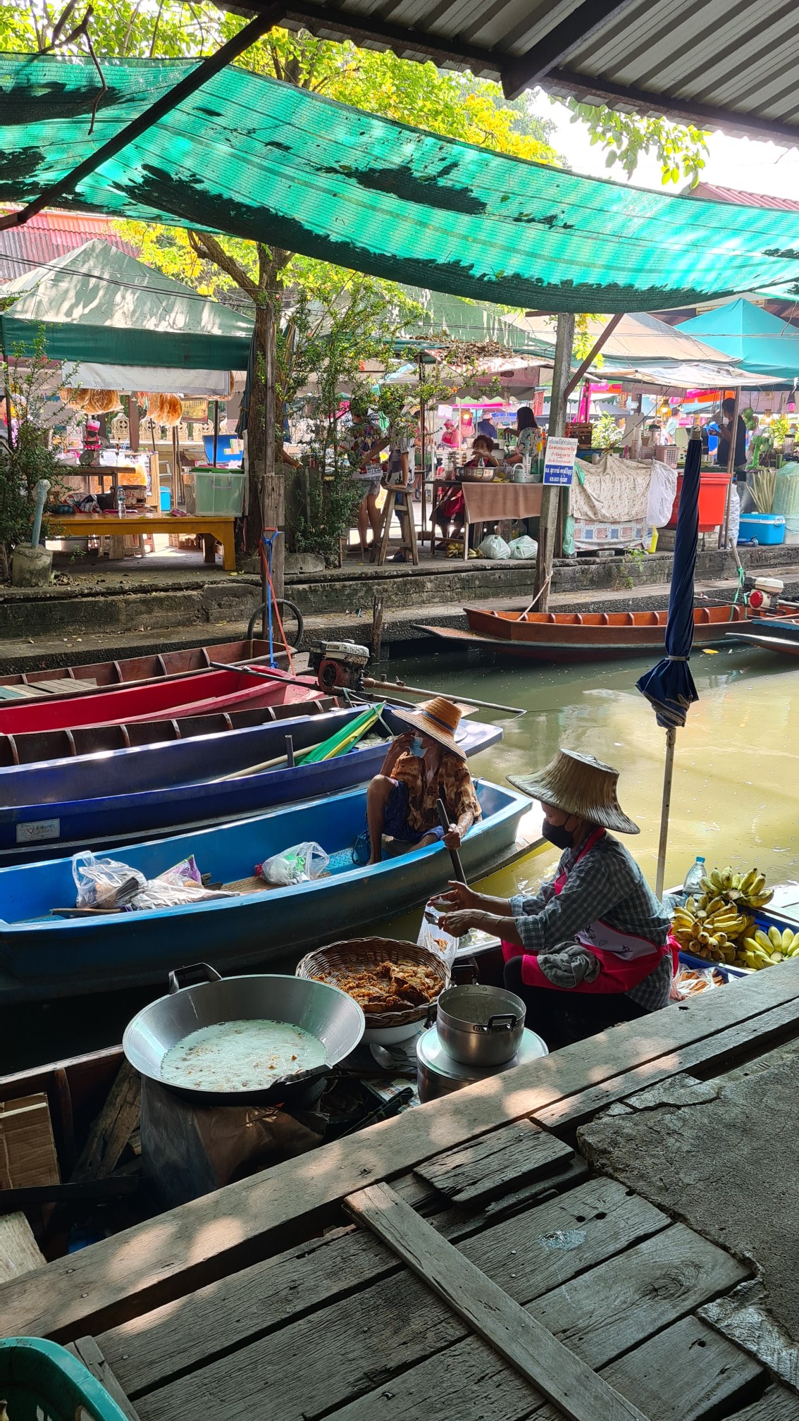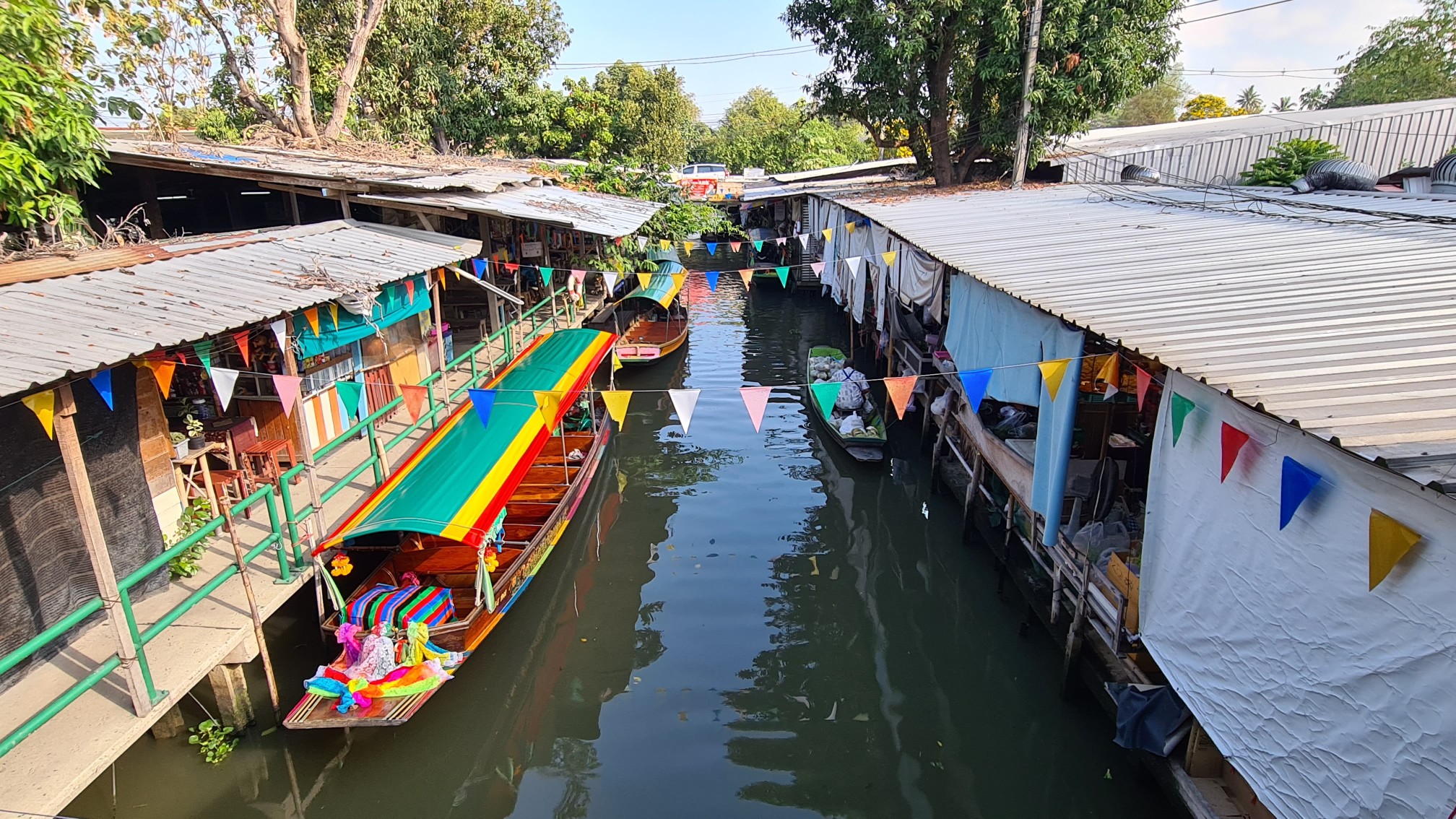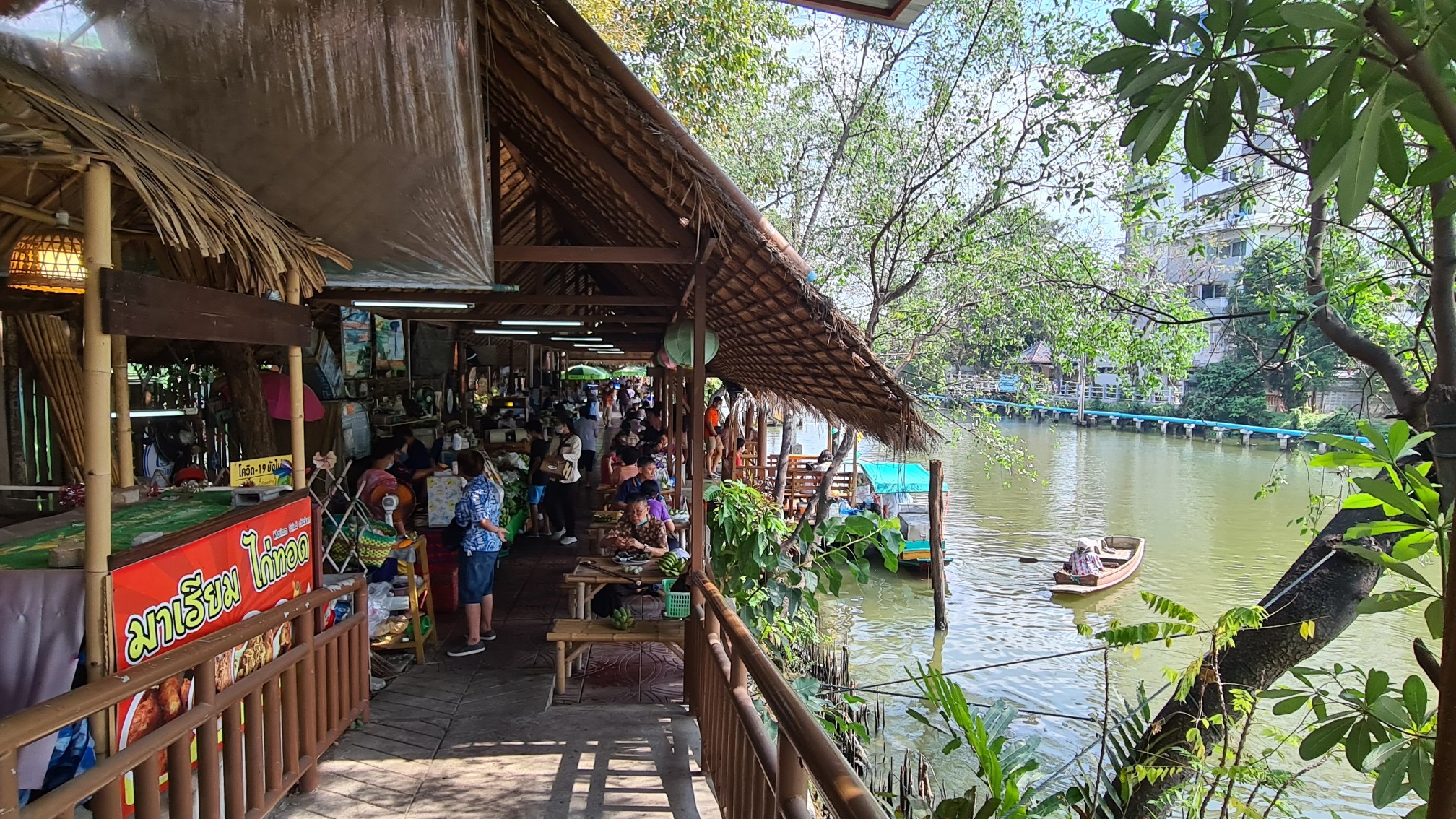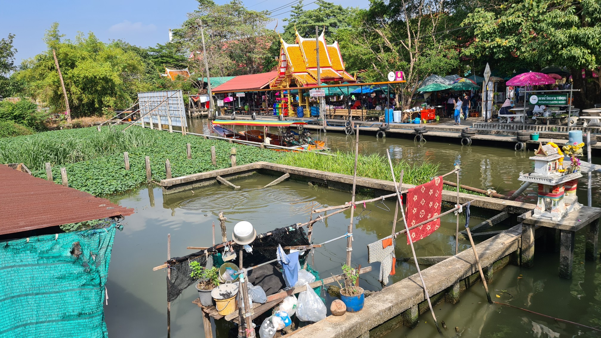 Wie der Name schon vermuten lässt, liegt der schwimmende Markt von Wat Saphan rund um einen kleinen buddhistischen Klostertempel. Wirklich hübsch, mit wenigen Touristen und vielen kleinen, attraktiven Markständen sowie idyllisch-ländlichen – und gepflegten – Wasserstraßen rundum.