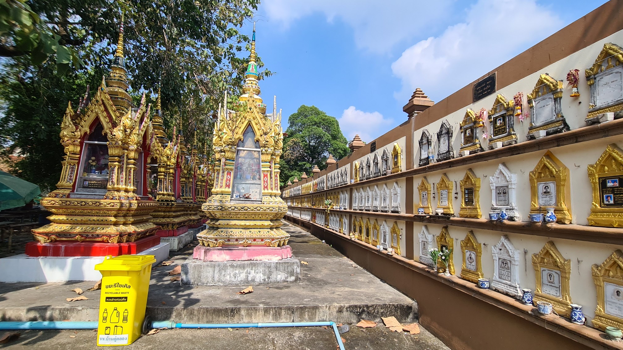 „So geht de Kuah scho fast …“ naja, nicht gerade zwei Stunden, aber schon ziemlich lang. Dann steht ein Moto-Taxi vor einem Imbiss und ich tippe dem Fahrer zurückhaltend auf die Schulter. Er versteht mein Anliegen nicht, aber die Köchin ist außerordentlich hilfsbereit und mit Hilfe von Google Maps (das blöderweise mal wieder alles in Englisch, anstatt in Thailändisch anzeigt) sowie Händen und Füßen können wir schließlich das Ziel und den günstigen Preis von 60 Baht fix machen. Der gute Mann trinkt noch seinen Kaffee und dann schwinge ich mich hinter ihm auf den Roller.