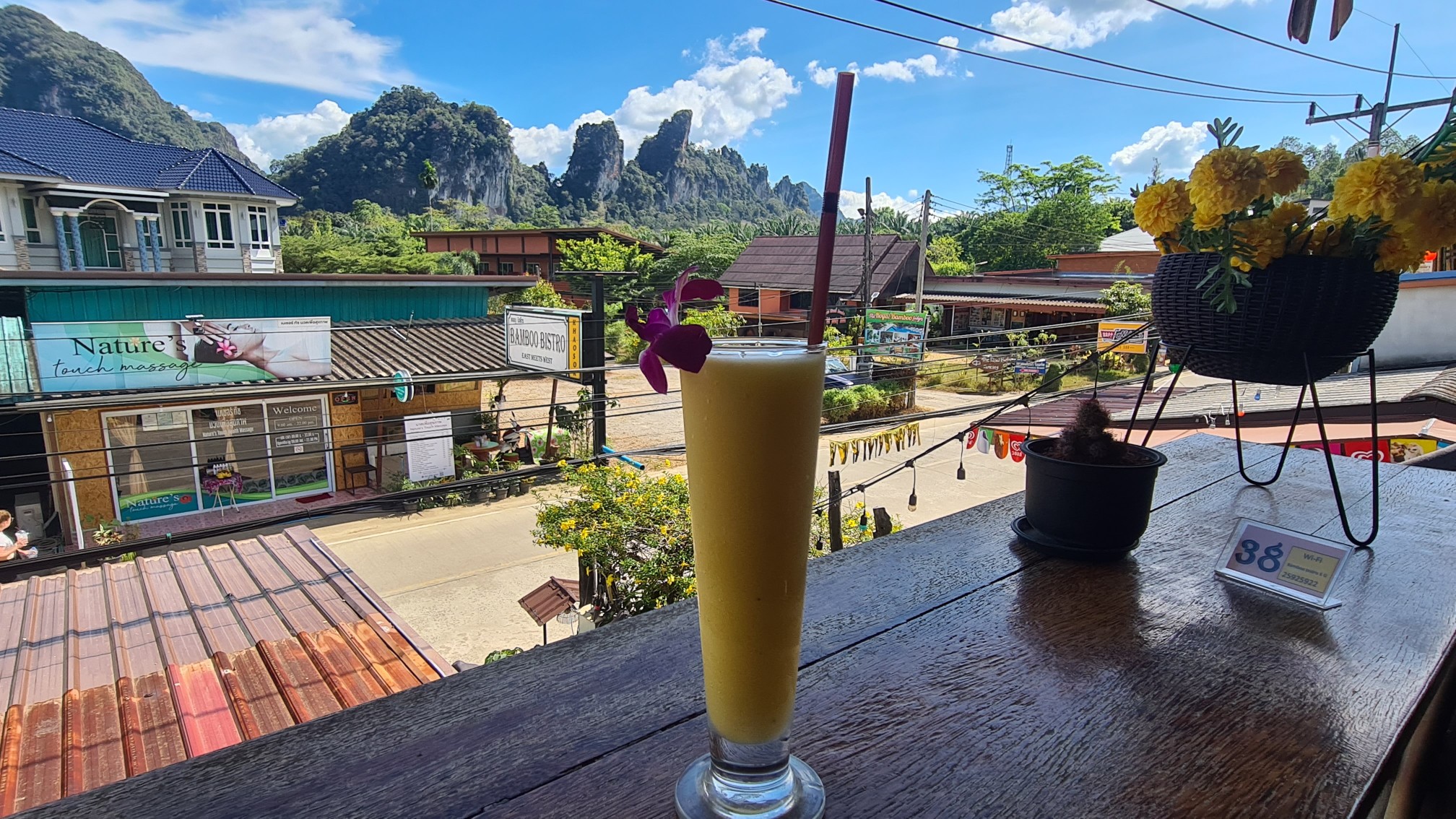 Entspannt und beglückt mache ich mich auf den etwa 1 km langen Weg zur Khao Sok Main Road, die dann zugleich der Ort selbst ist. Die fast schnurgerade Straße ist gesäumt von Restaurants, Unterkünften, Massagesalons und Touranbietern. Alles da für den gemeinen Touristen – Hier werde ich doch sicher auch eine neue SIM-Karte erstehen können.
